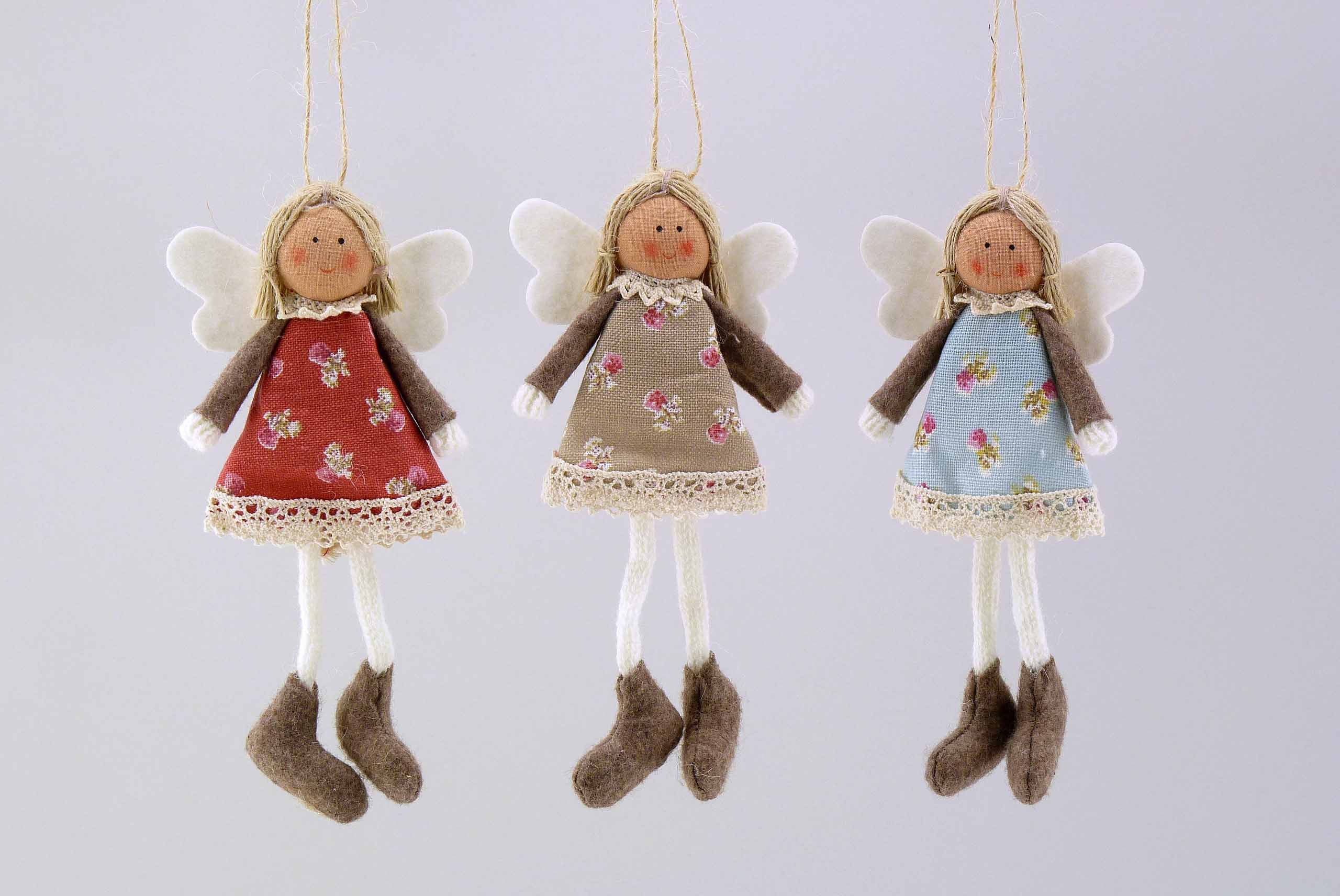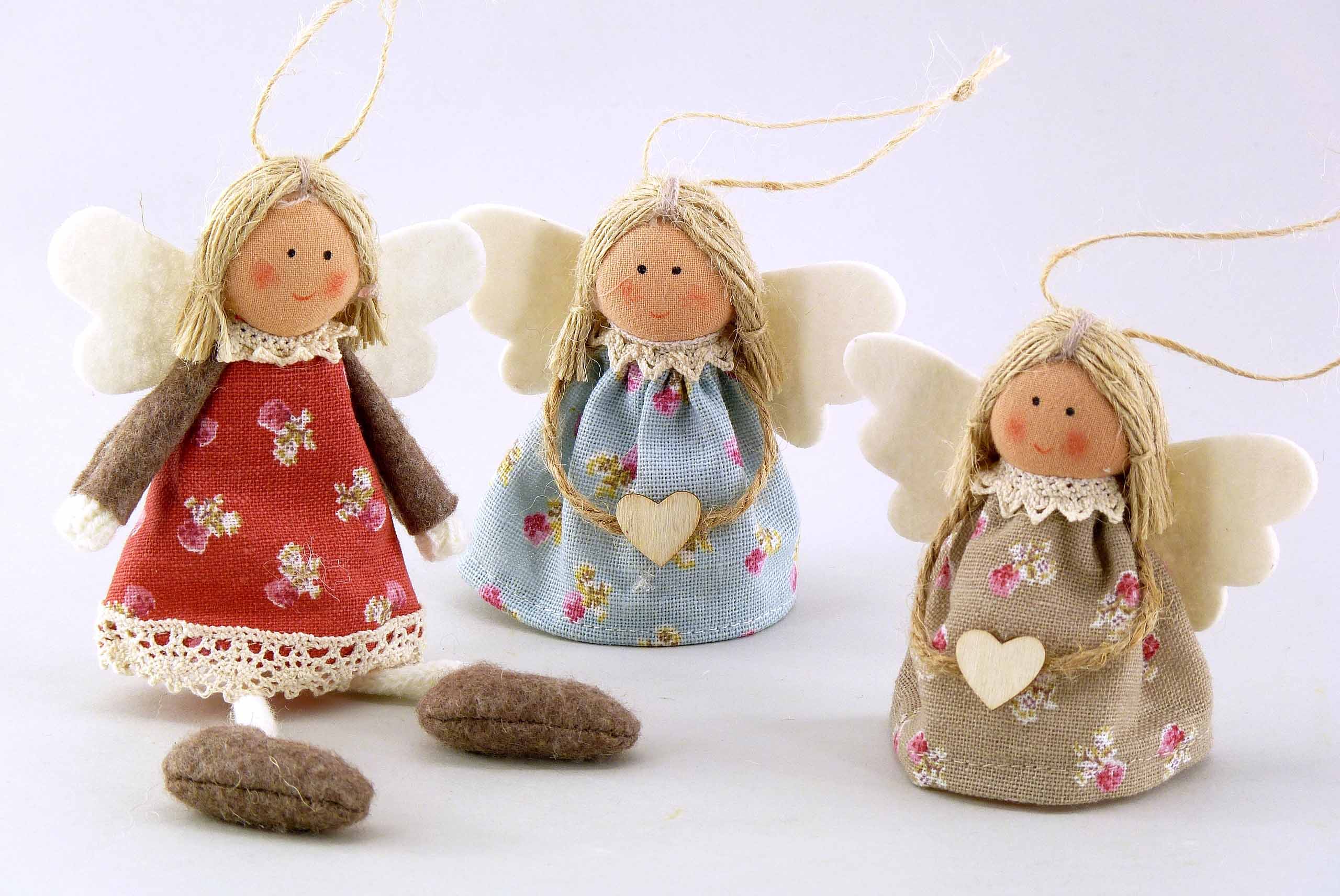 Stoff-Engel ''Rosenkleid'' hgd. rot/braun/blau sort. H15cm