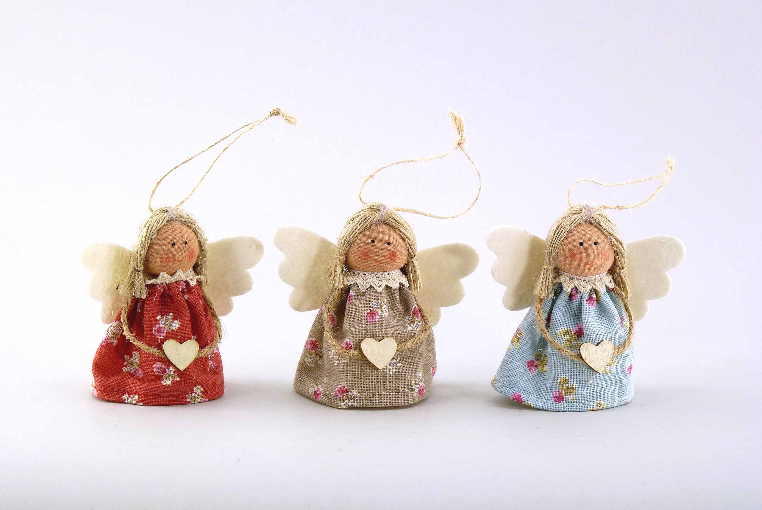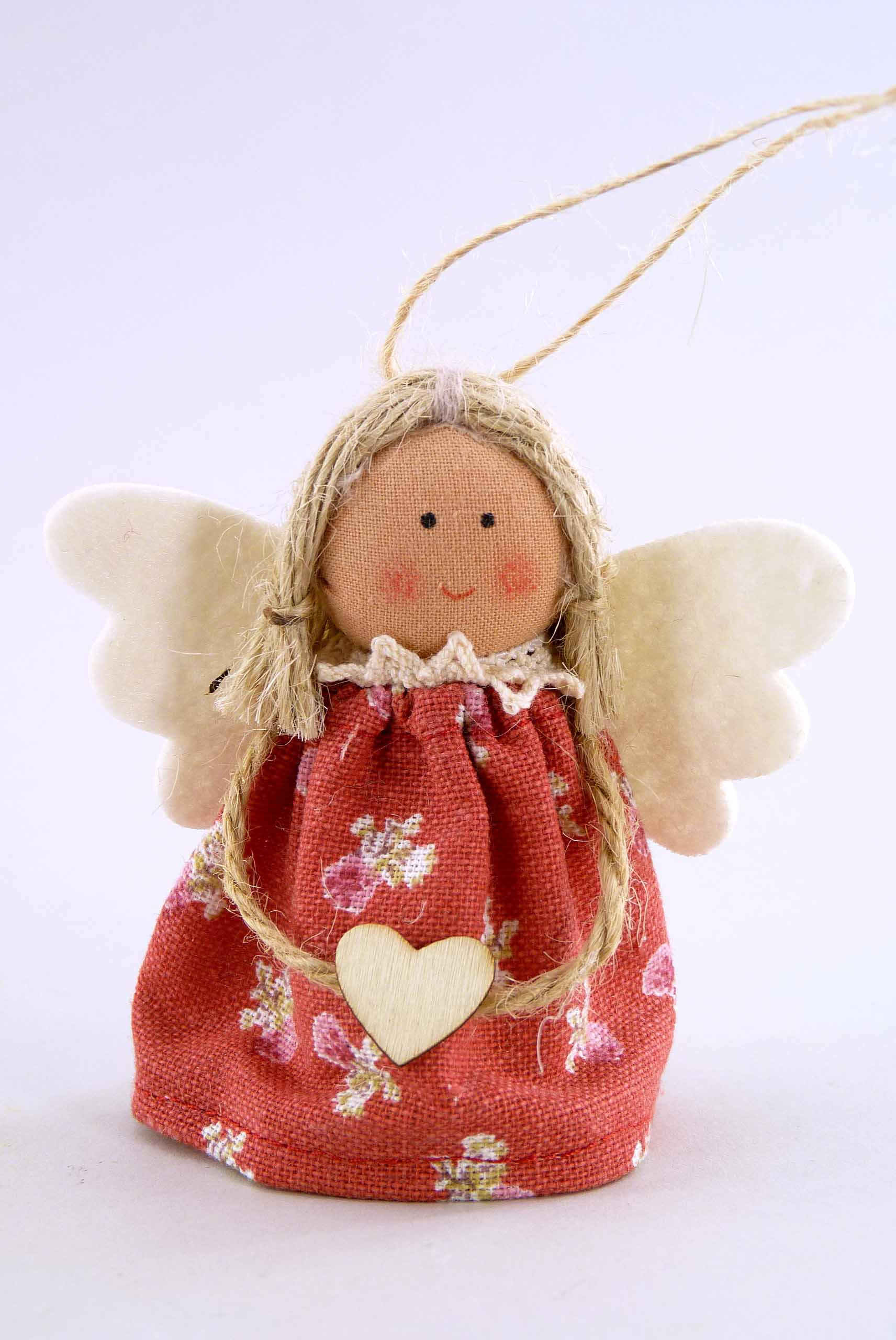 Stoff-Engel ''Rosenkleid'' hgd. rot/braun/blau sort. H8cm