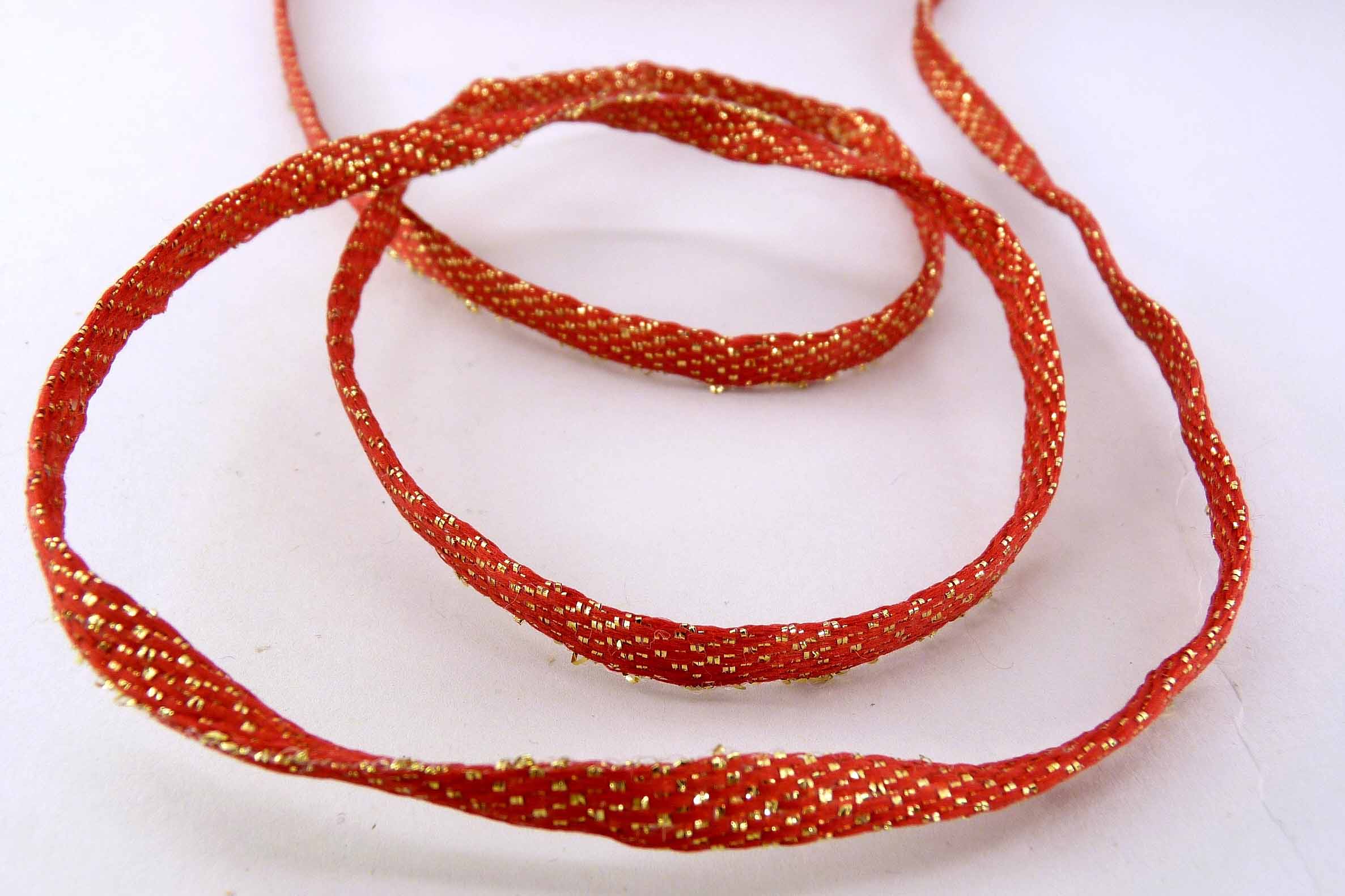 6134-06-300 Kordelband ''Sparkling'' rot-gold 20m