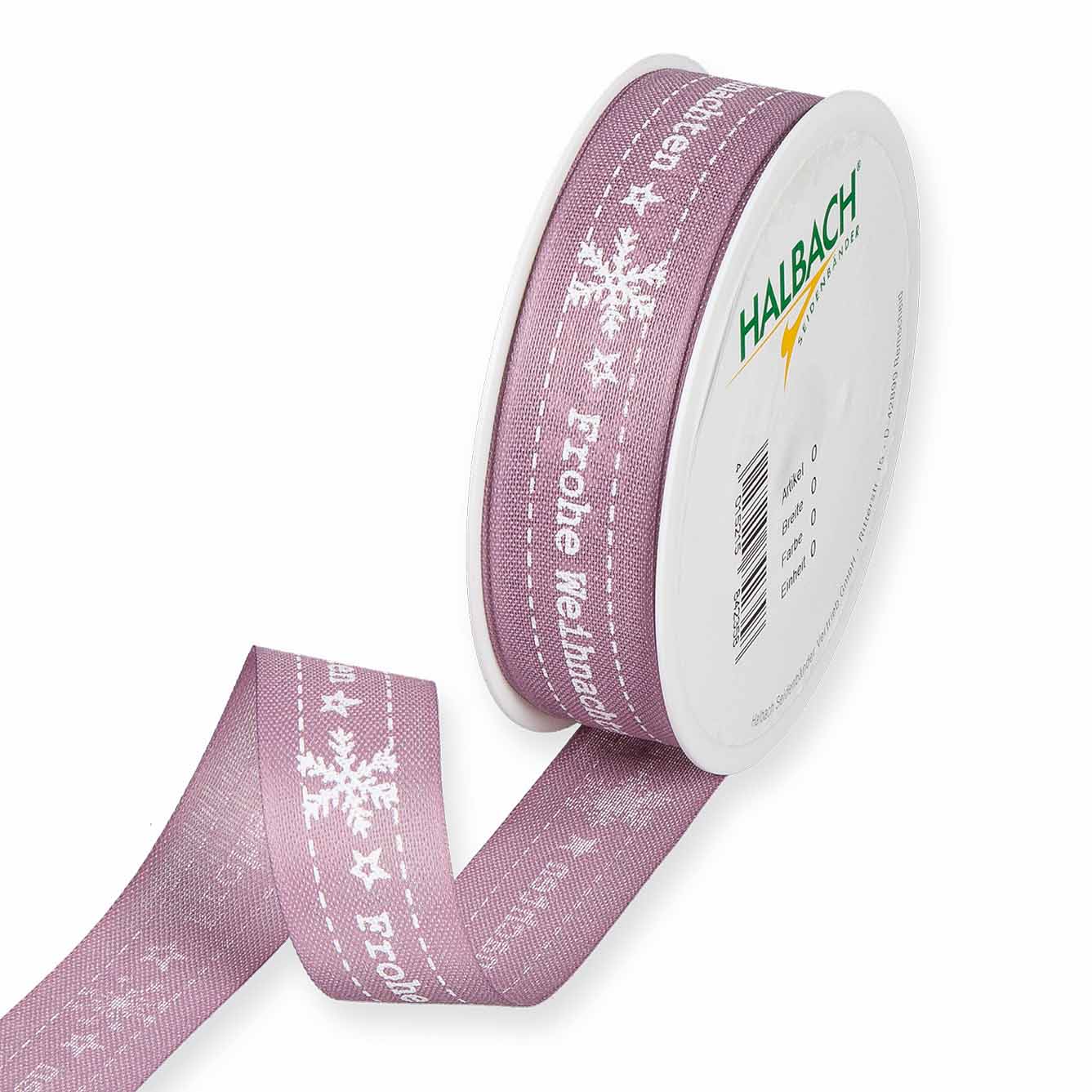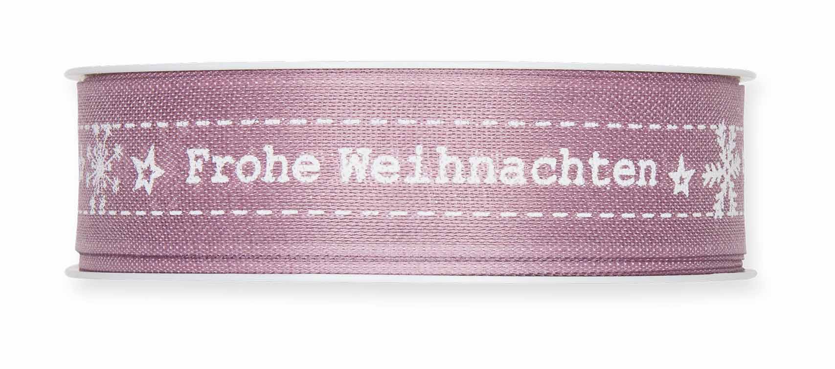 152-025-510-18 Druckband ''Frohe Weihnachten'' beere-weiß 18m