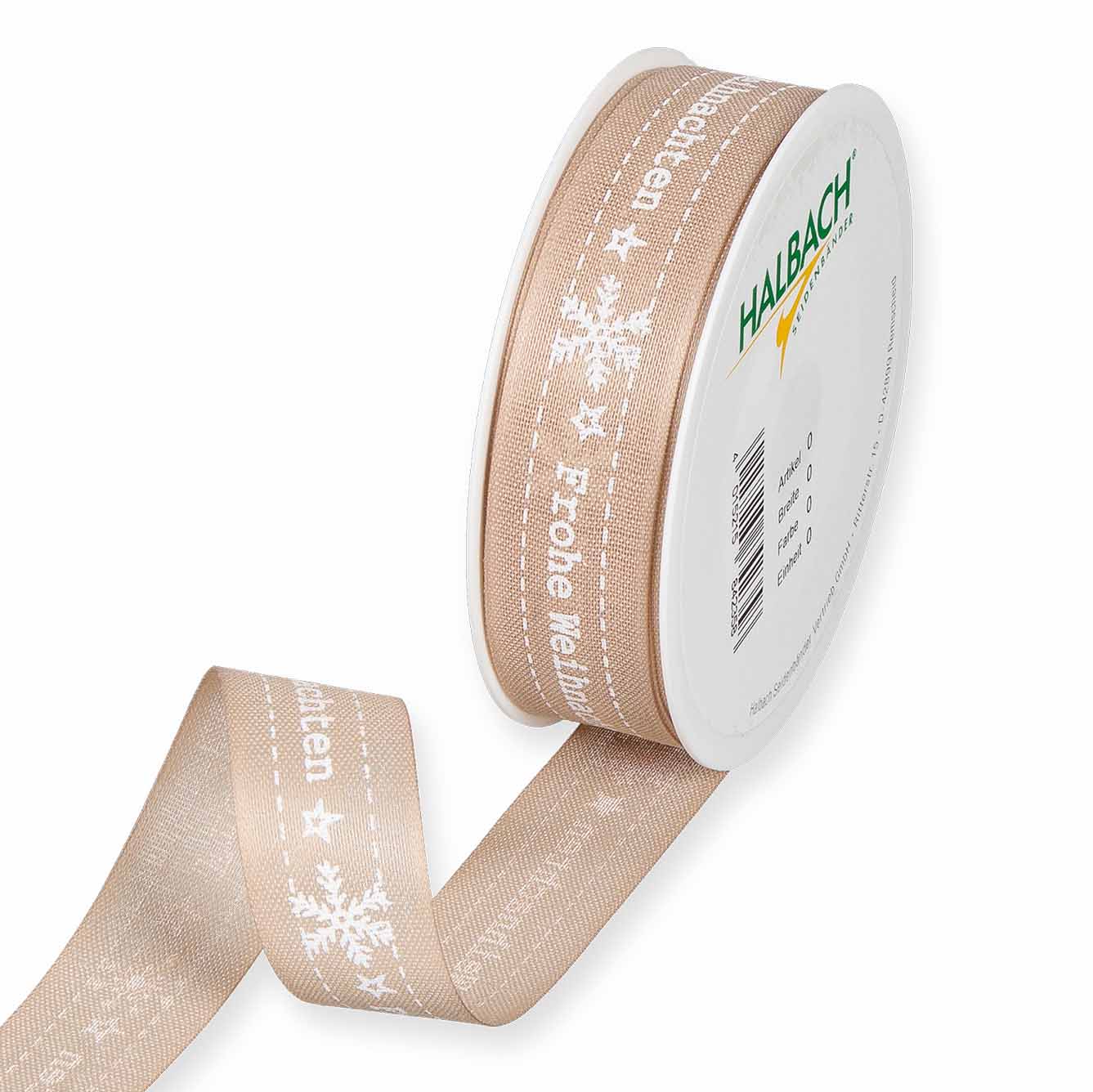 152-025-782-18 Druckband ''Frohe Weihnachten'' beige-weiß 18m
