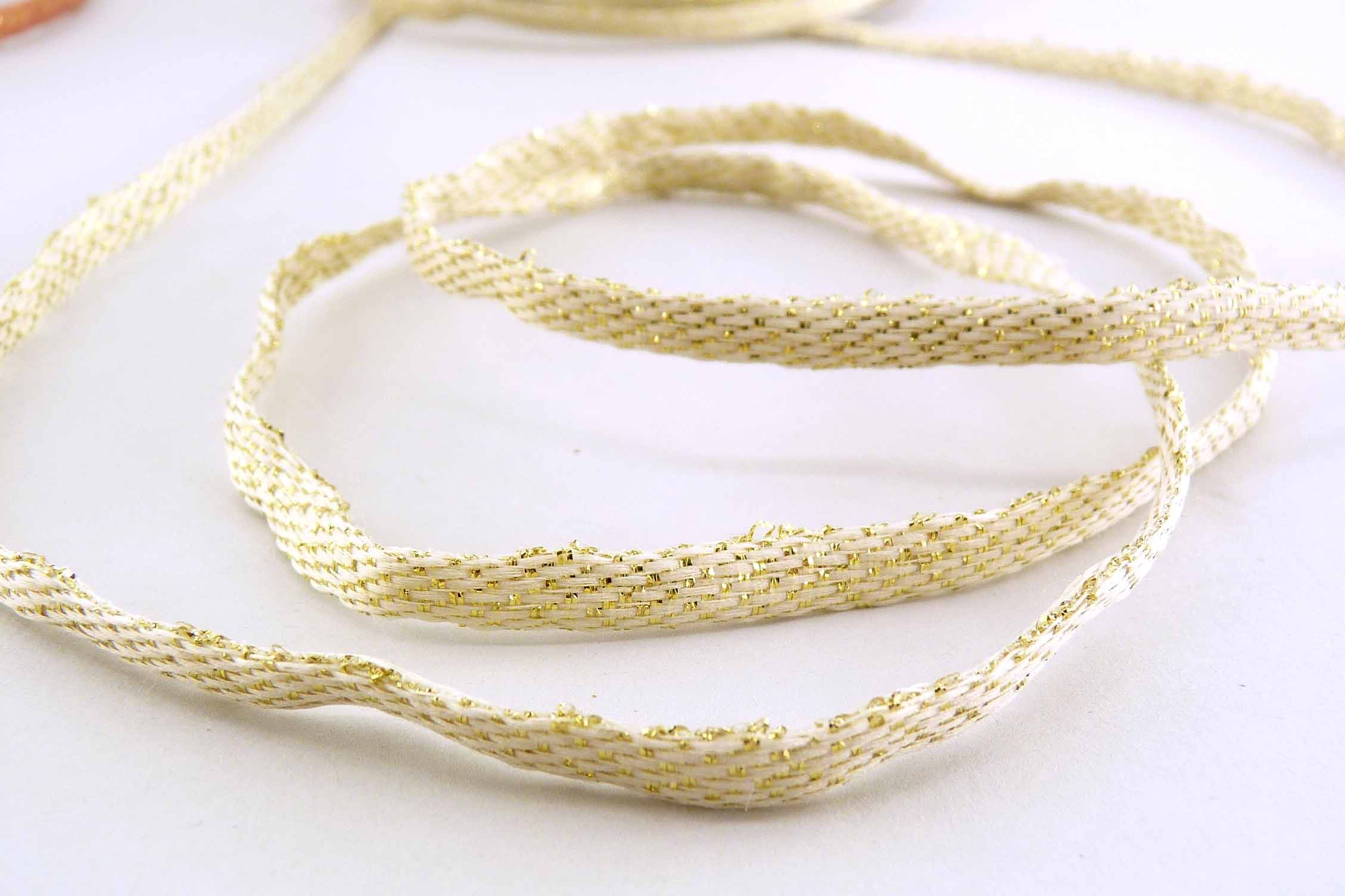 6134-06-420 Kordelband ''Sparkling'' creme-gold 20m