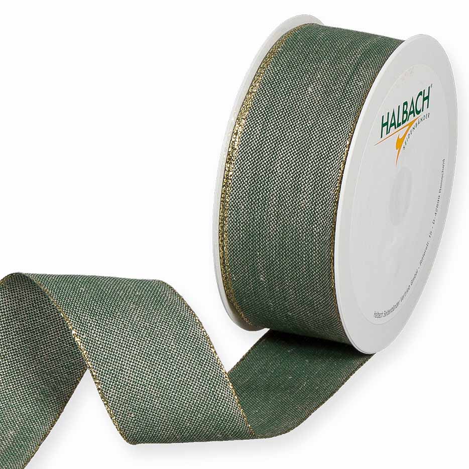 5611-040-32-18 Leinenband +DK mit Goldrand grün 18m