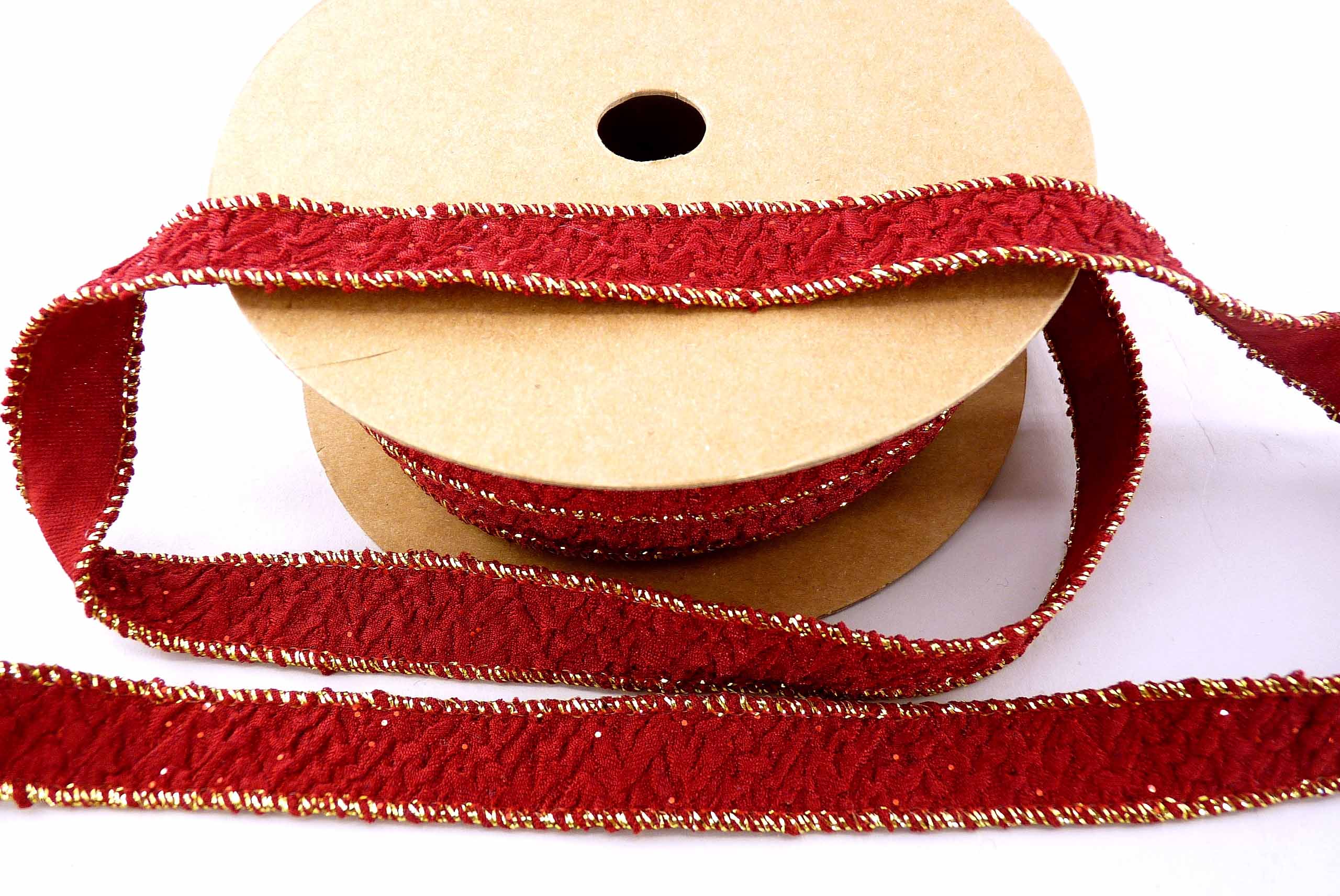 6125-20-360 Stretchband ''Weihnachten'' bordeaux-gold 15m