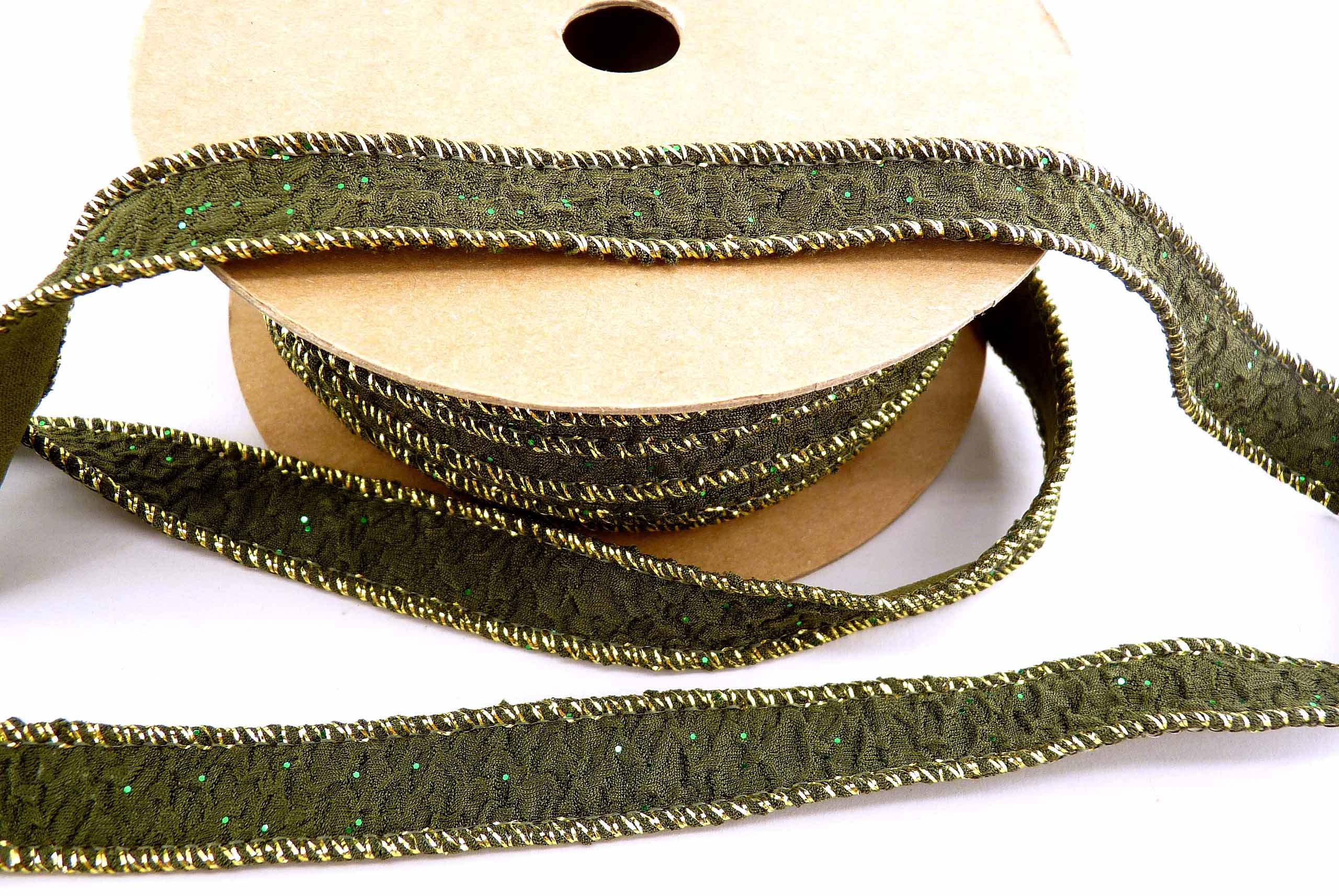 6125-20-500 Stretchband ''Weihnachten'' dkl.grŸün-gold 15m