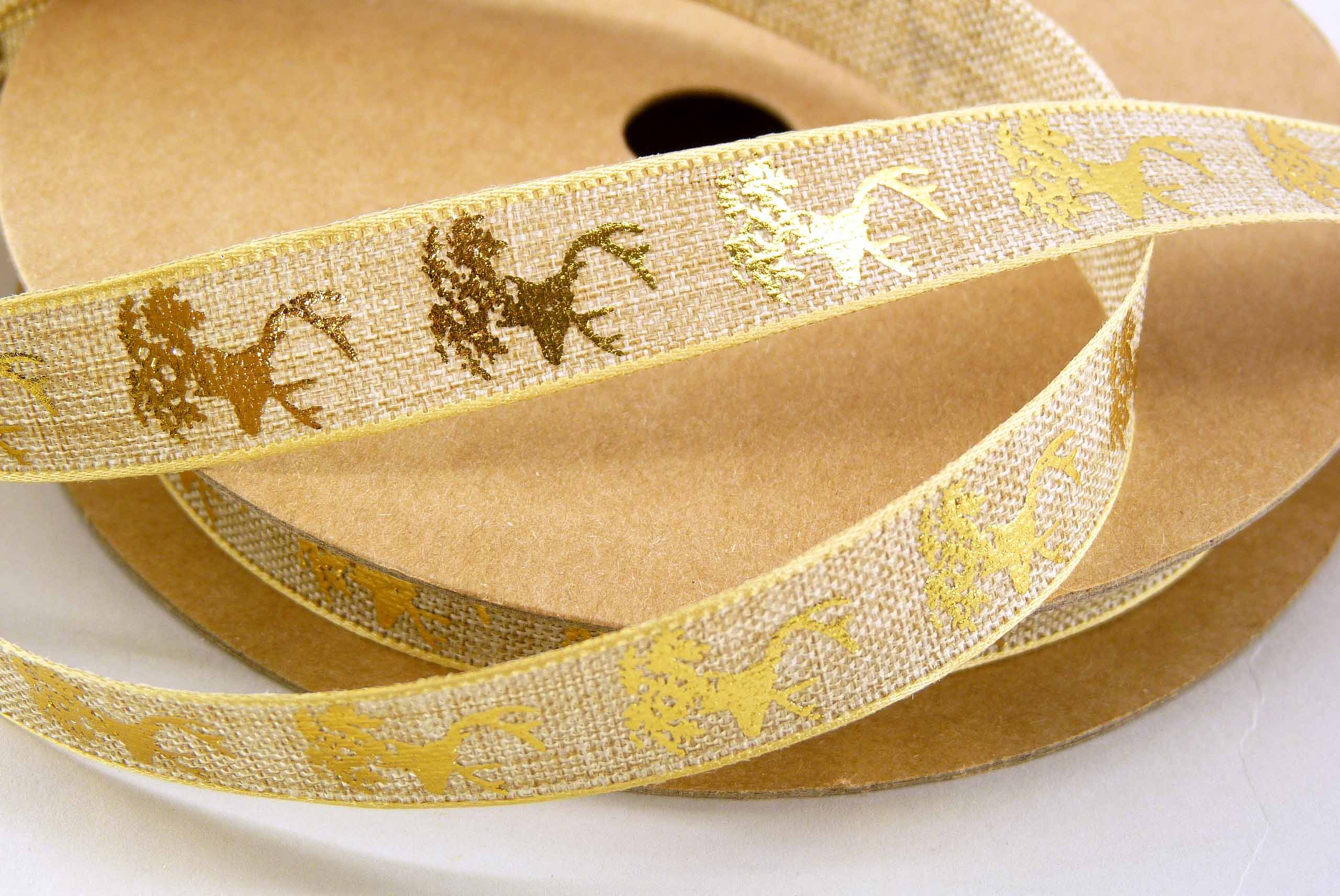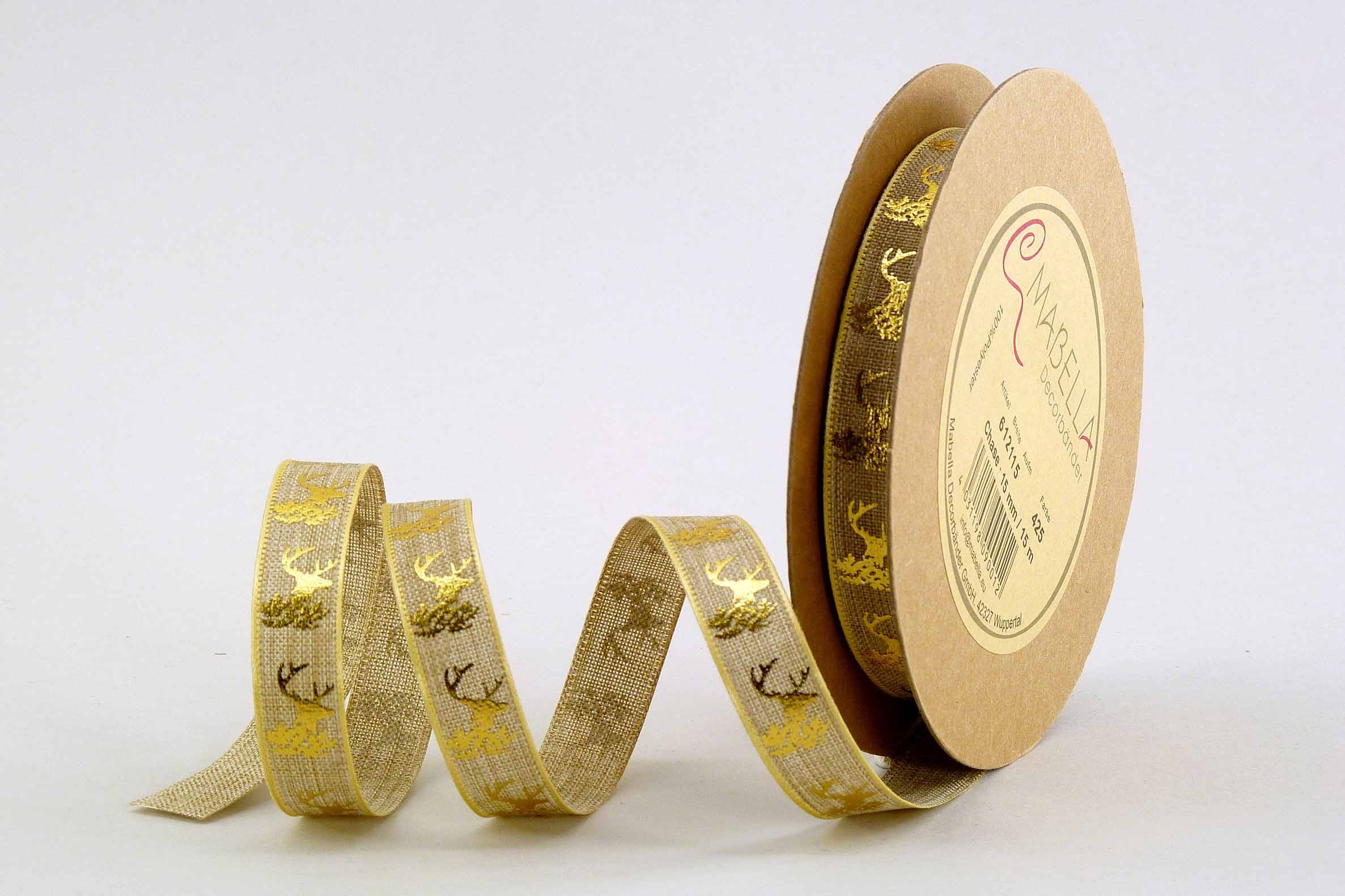 6121-15-425 Druckband ''goldener Hirsch'' natur-gold 15m