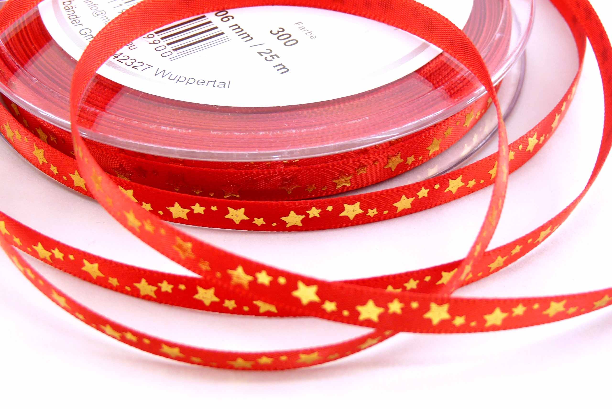 6119-06-300 Sternchendruckband rot-gold 25m