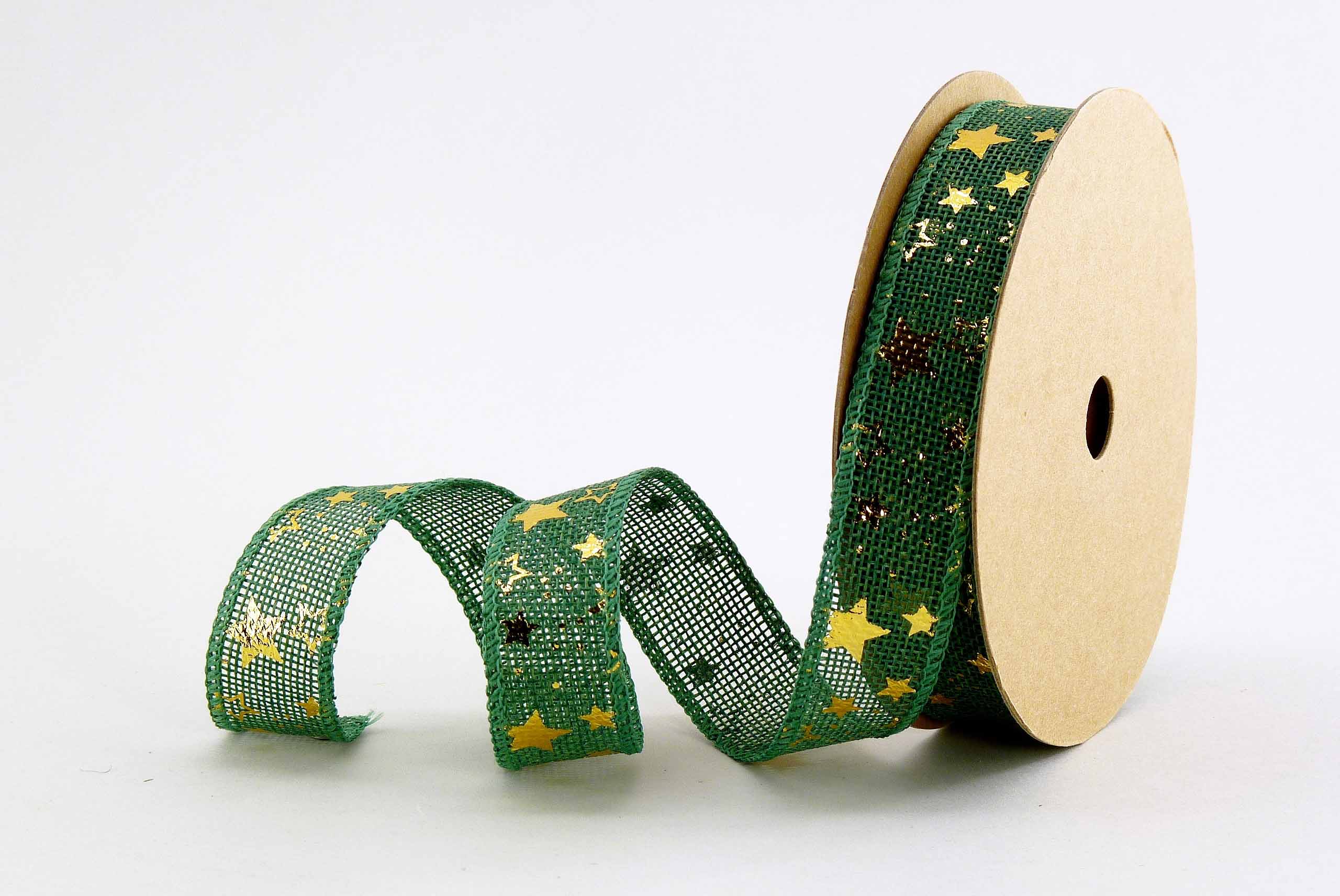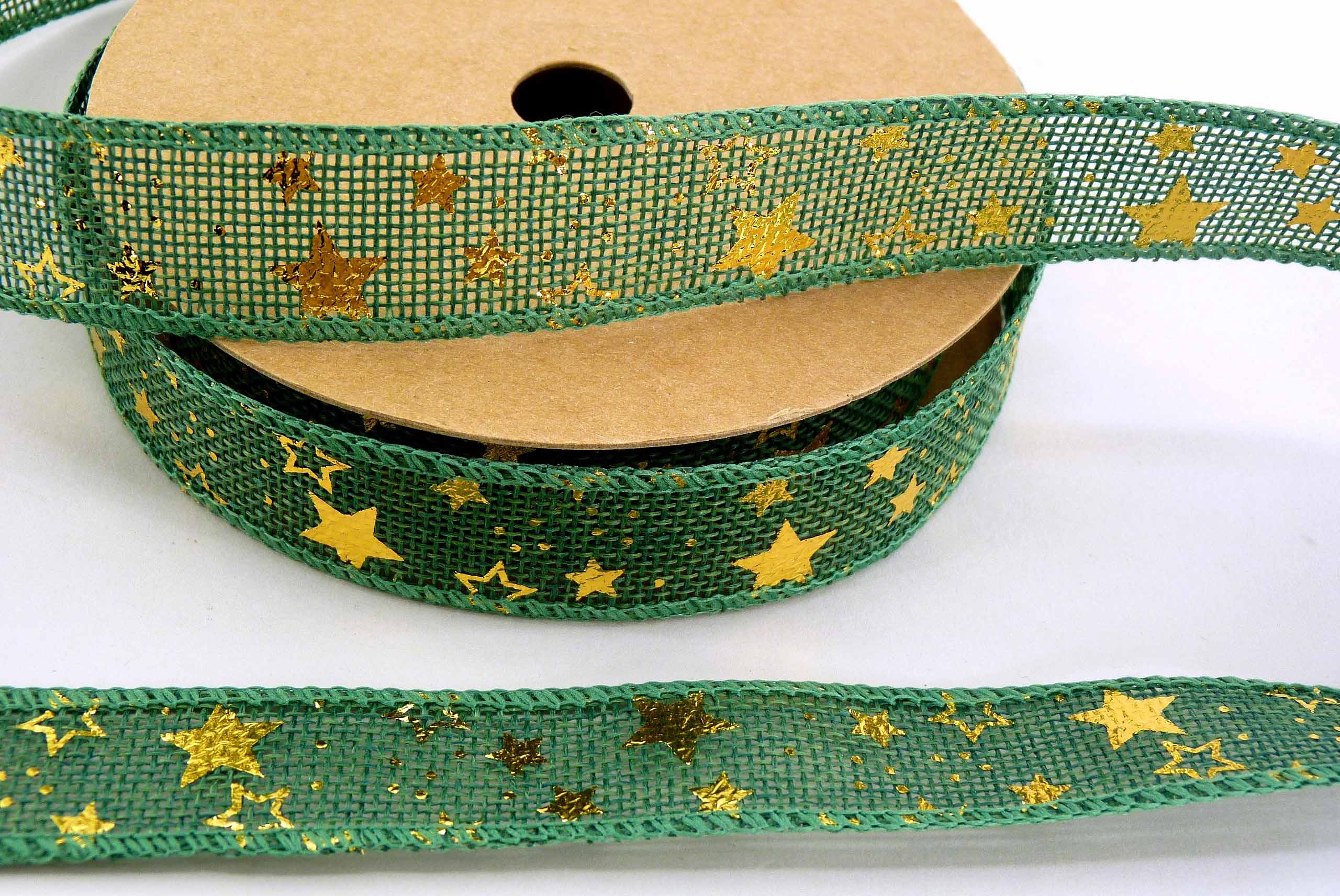 6123-25-500 Flechtband ''Sternen-rauschen'' grŸün-gold 15m