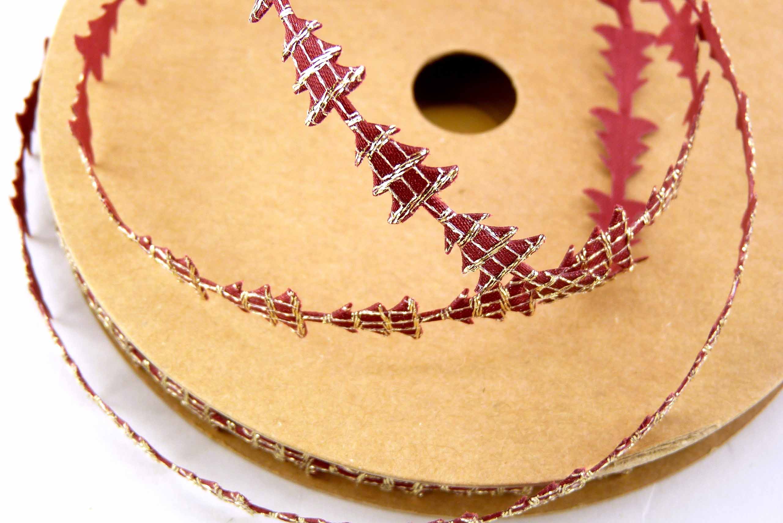 6128-10-360 Stanzband ''Christbaum'' bordeaux-gold 15m