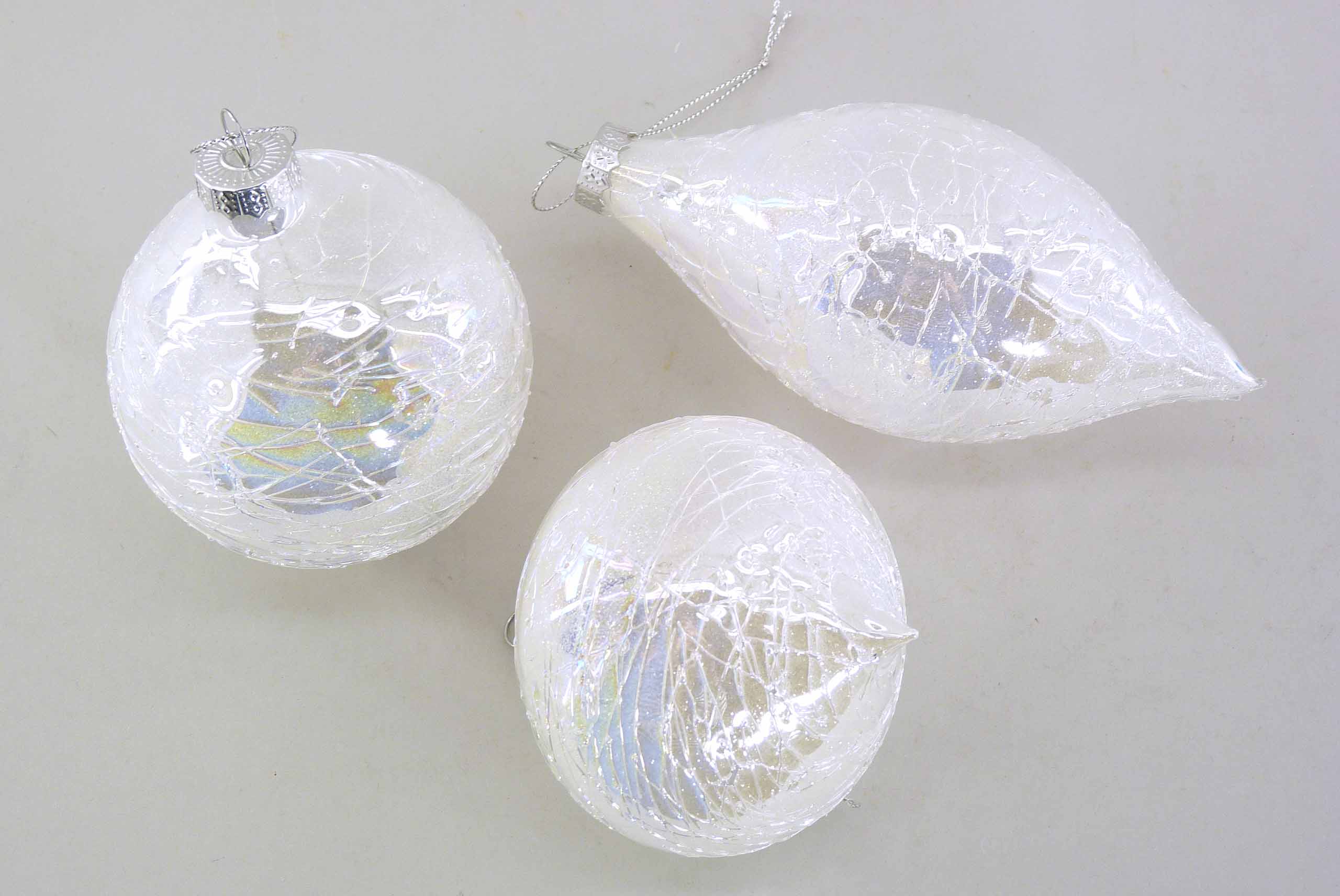 Glas-Ornament ''Icy Crackles'' hgd. weiß-glimmer sort. ø6,5-8 H8,5-14cm