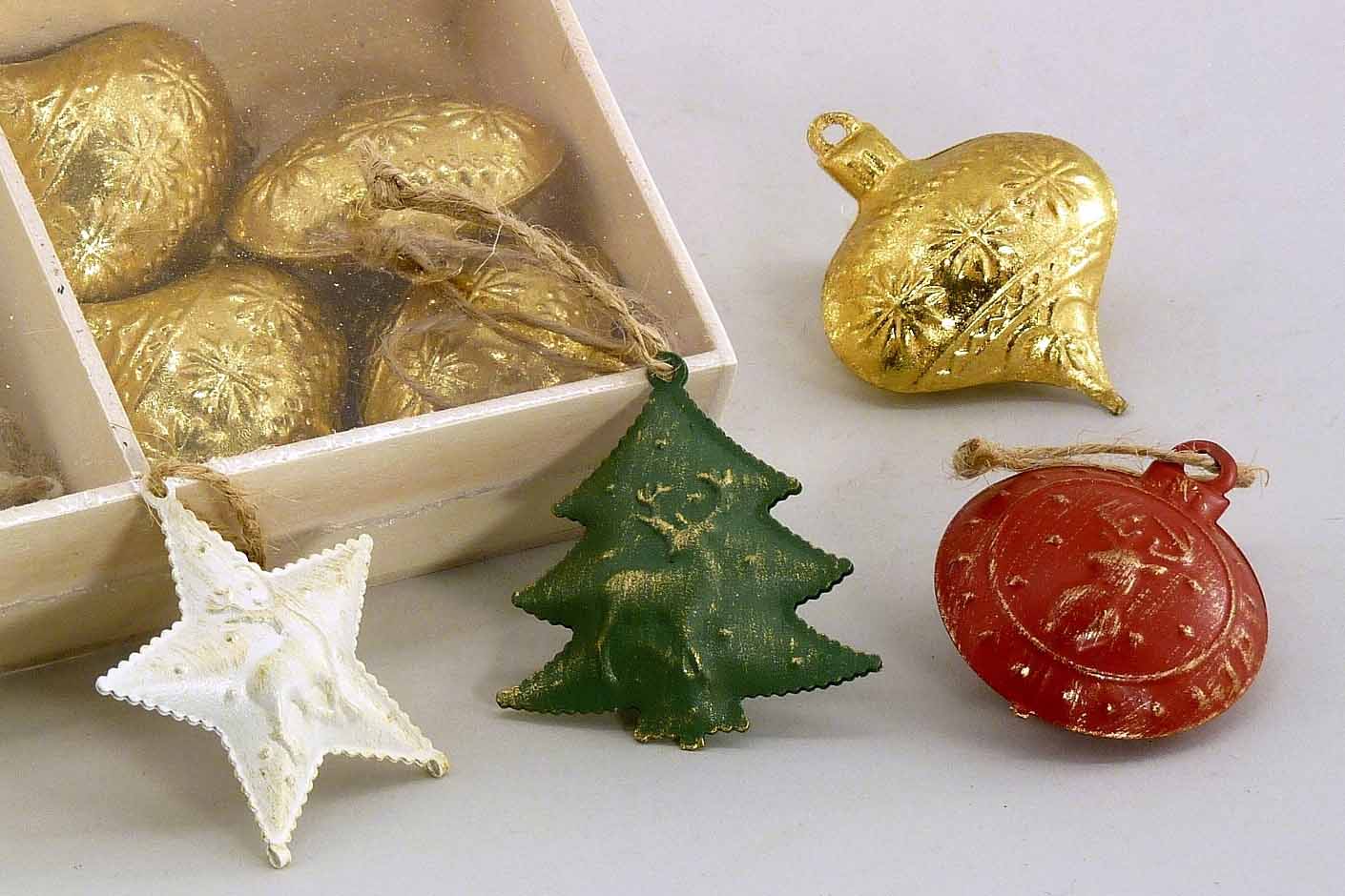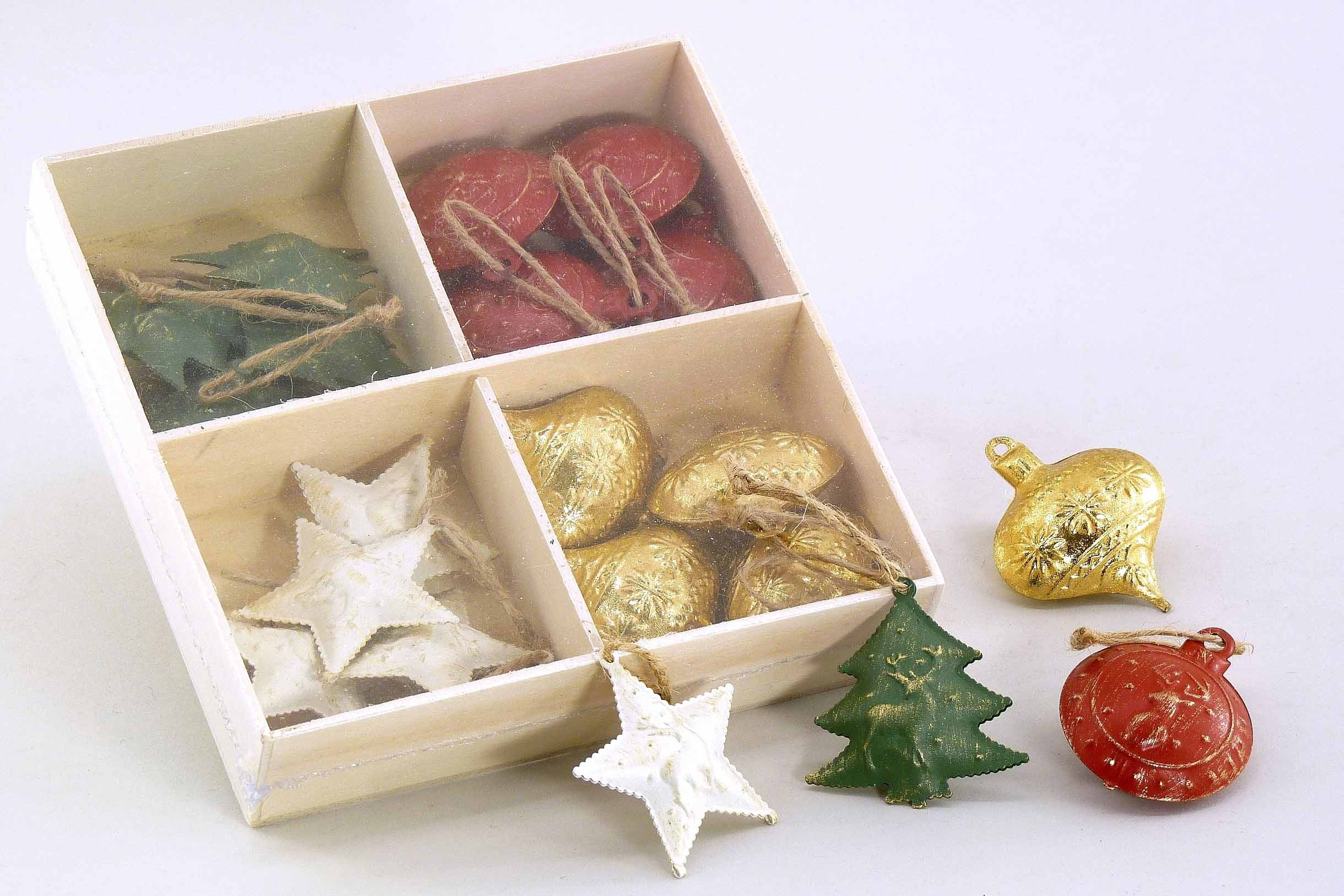 Metall-Weihnachtsmotive Box/16 rot-grün-gold-creme ø4,5cm