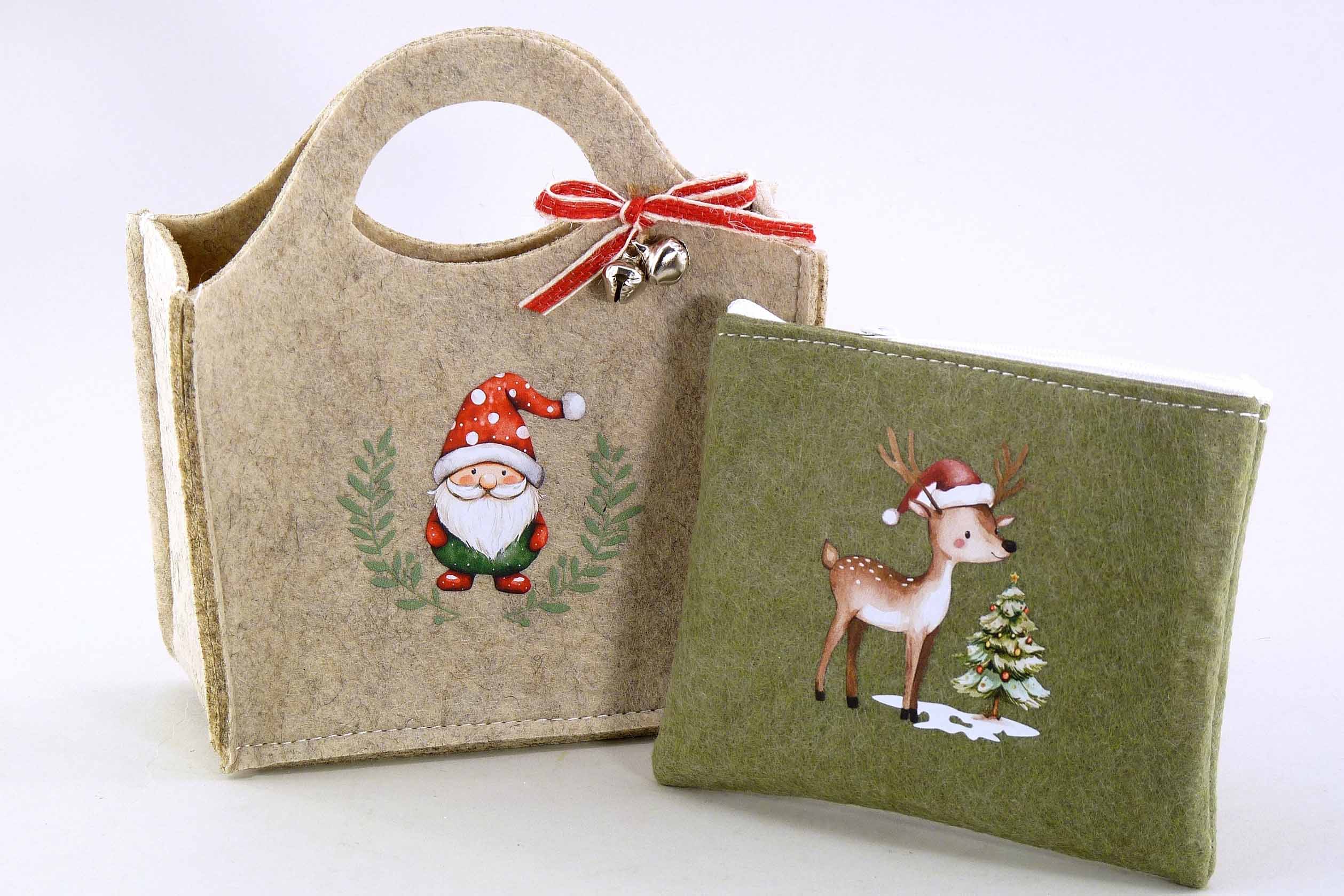 Filz-Tasche ''Xmas-Motiv'' +Zip grau/braun/grün sort. H10 B13cm