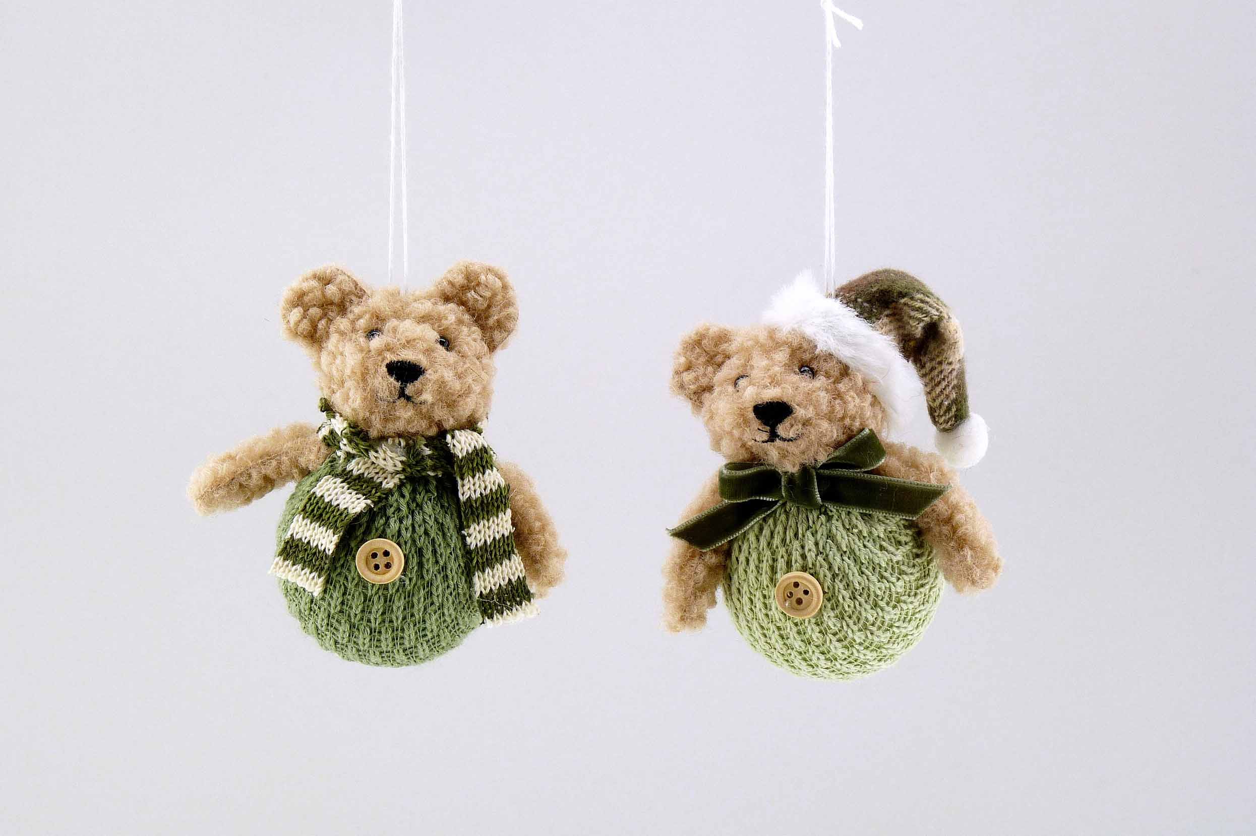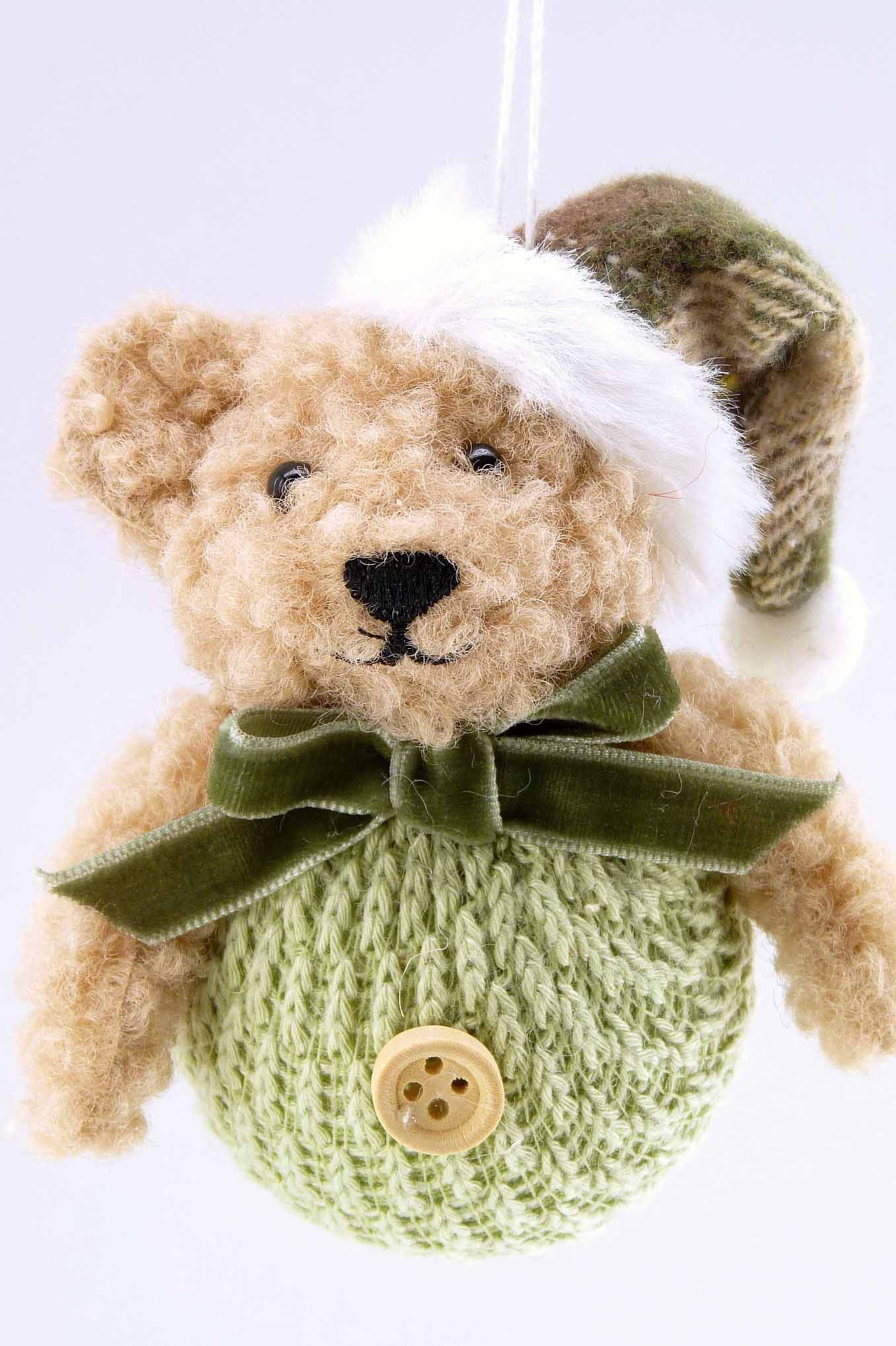Stoff/Woll-Winterteddy ''Kugelbauch'' hgd. braun-grün-weiß sort. H10cm