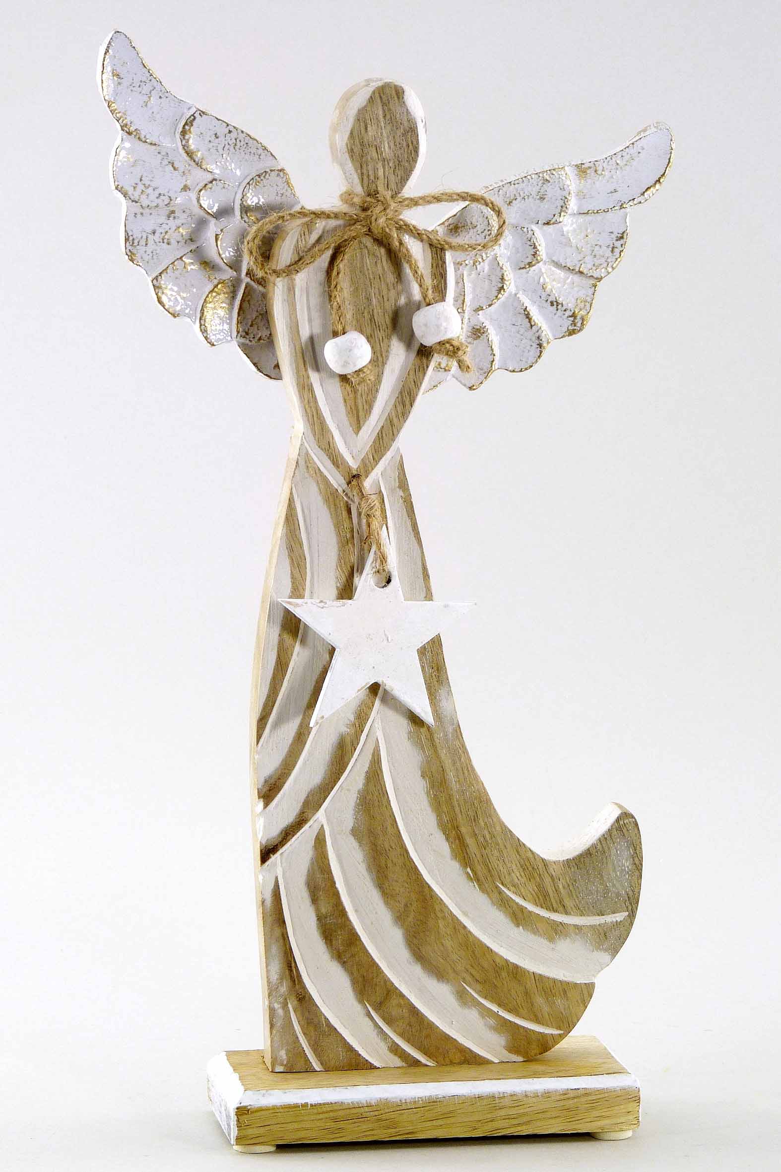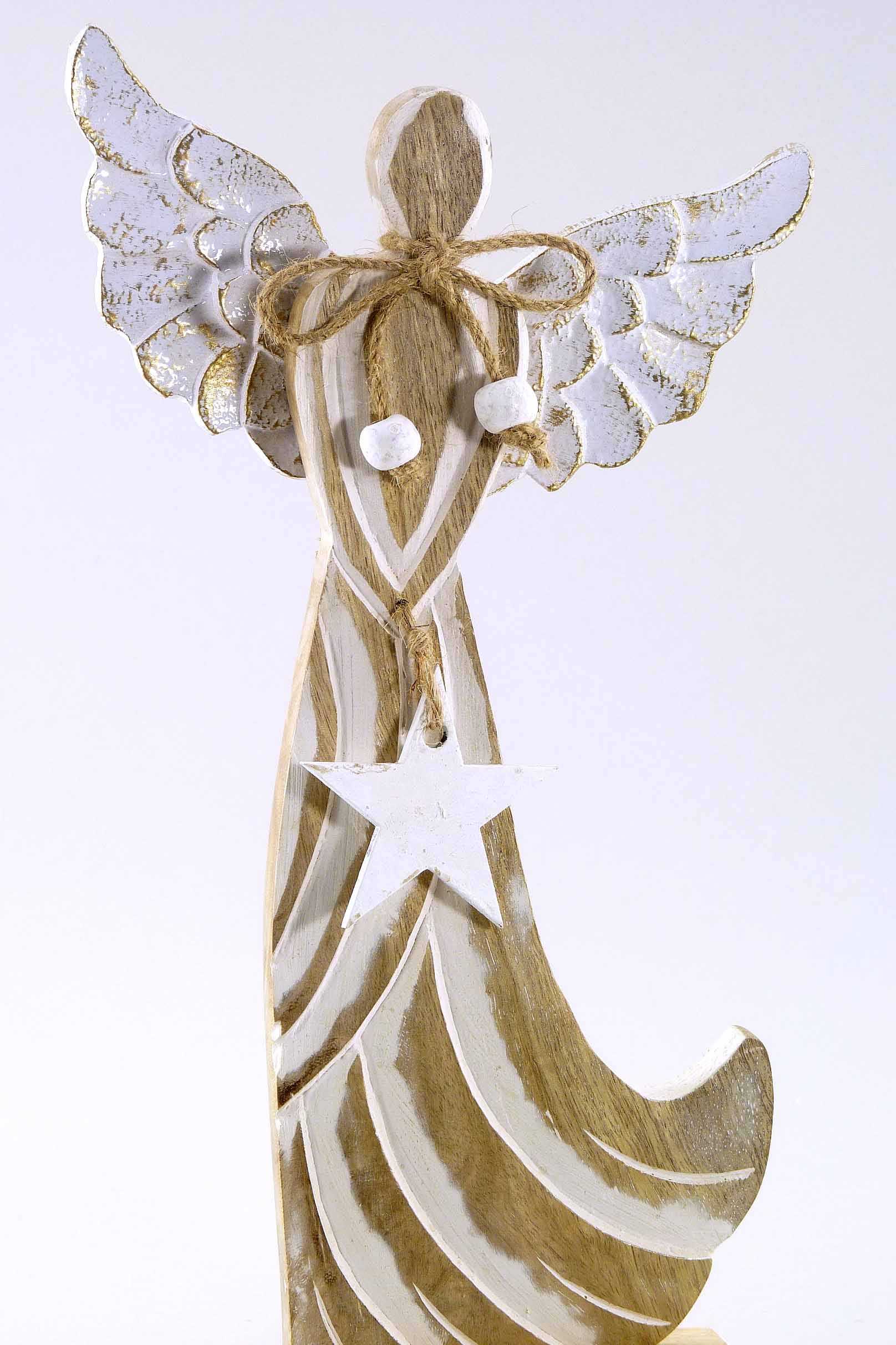 Mangoholz/Alu-Angel natur-weiß H32cm