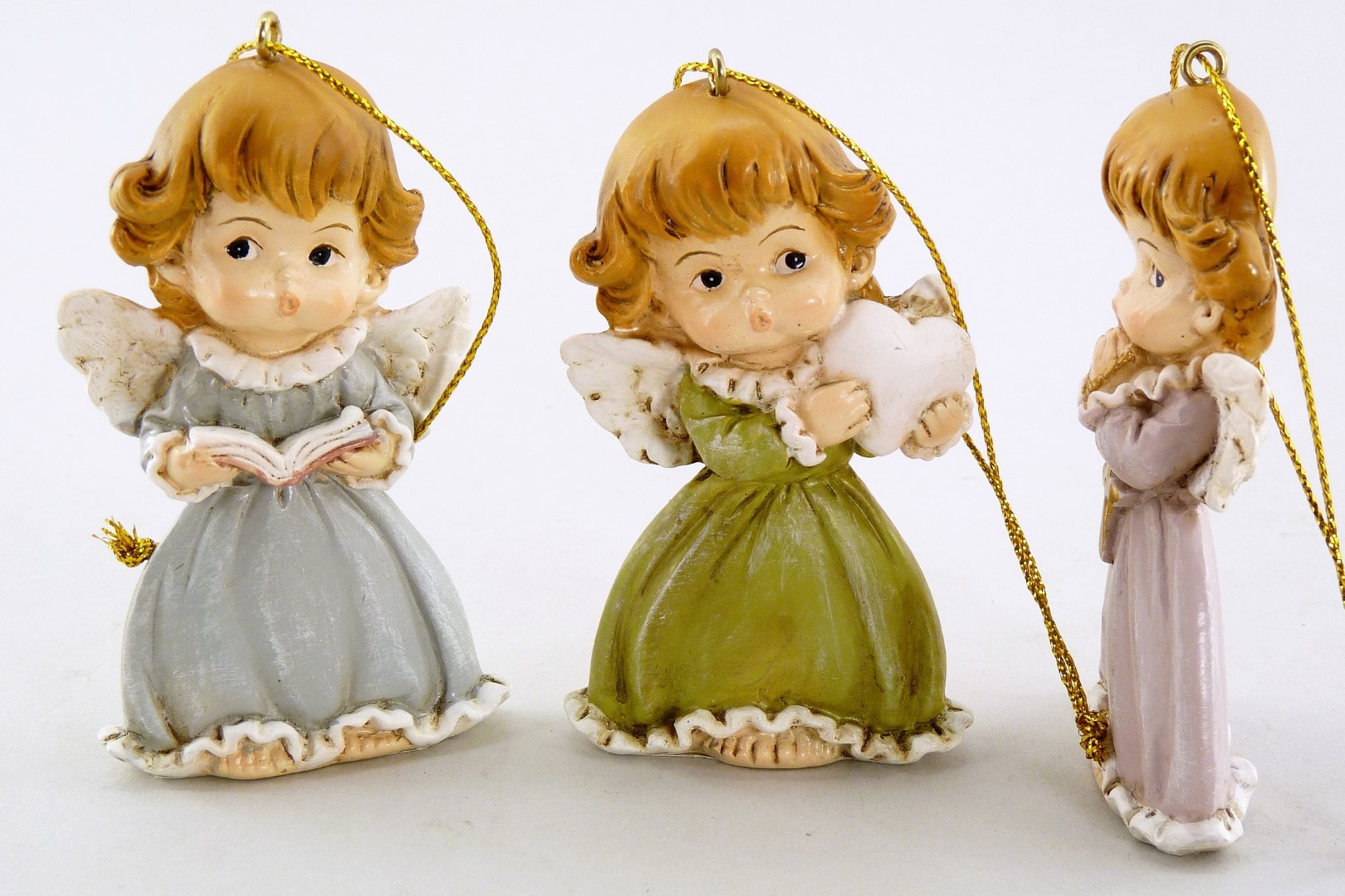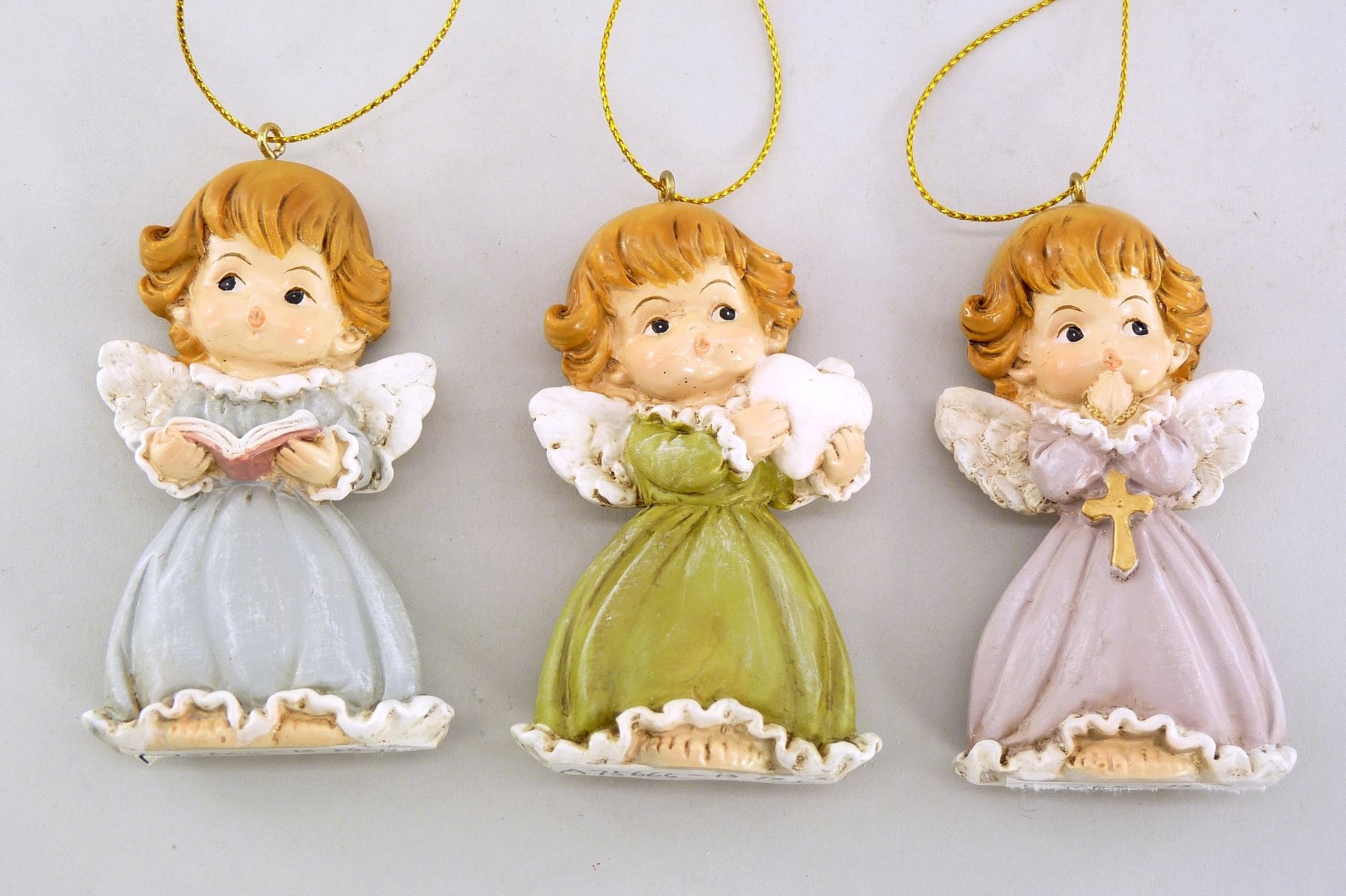 Poly-Schutzengel ''Ella'' flach hgd. blau/grün/rosé sort. H8cm