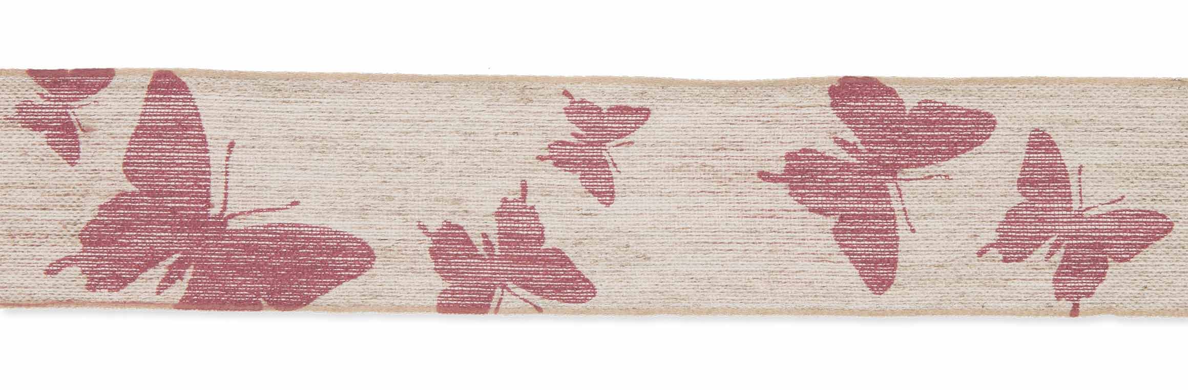 1688-040-510 Leinen-Druckband ''Schmetterling'' natur-rosa 12m