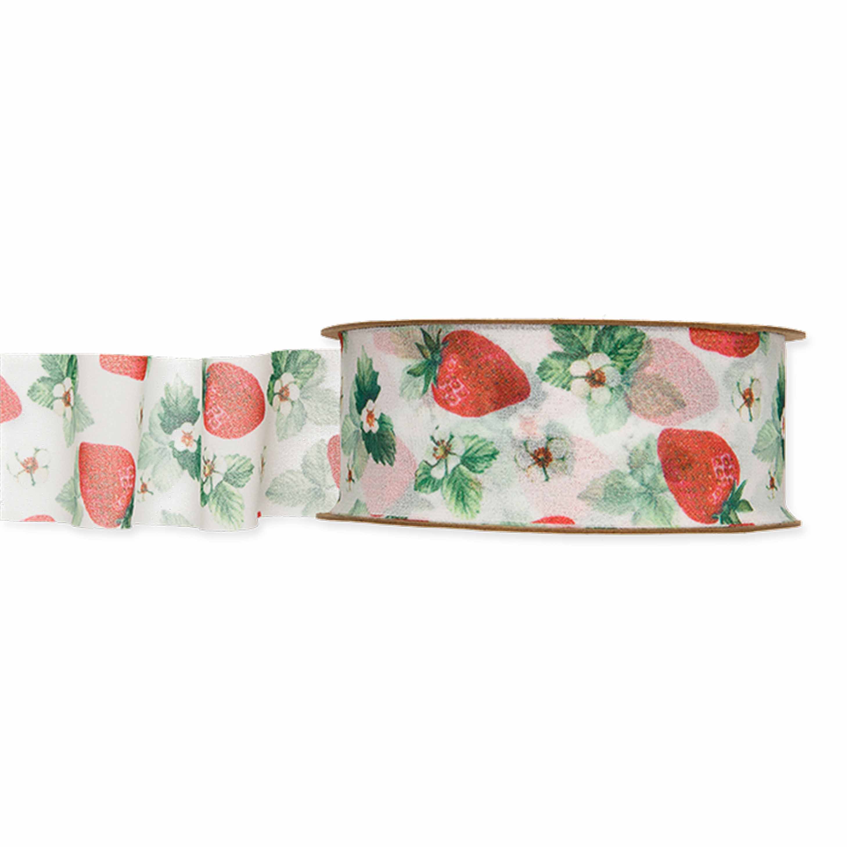 93204-040-77 Chiffonband ''Erdbeere'' weiß-rot-grün 15m