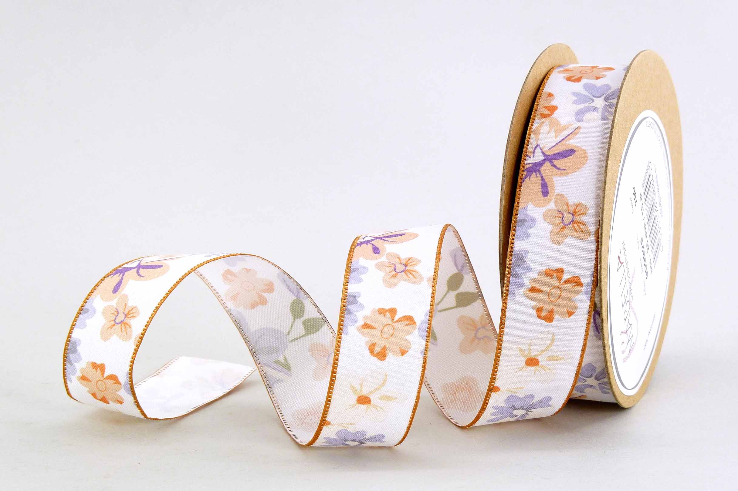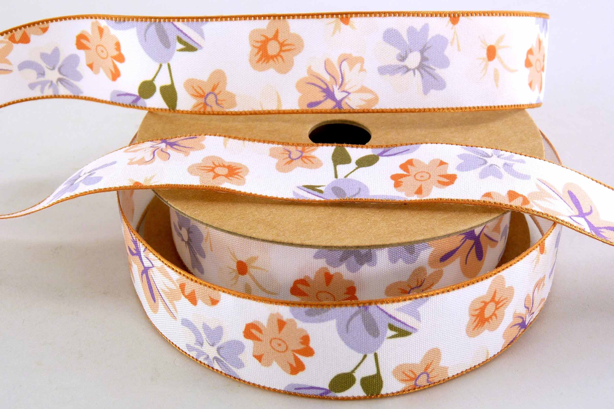 6098-25-700 Druckband ''Retro-Blumen'' weiß-violett-rosa 15m