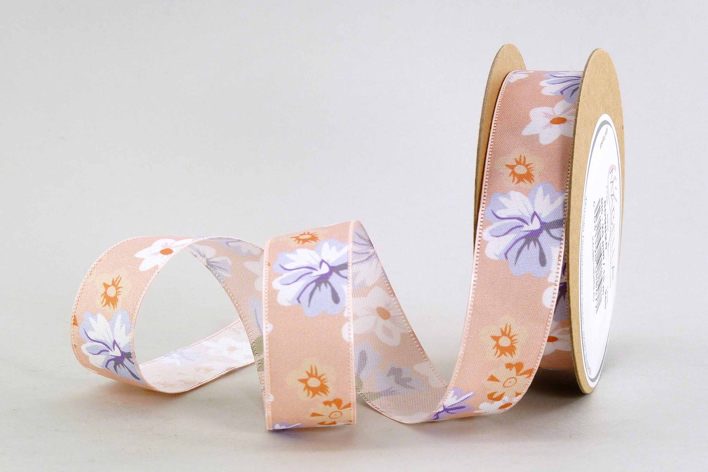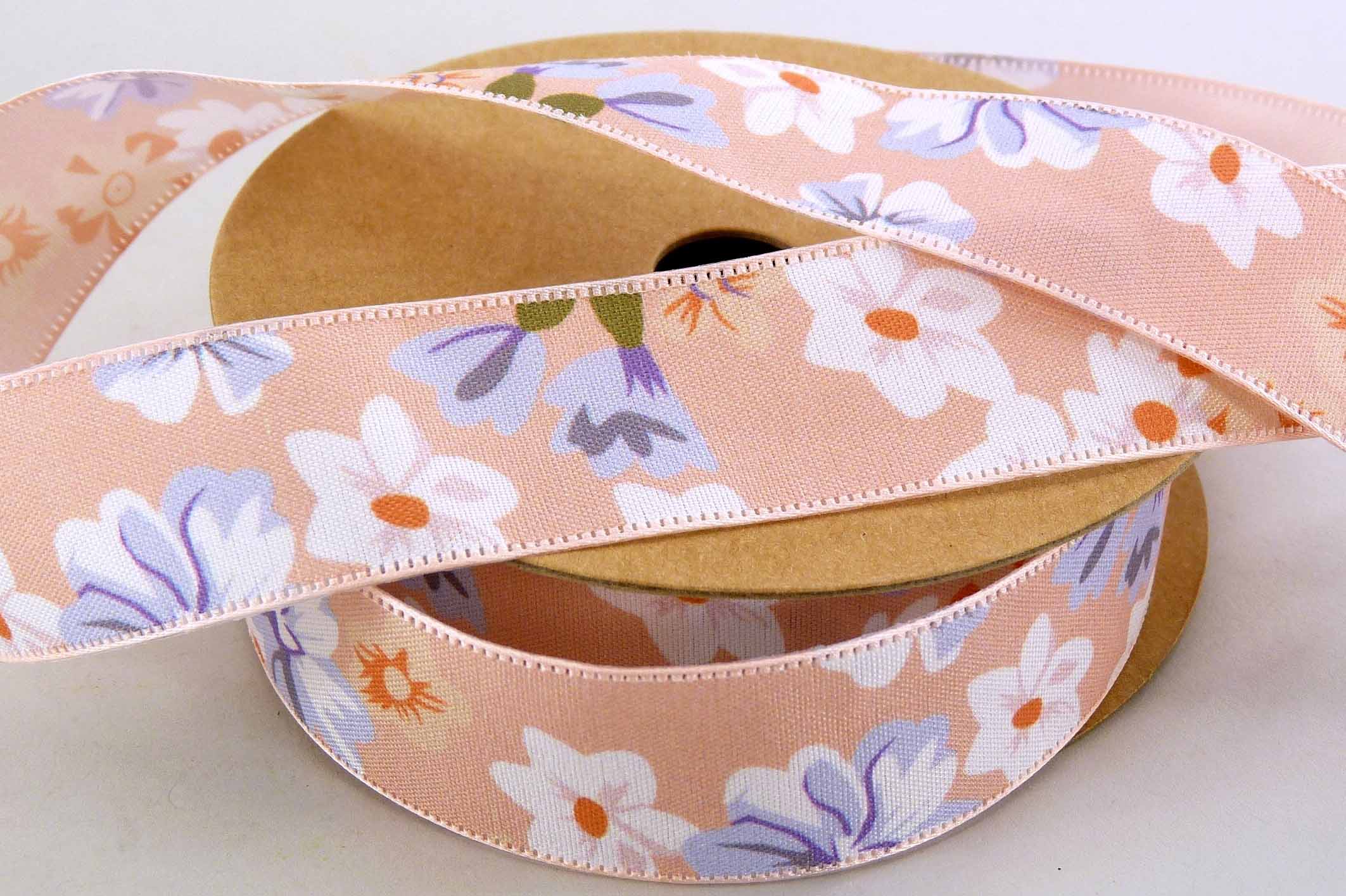 6098-25-265 Druckband ''Retro-Blumen'' rosa-weiß-violett 15m