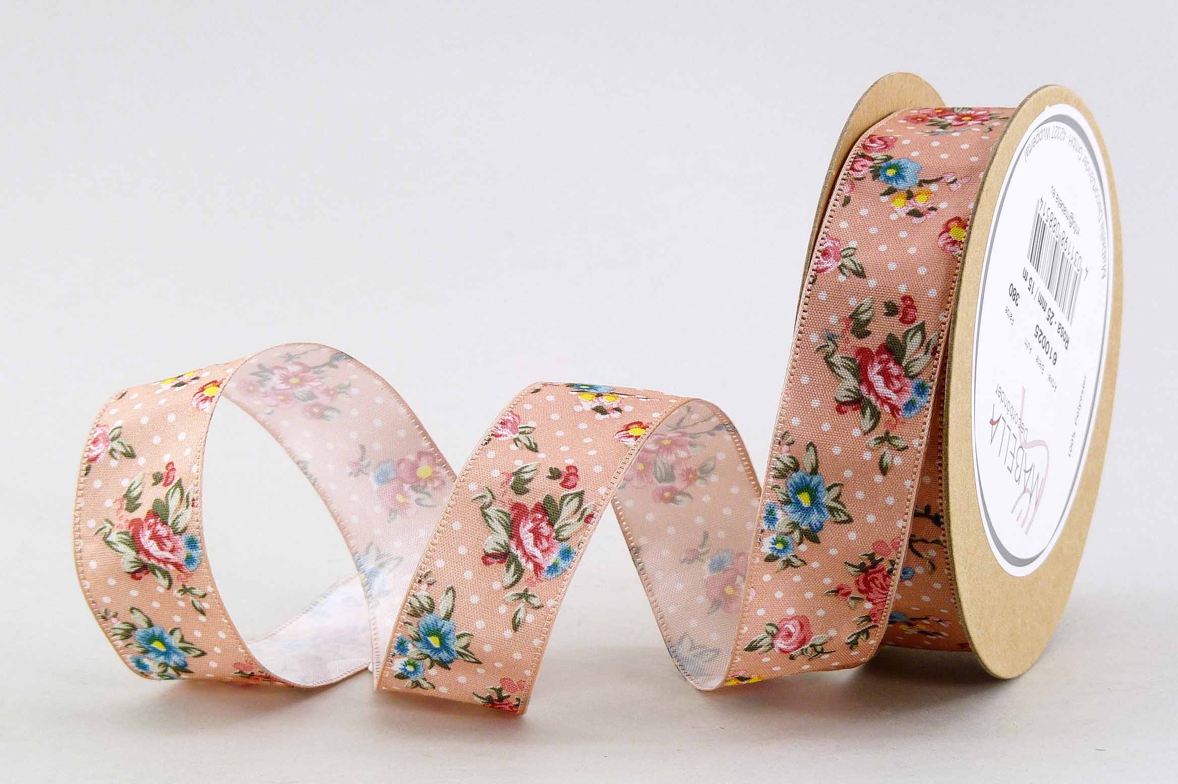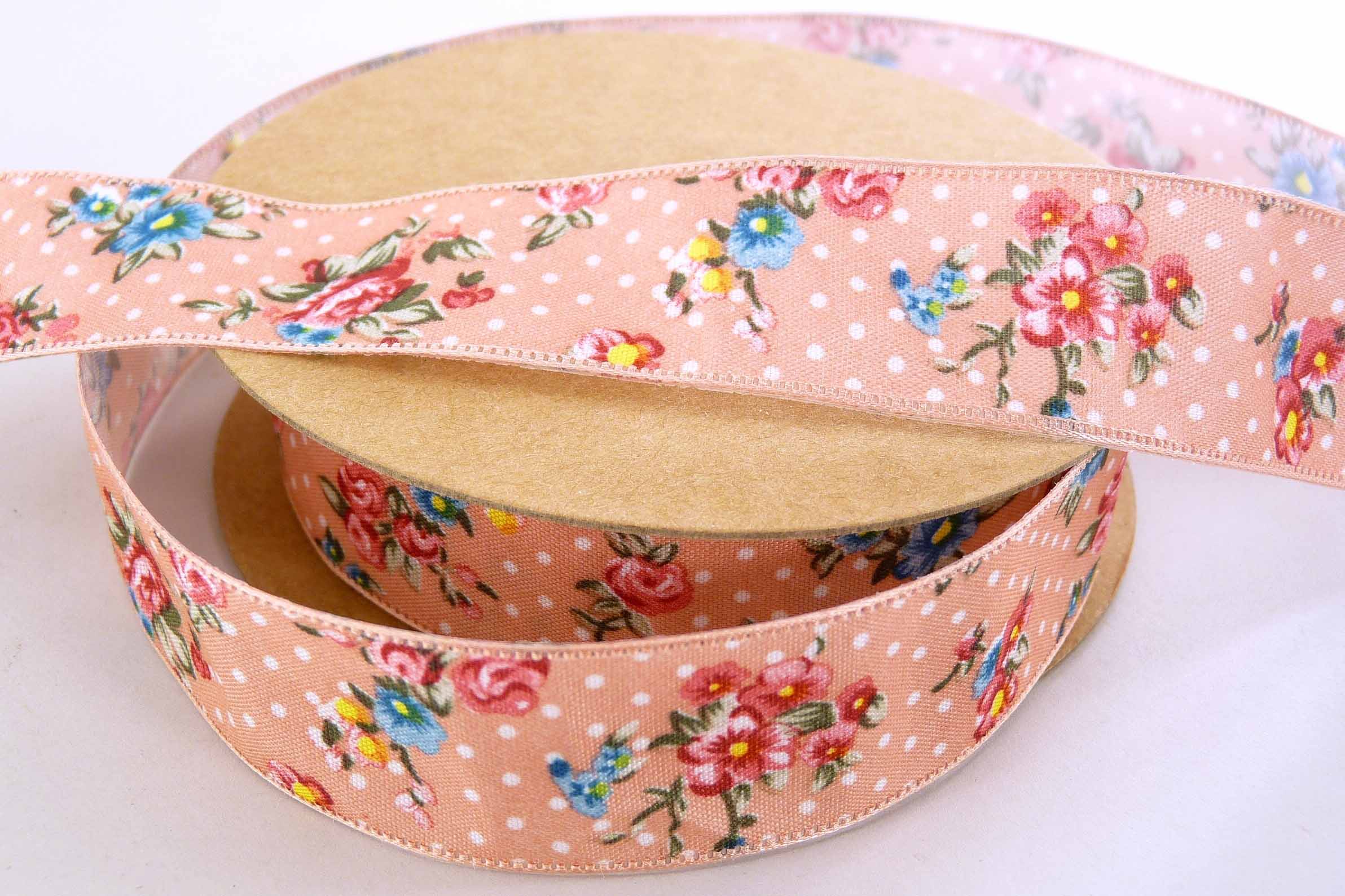6100-25-380 Druckband ''Rosa'' mit Punkten rosa-grün 15m