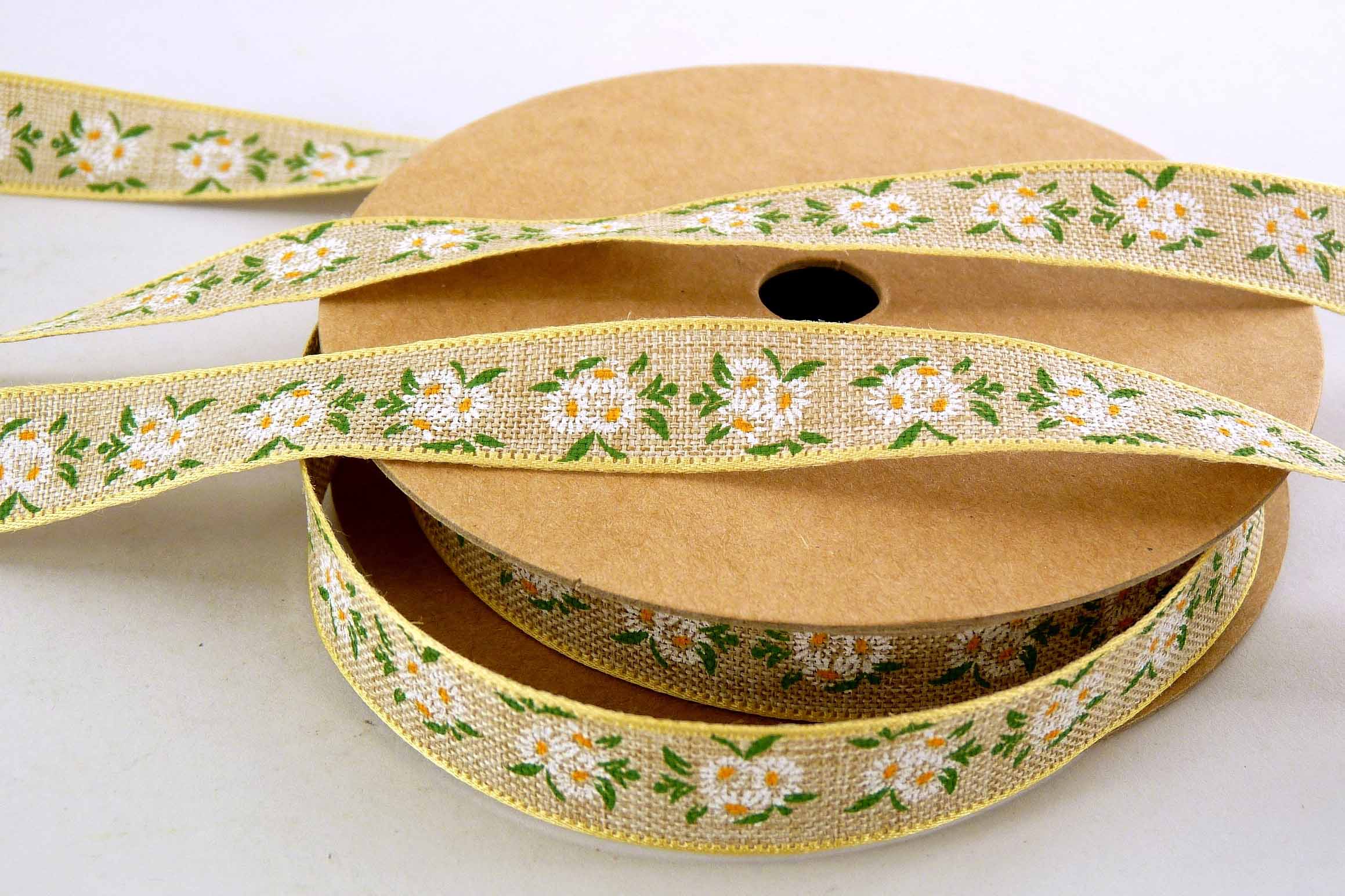 6104-15-420 Gewebeband ''Margarite'' natur-weiß-grün 15m