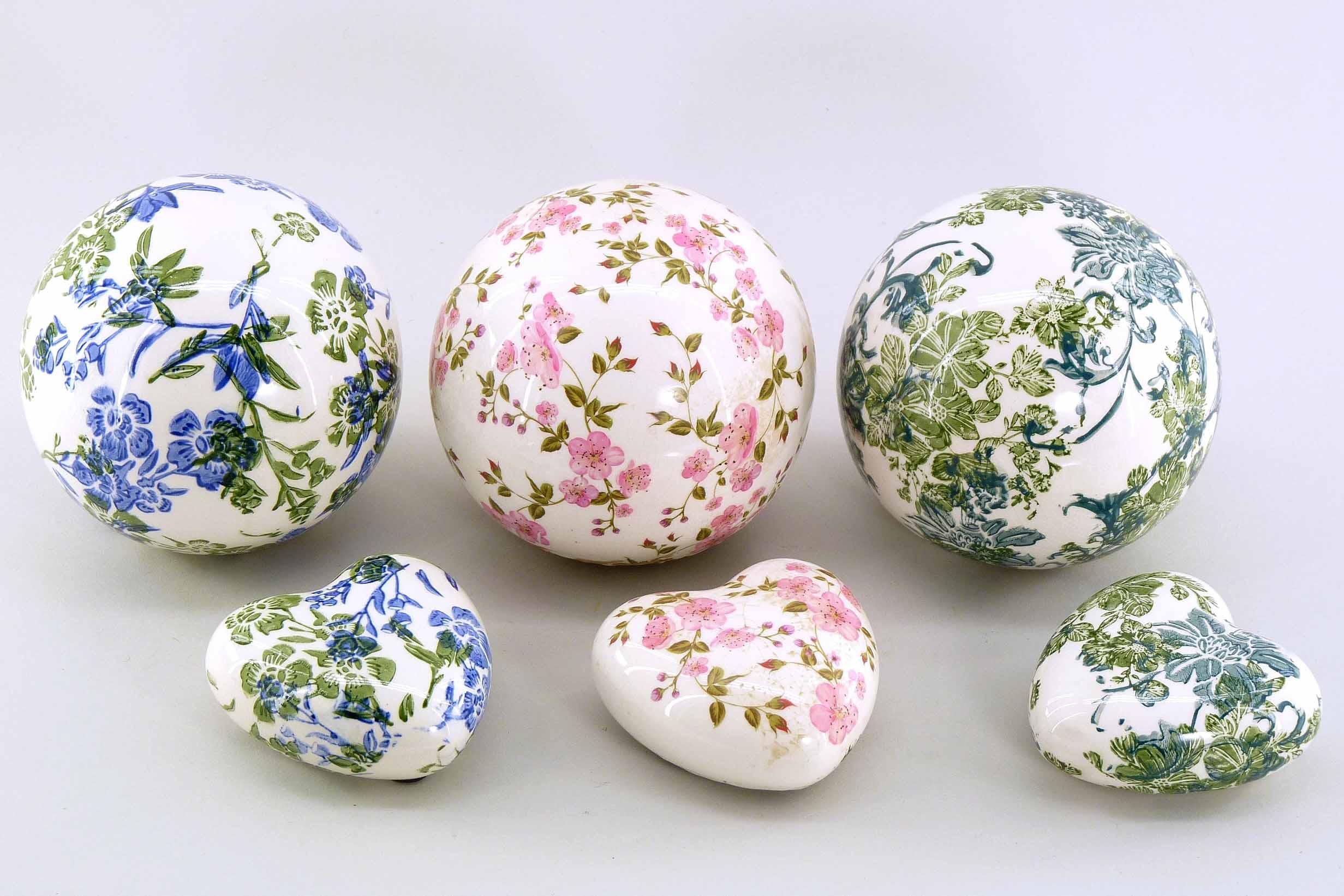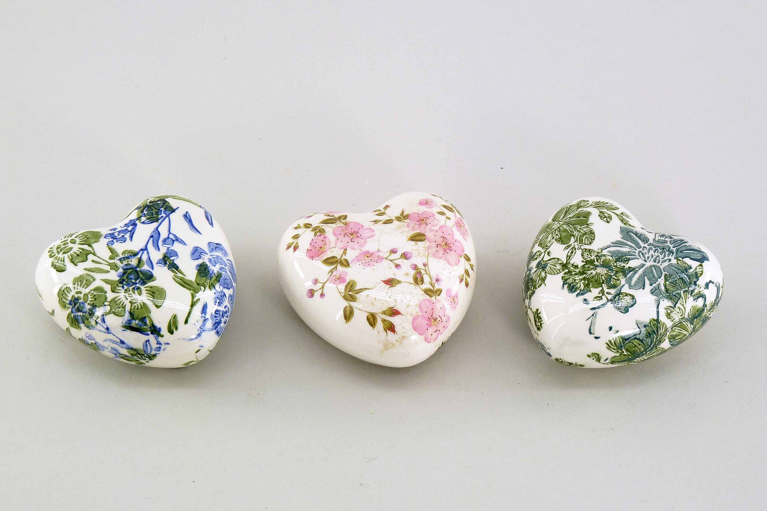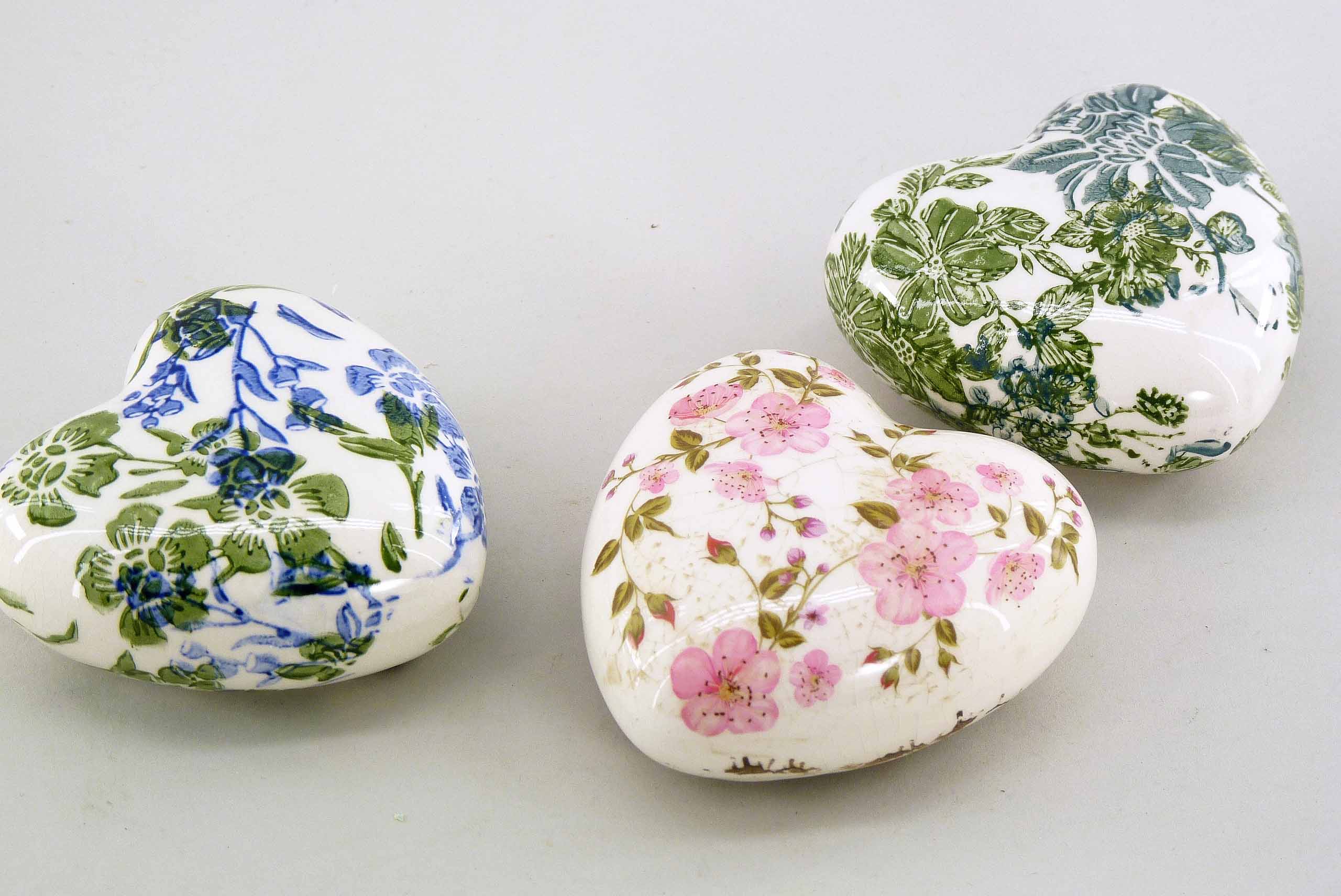 Steingut-Herz ''Floraldekor'' blau/grün/rosa sort. ø8,5 H4cm