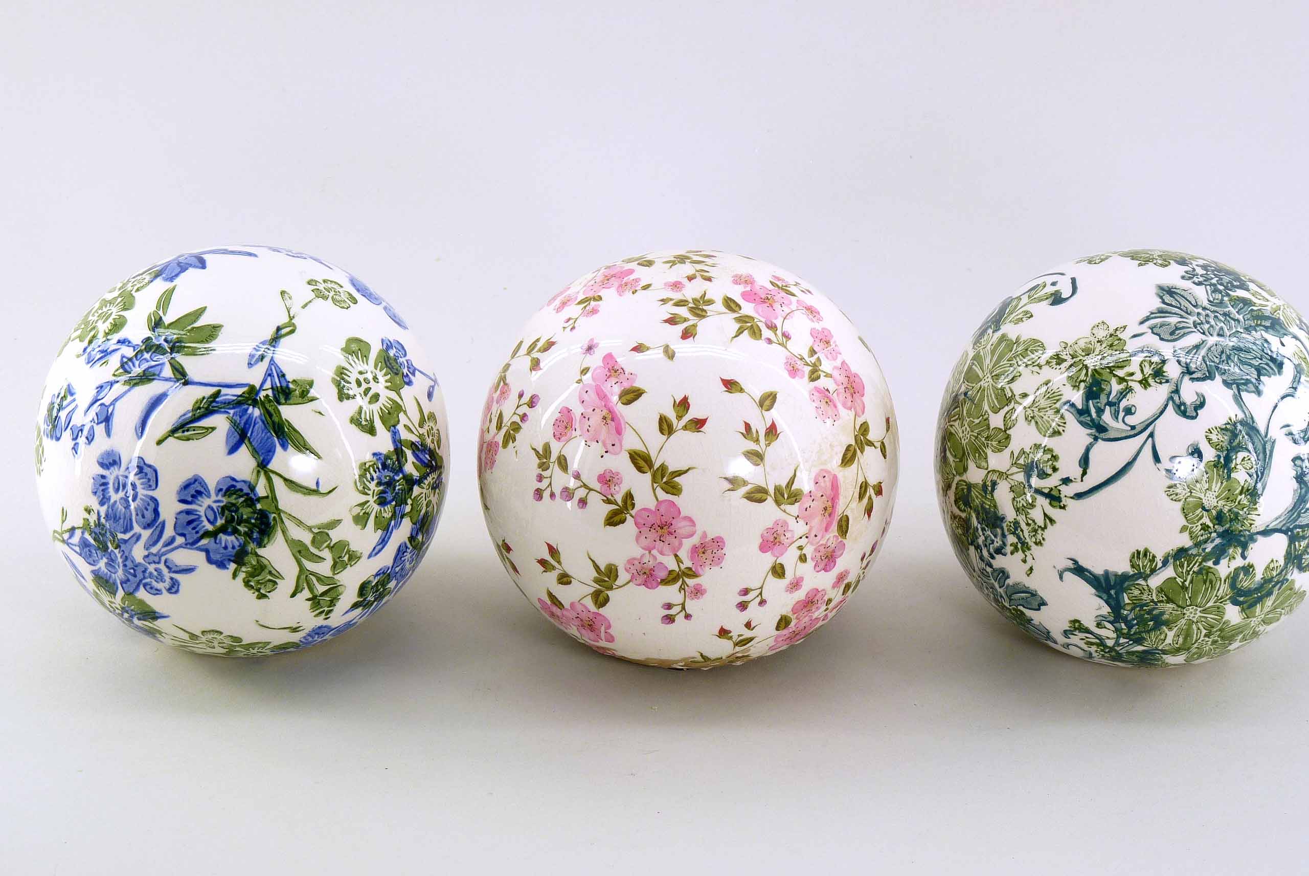 Steingut-Kugel ''Floraldekor'' blau/grün/rosa sort. ø12 H11,5cm