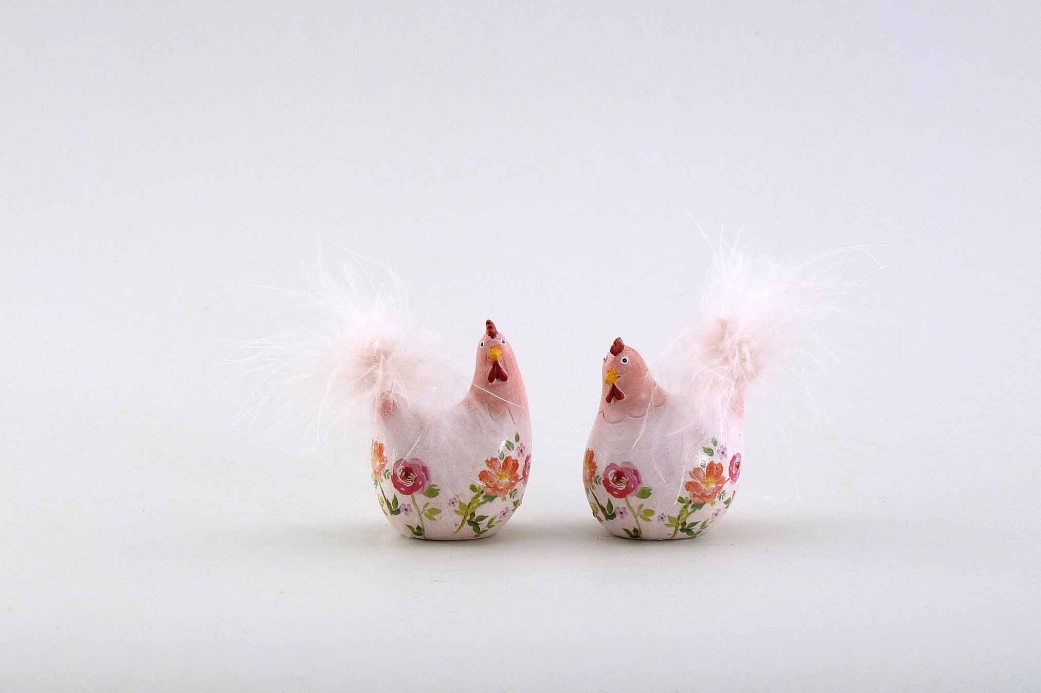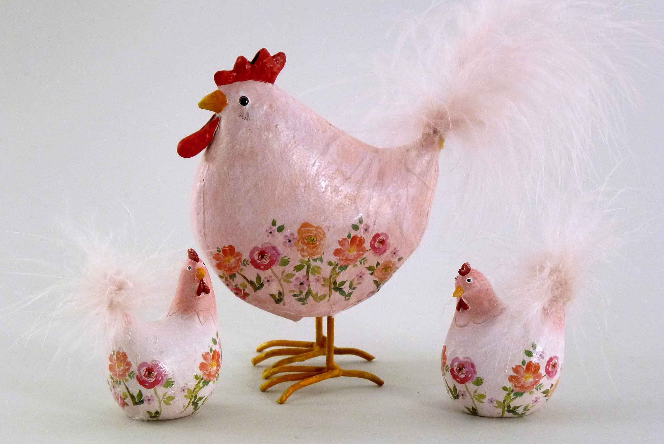 Poly/Feder-Henne ''Rosendekor'' rosa-creme sort. H7 B4cm