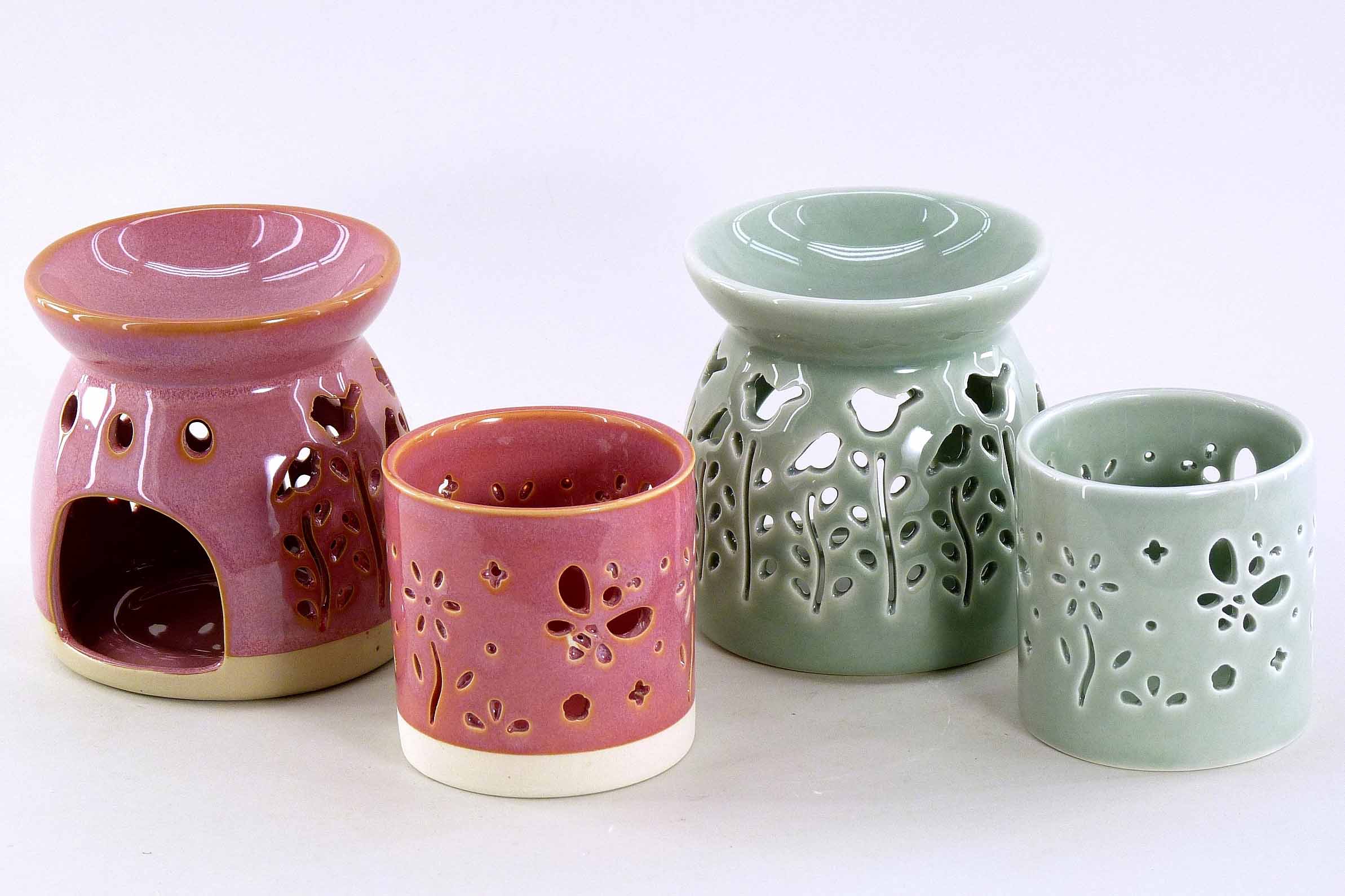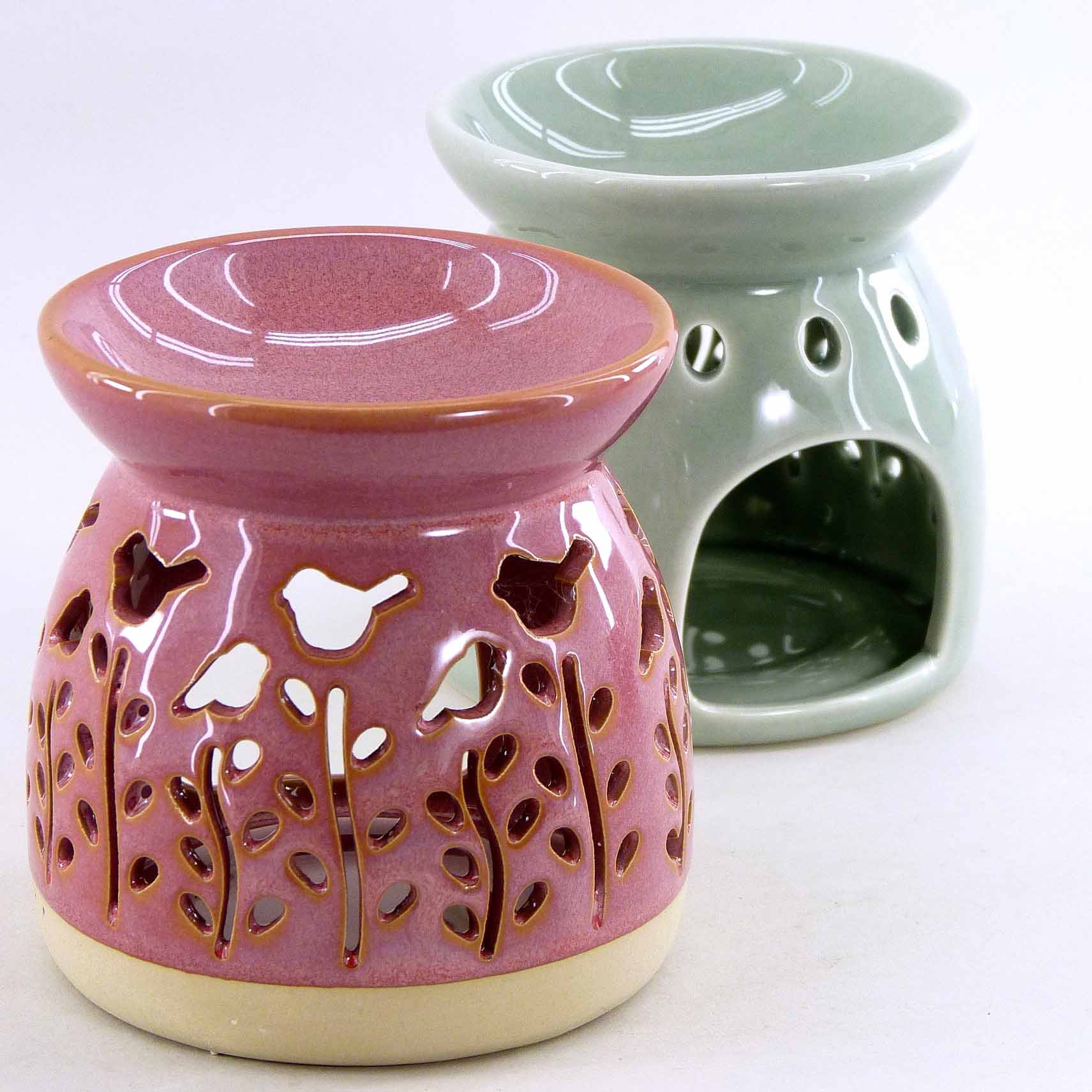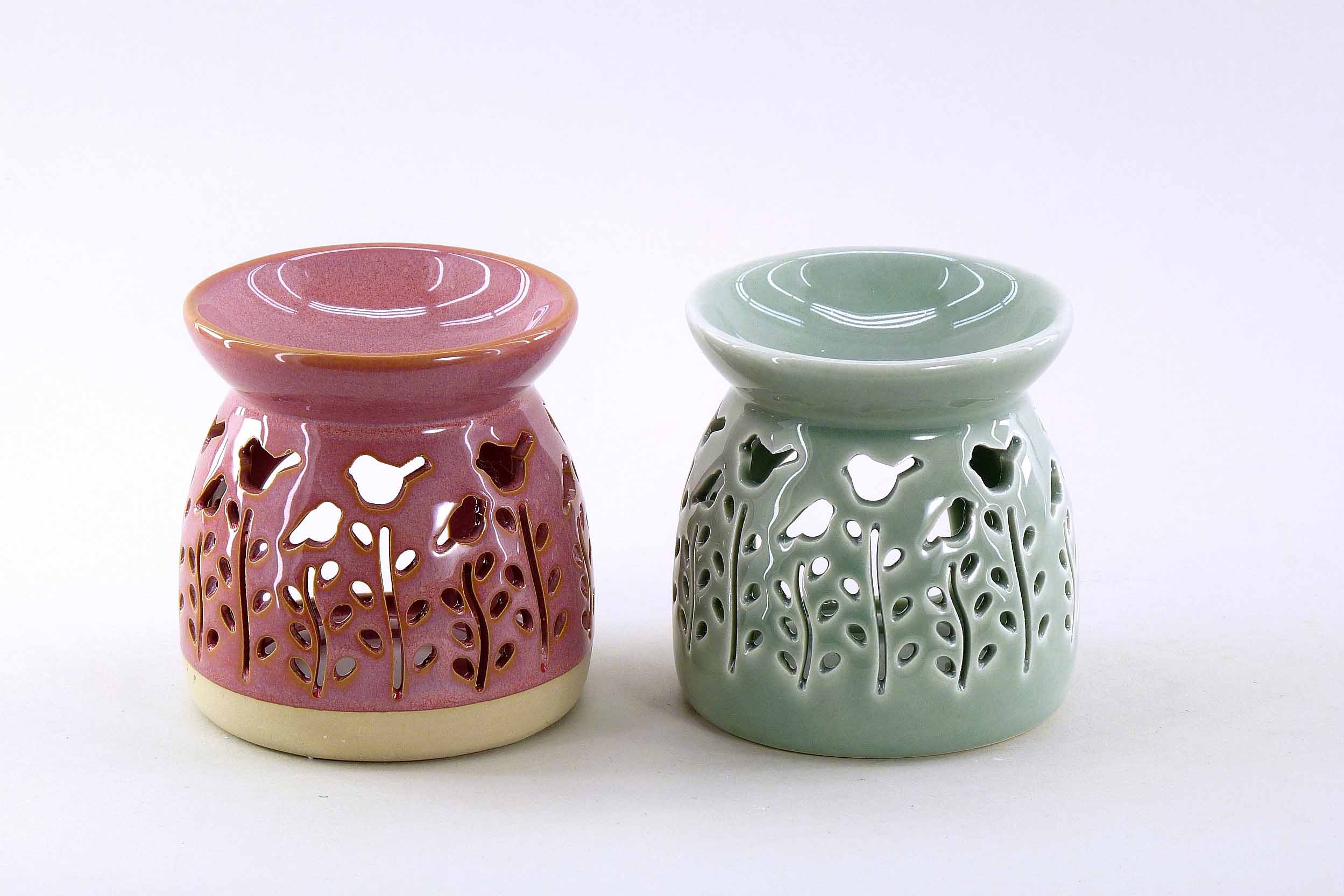 Porzellan-Duftlampe ''Birds&Flowers'' rosé/mint sort. ø9 H9,5cm