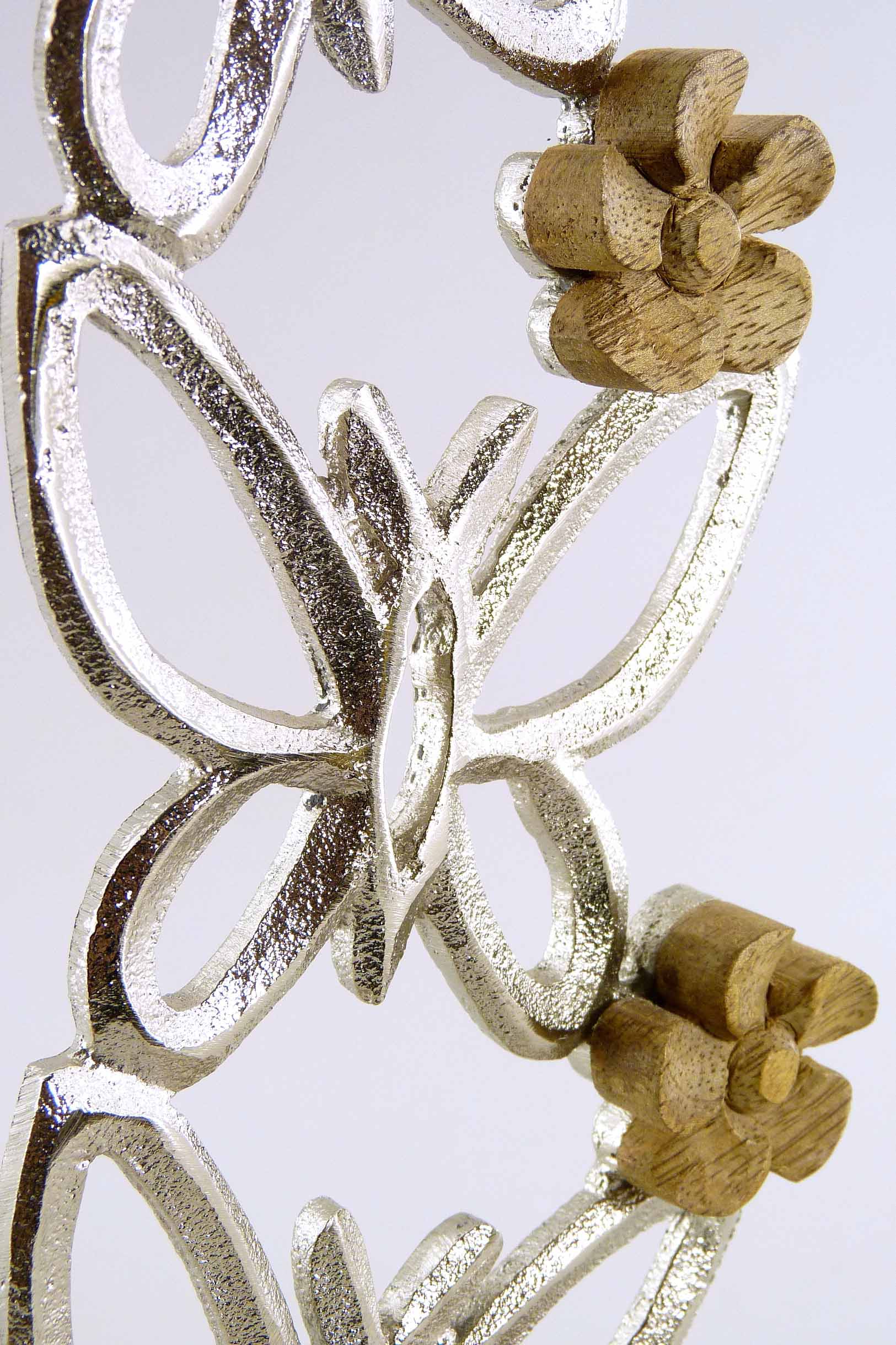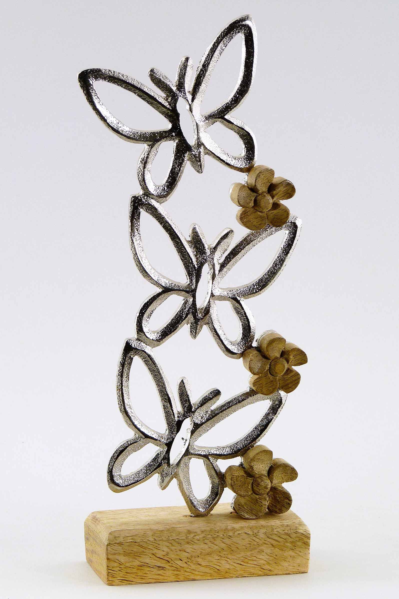 Alu/Mangoholz-Deko ''Schmetterling x3'' natur-silber H27 B12cm