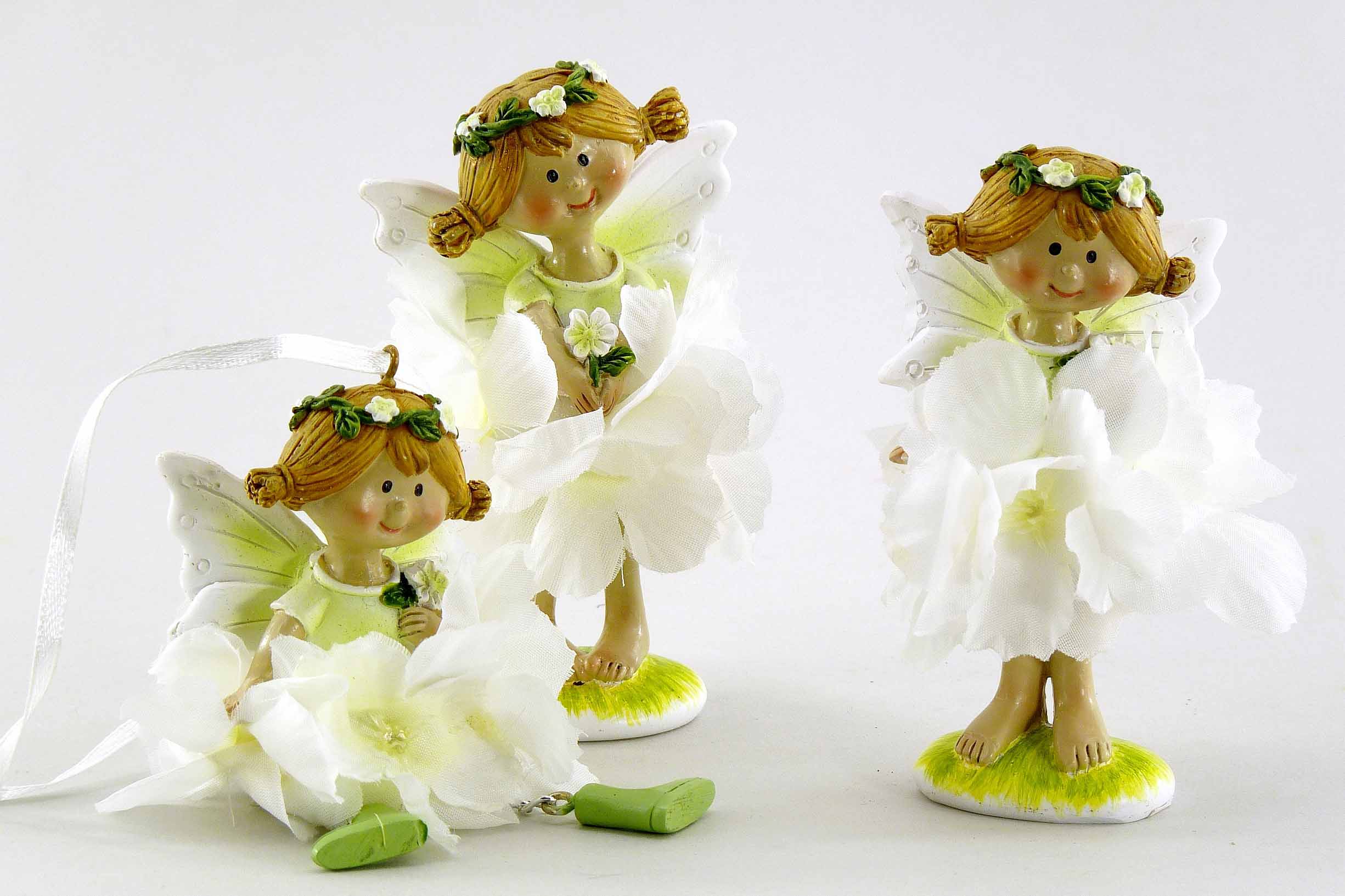 Poly/Seidenblumen-Elfe weiß-grün sort. H9,5cm