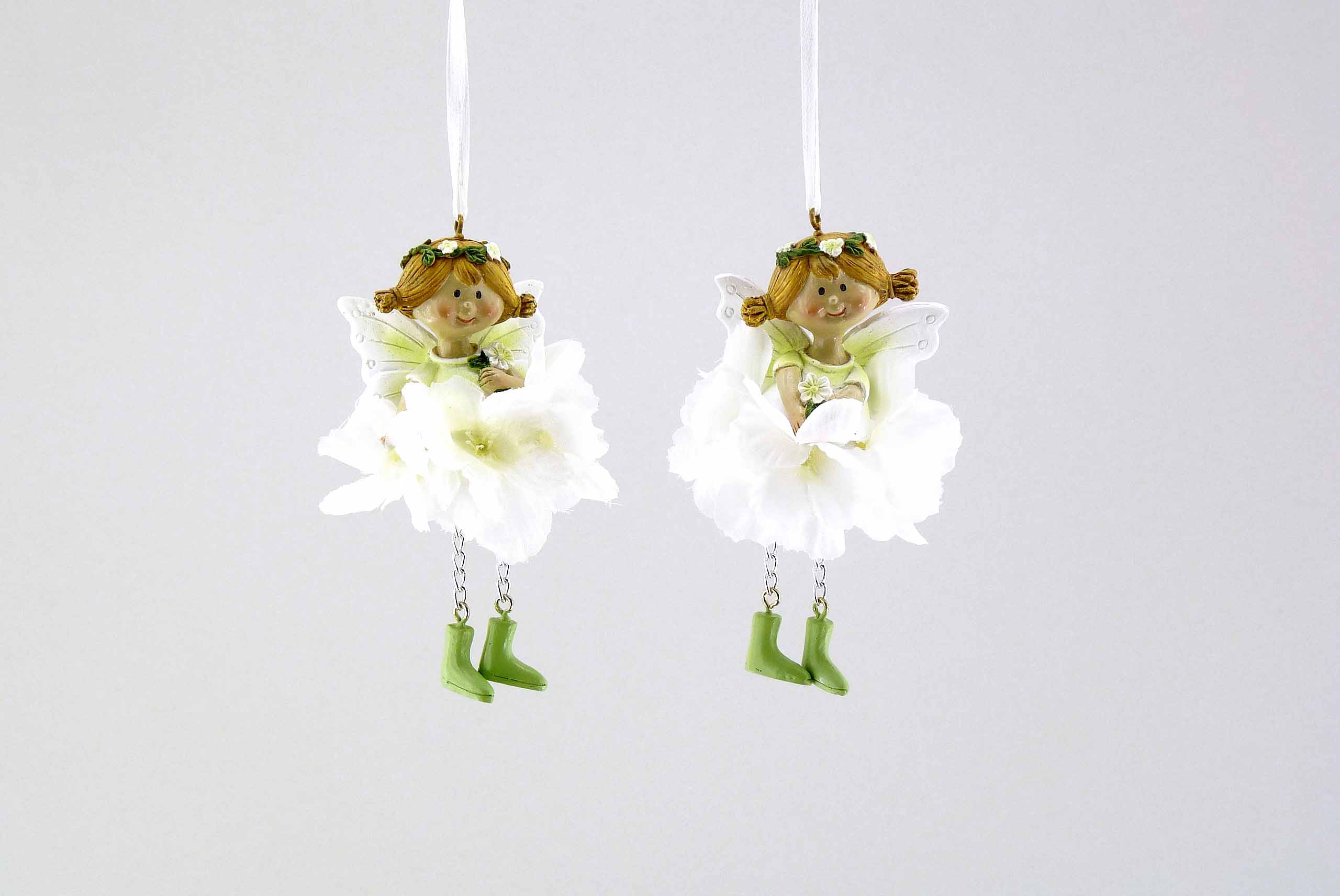 Poly/Seidenblumen-Elfe hgd. weiß-grün sort. H10cm
