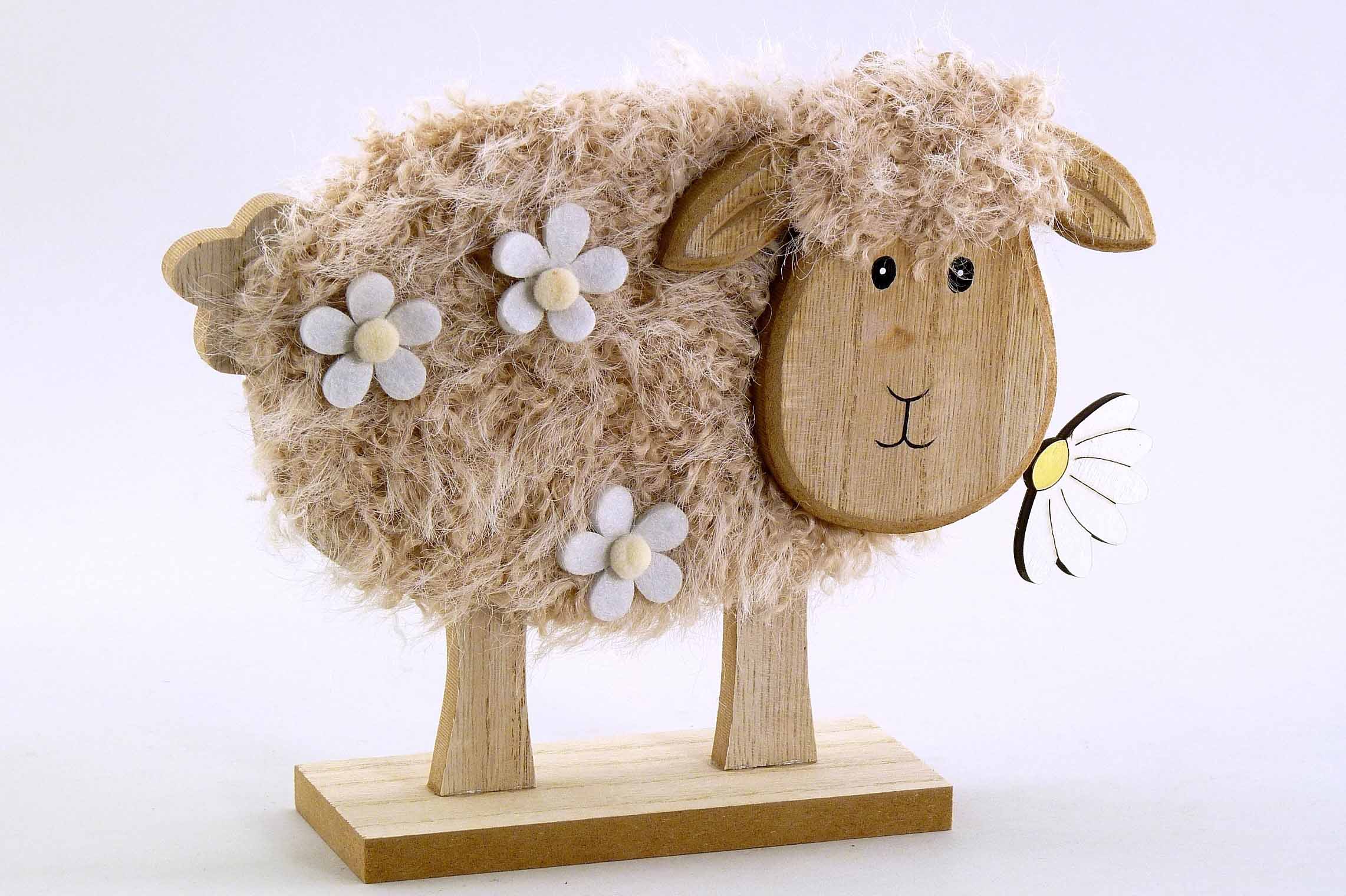 Holz/Stoff-Schaf ''Blume'' natur-creme/braun sort. H15 B20cm
