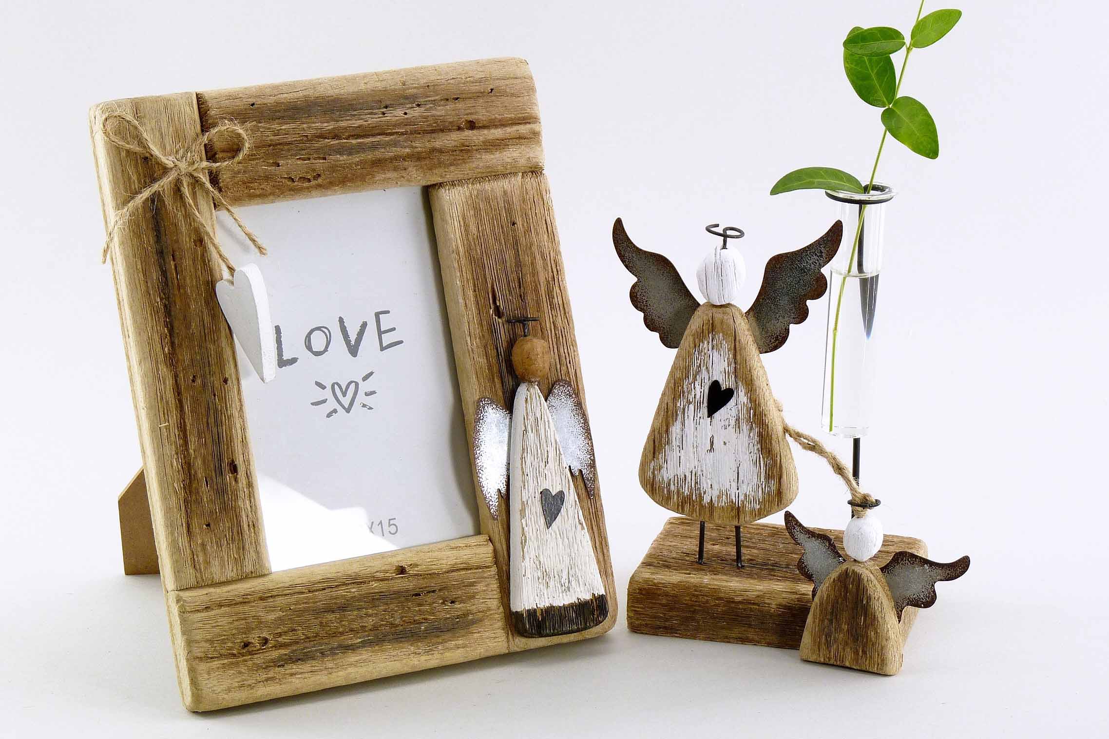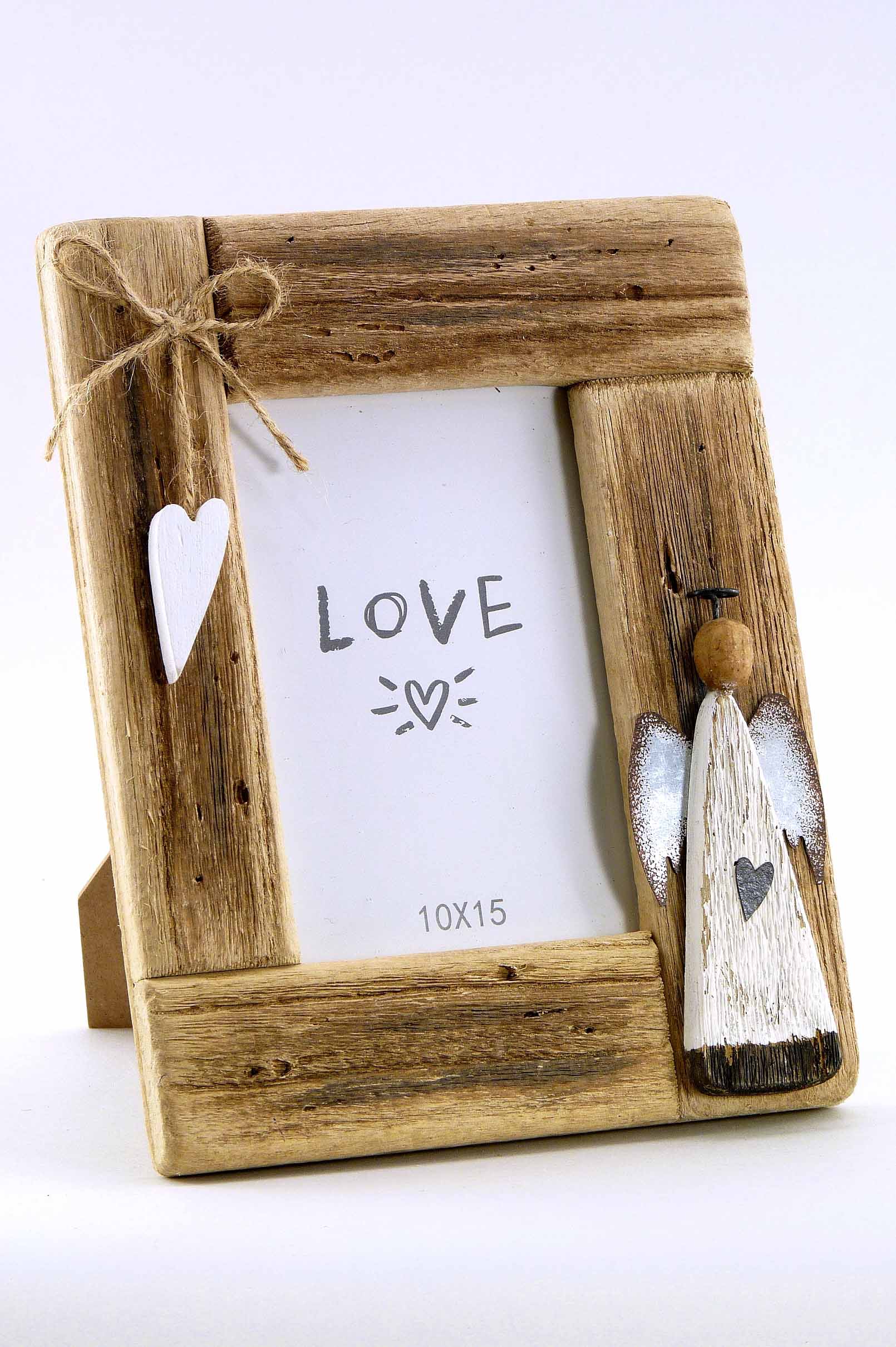 Schwemmholz-Fotorahmen +Engel natur-weiß (Foto: 15x10) H23 B18cm