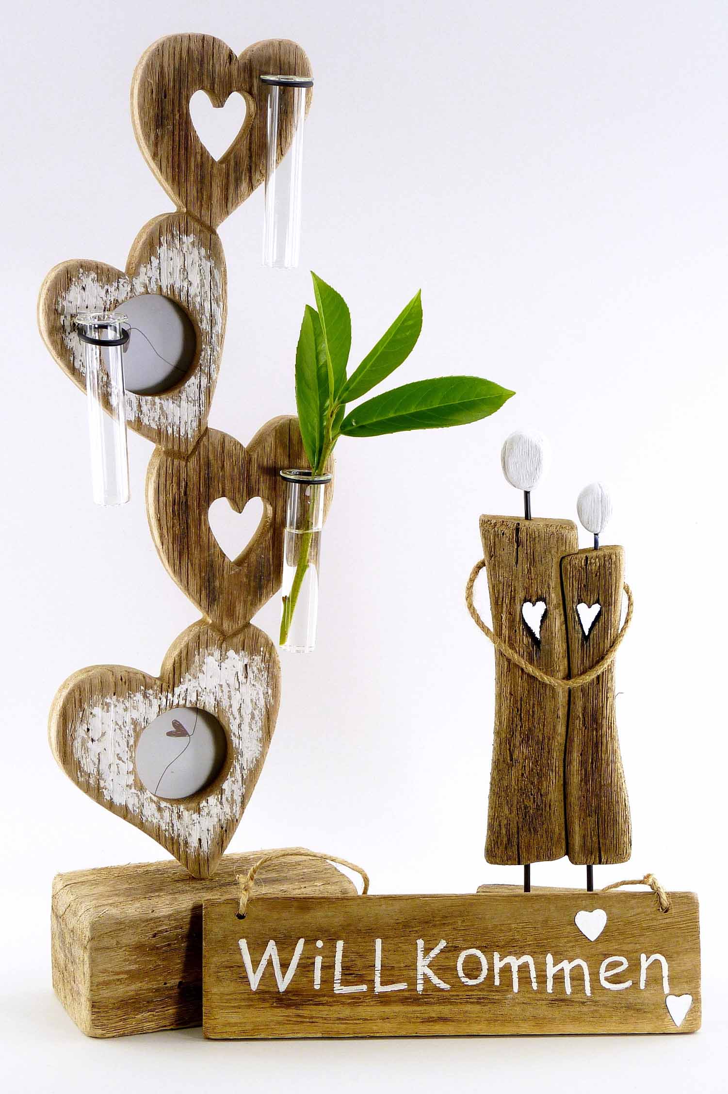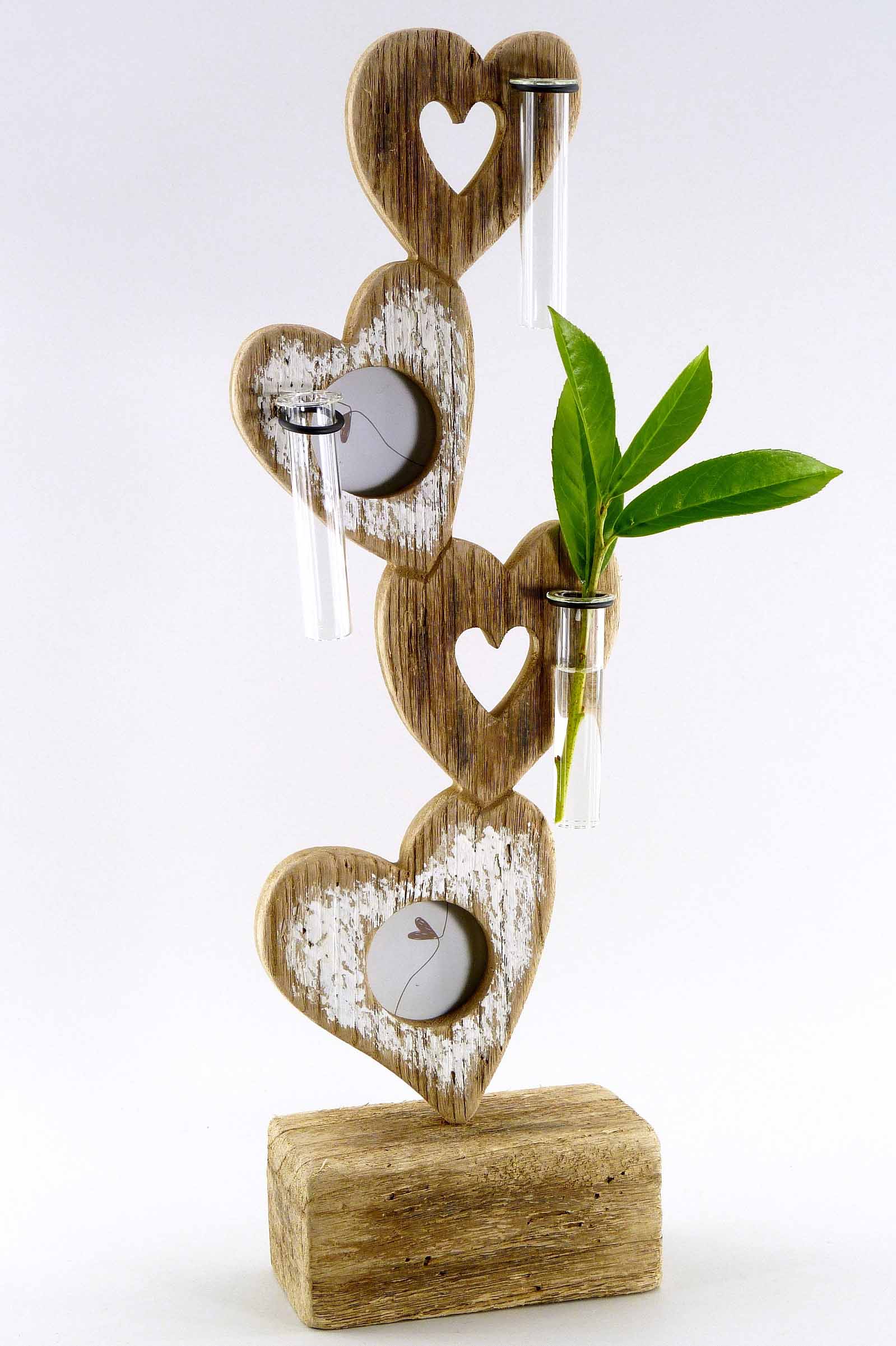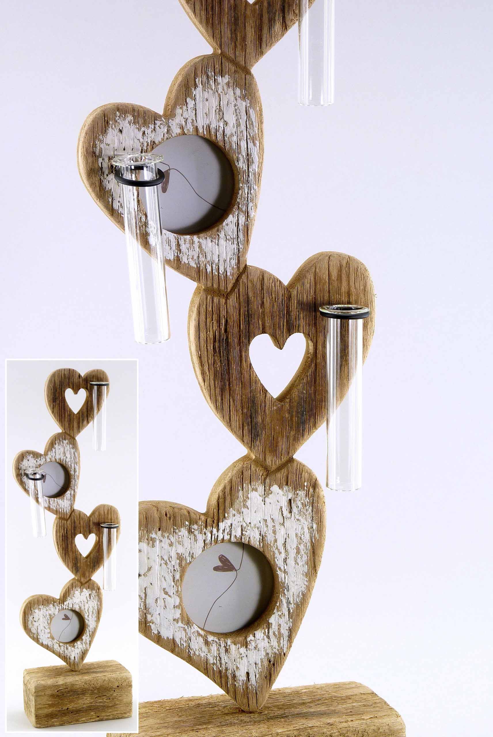 Schwemmholz-Herzsäule +Fotos +Glasvasen natur-weiß H53 B16cm