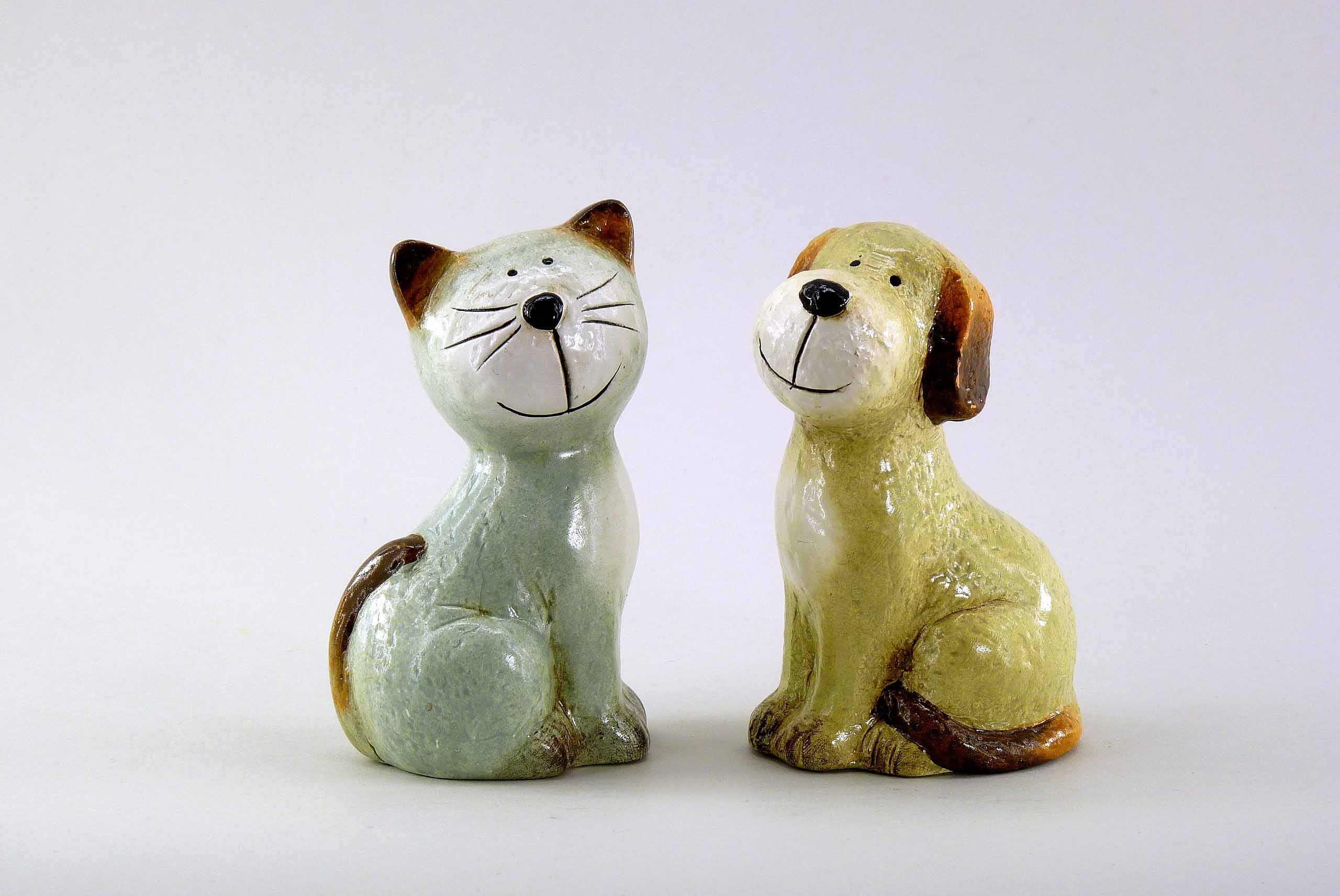 Keramik-Hund/Katze blau-grün sort. H12-12,5cm