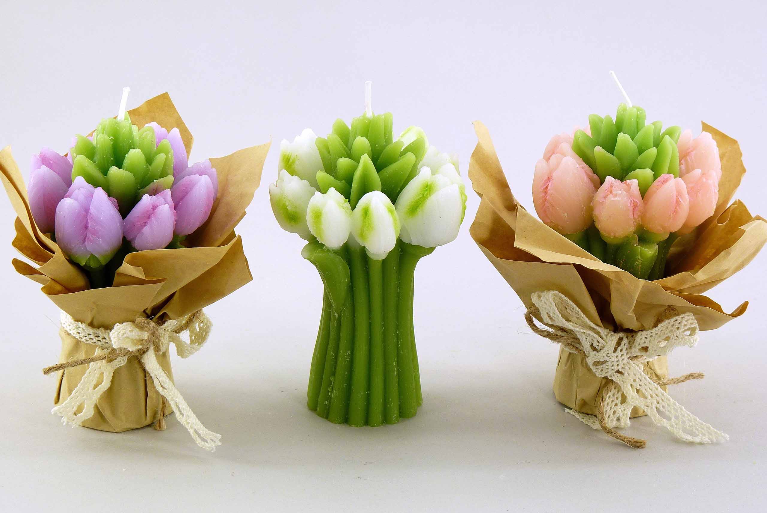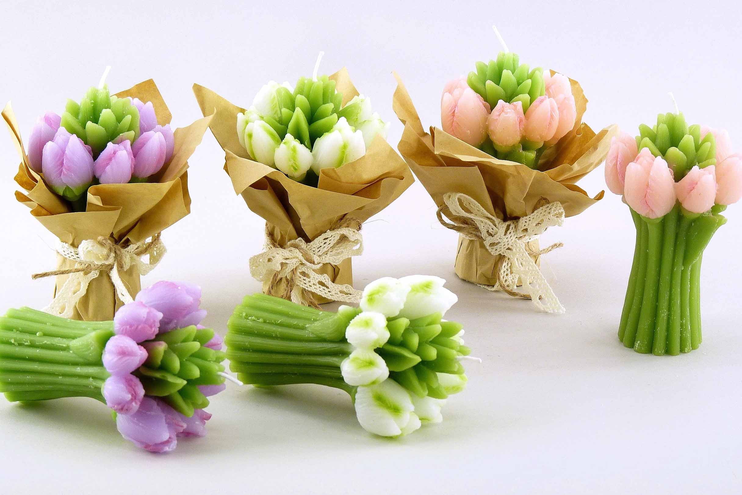 Kerze ''Tulpenstrauß'' rosa/lila/weiß sort. H12 B8,5cm