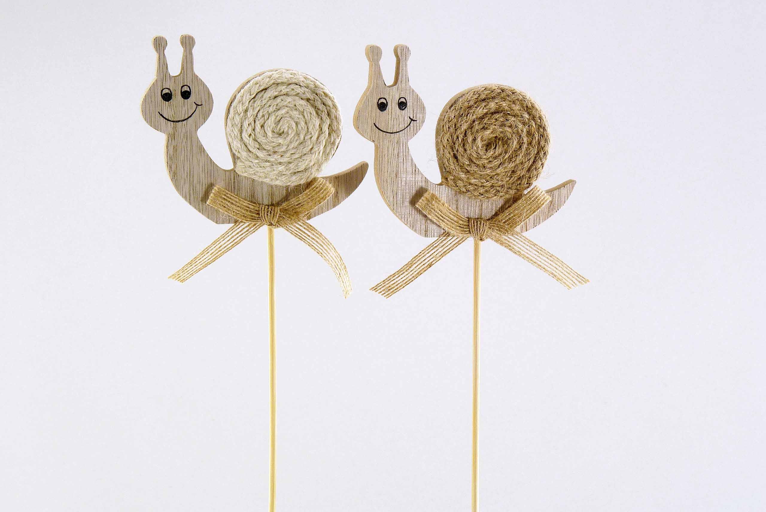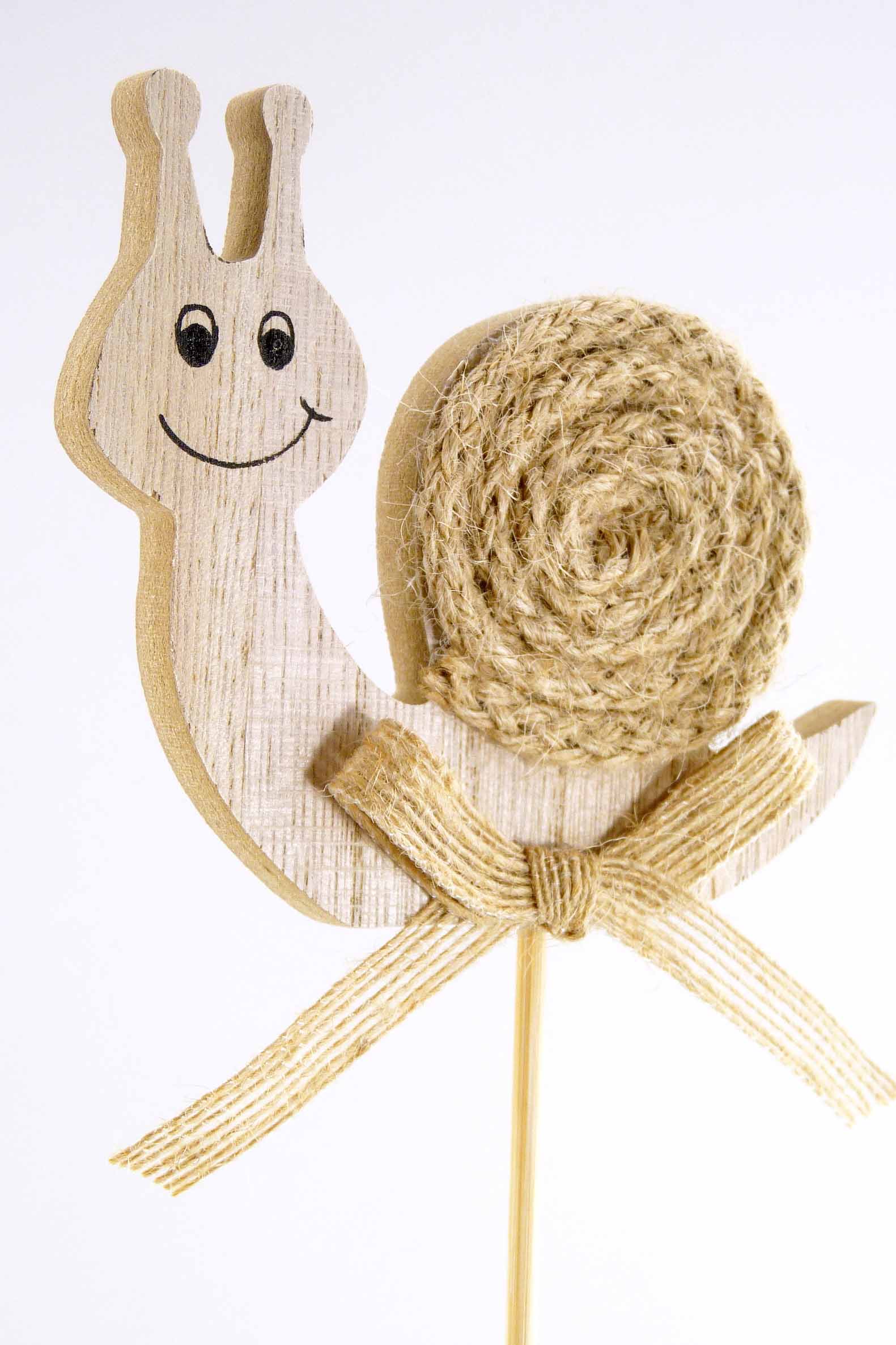 Holz/Jute-Schnecke +Stick natur-creme/braun sort. H9 L38 B10cm