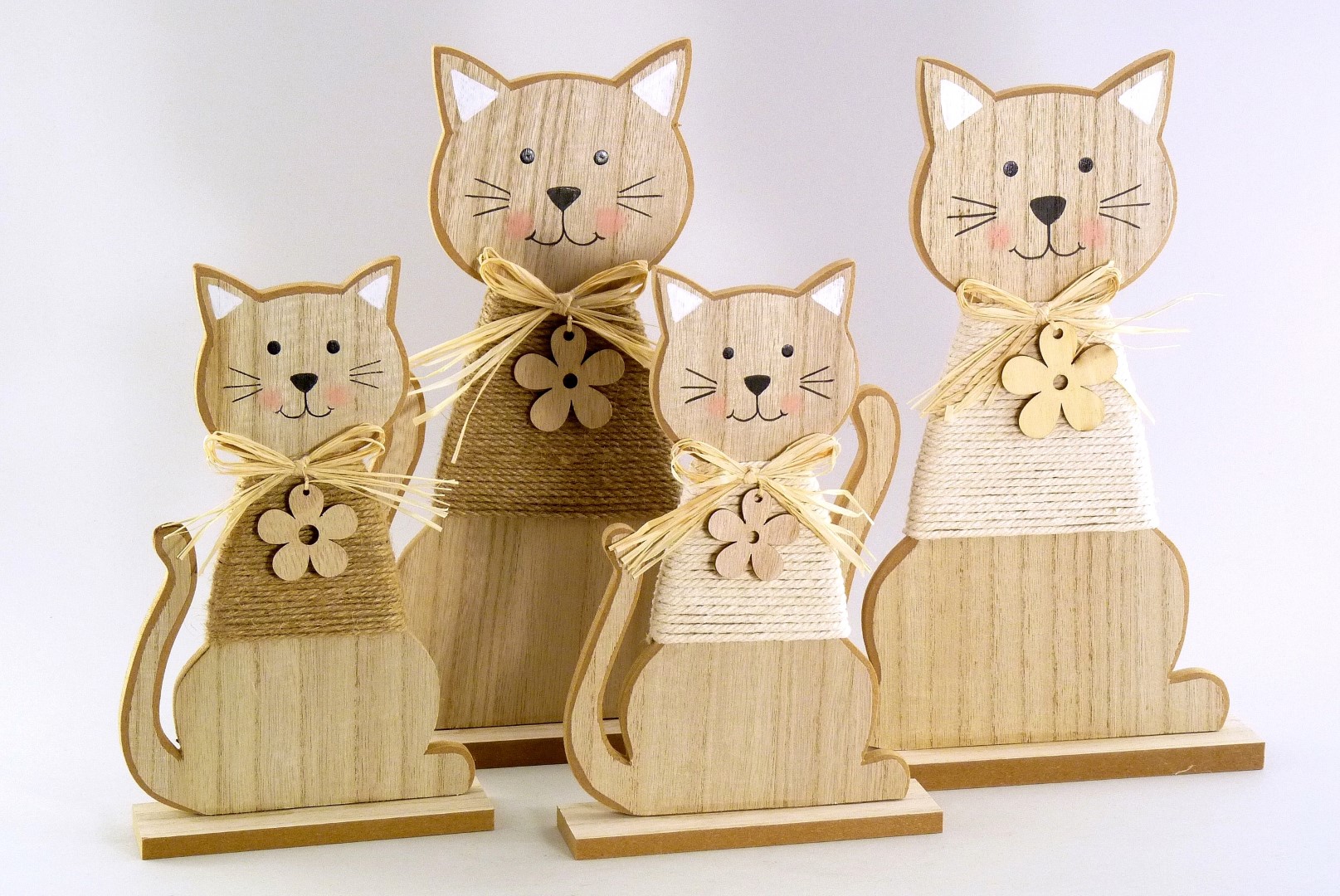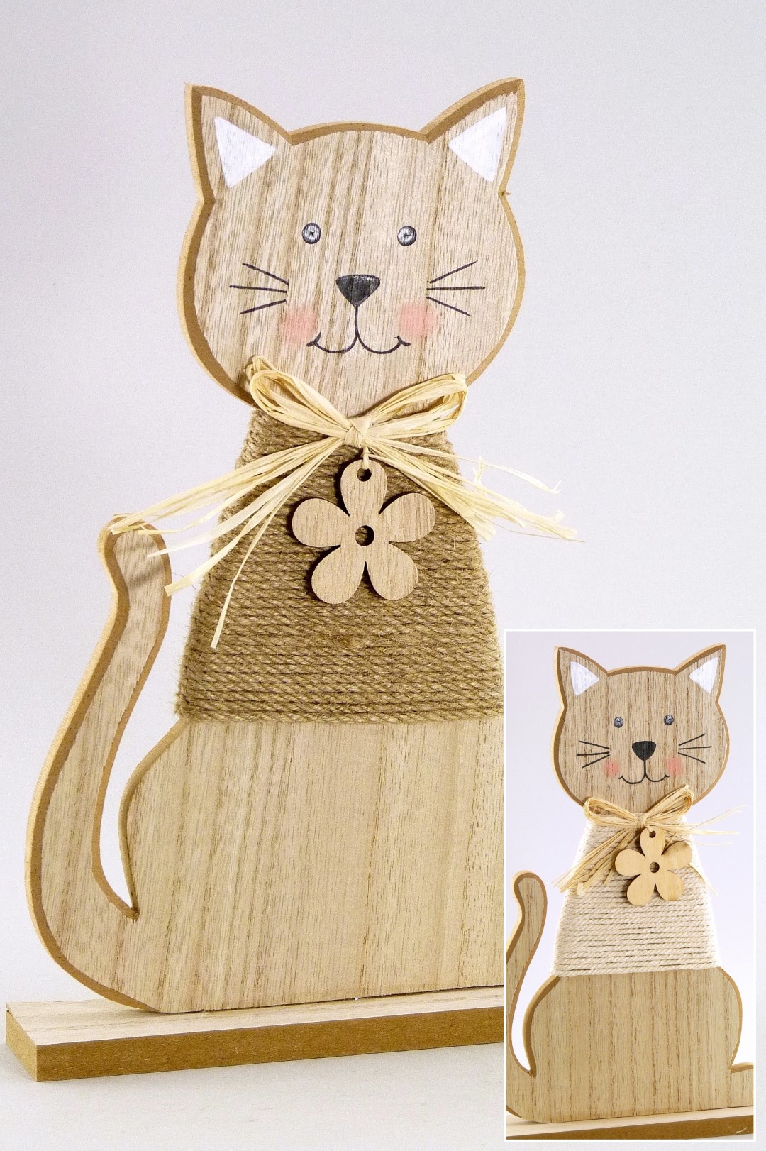 Holz/Jute-Katze creme/braun-natur sort. H30,5 B20cm