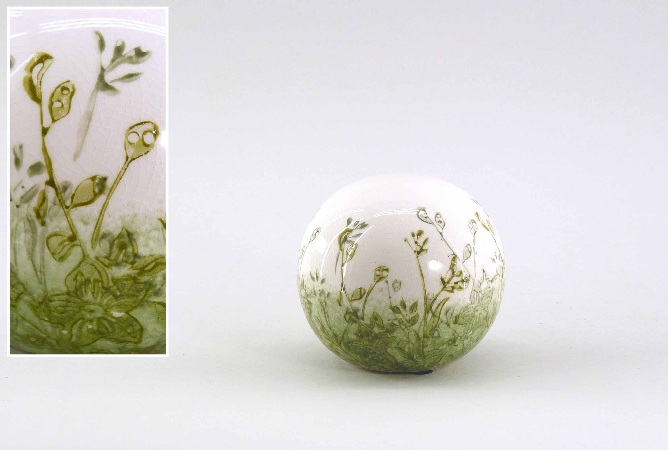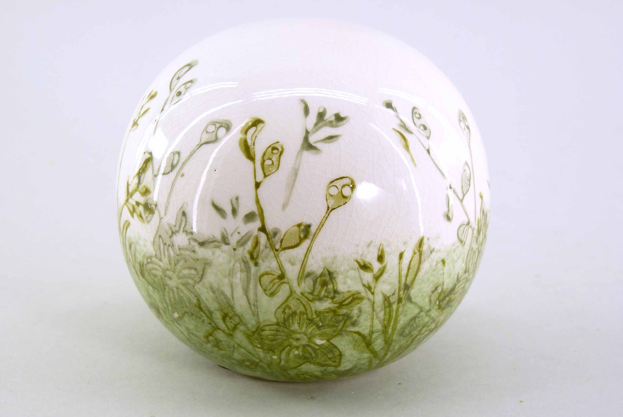 Steingut-Kugel ''Wiesen-Dekor'' creme-grün ø9,5 H8,5cm