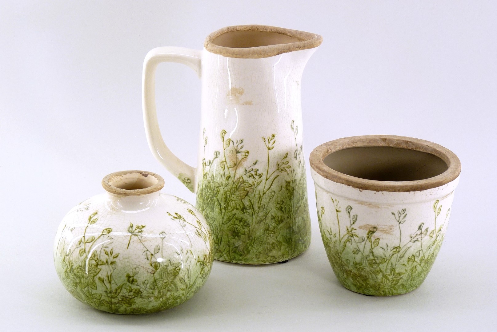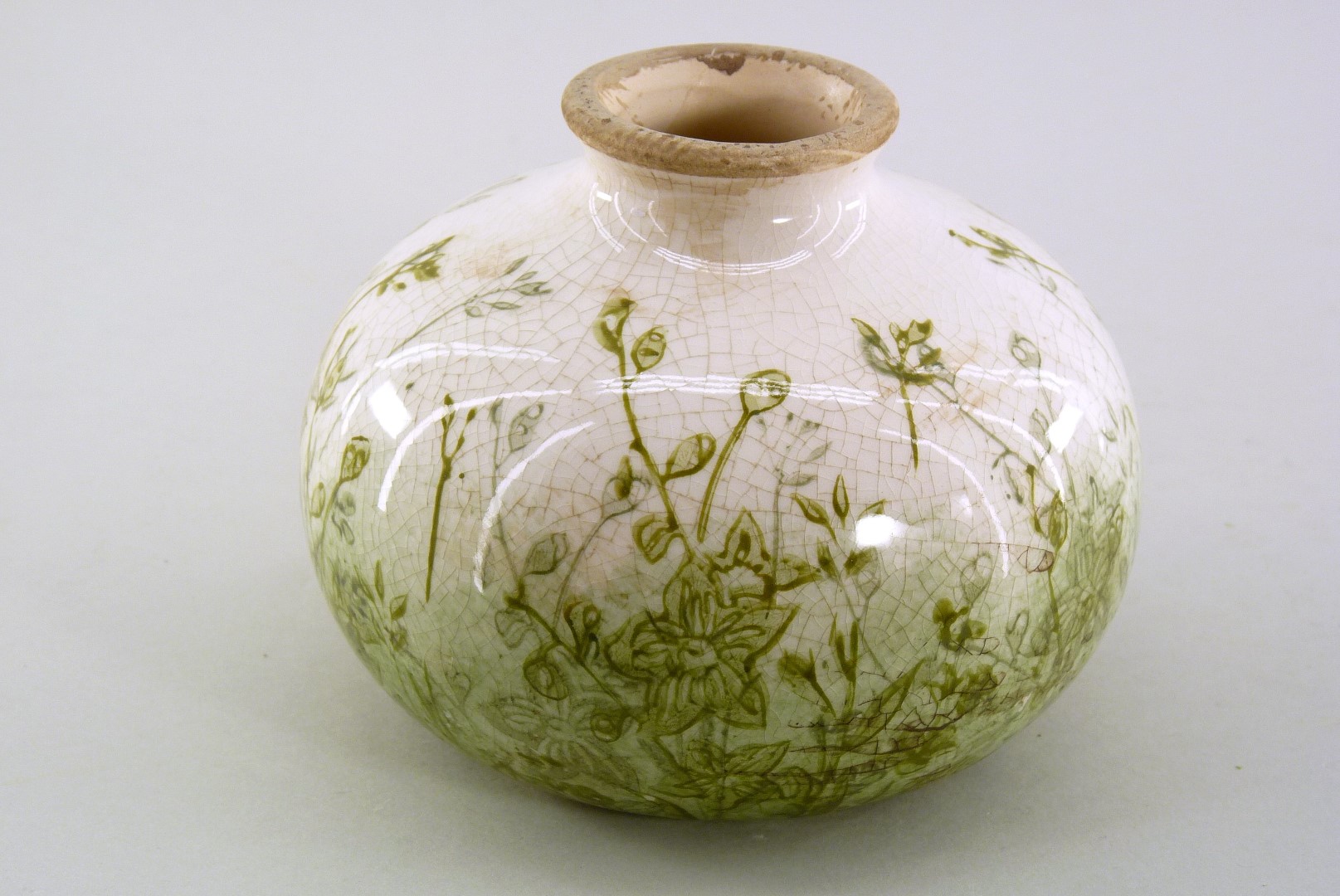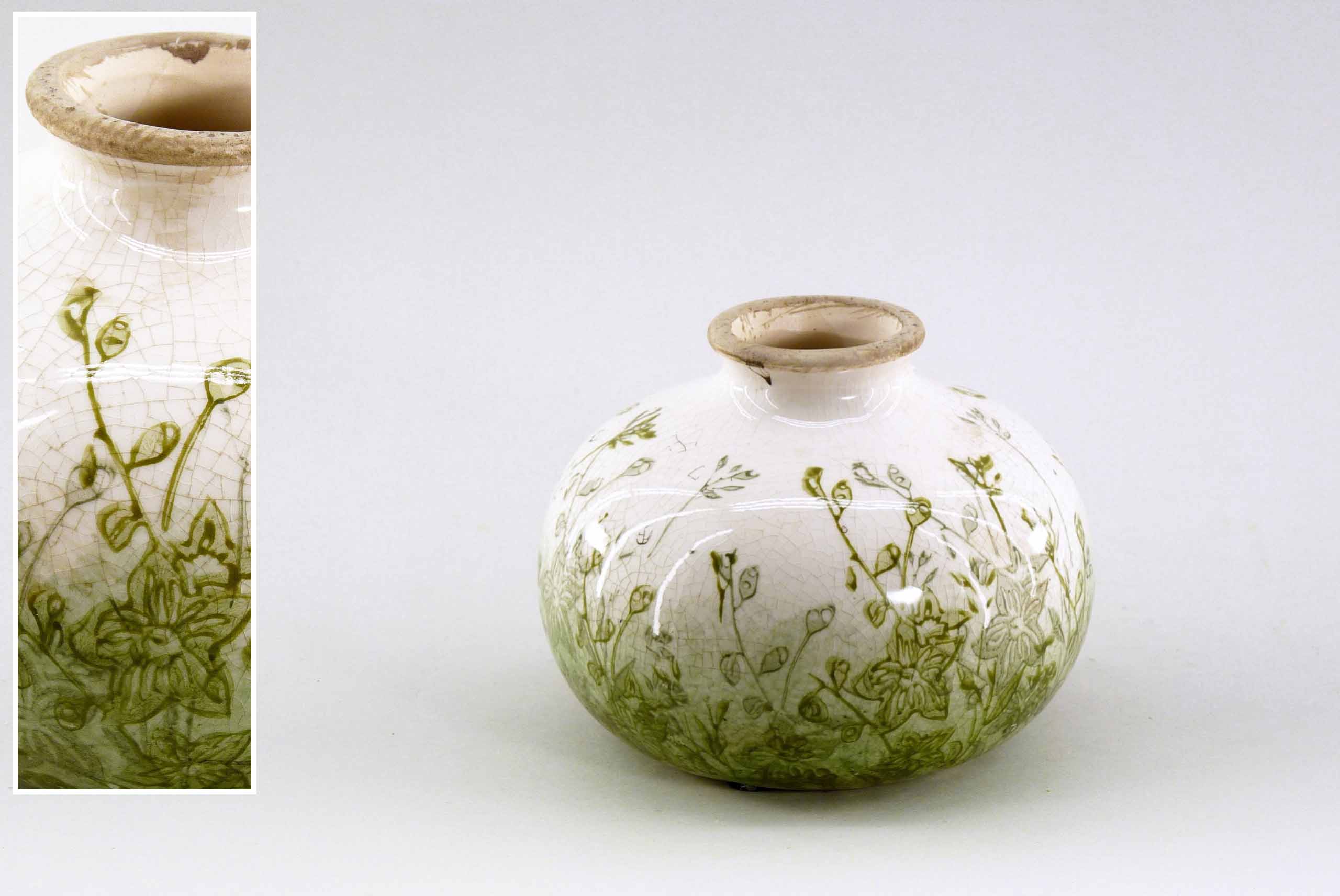 Steingut-Vase ''Wiesen-Dekor'' creme-grün ø13 H10cm