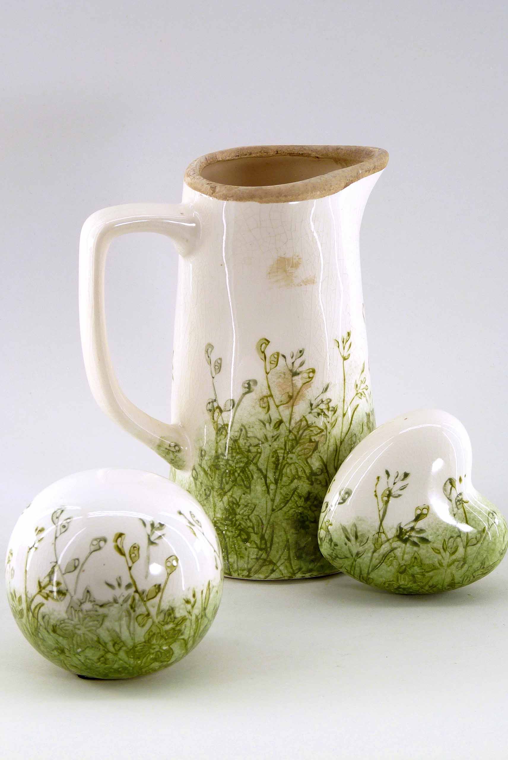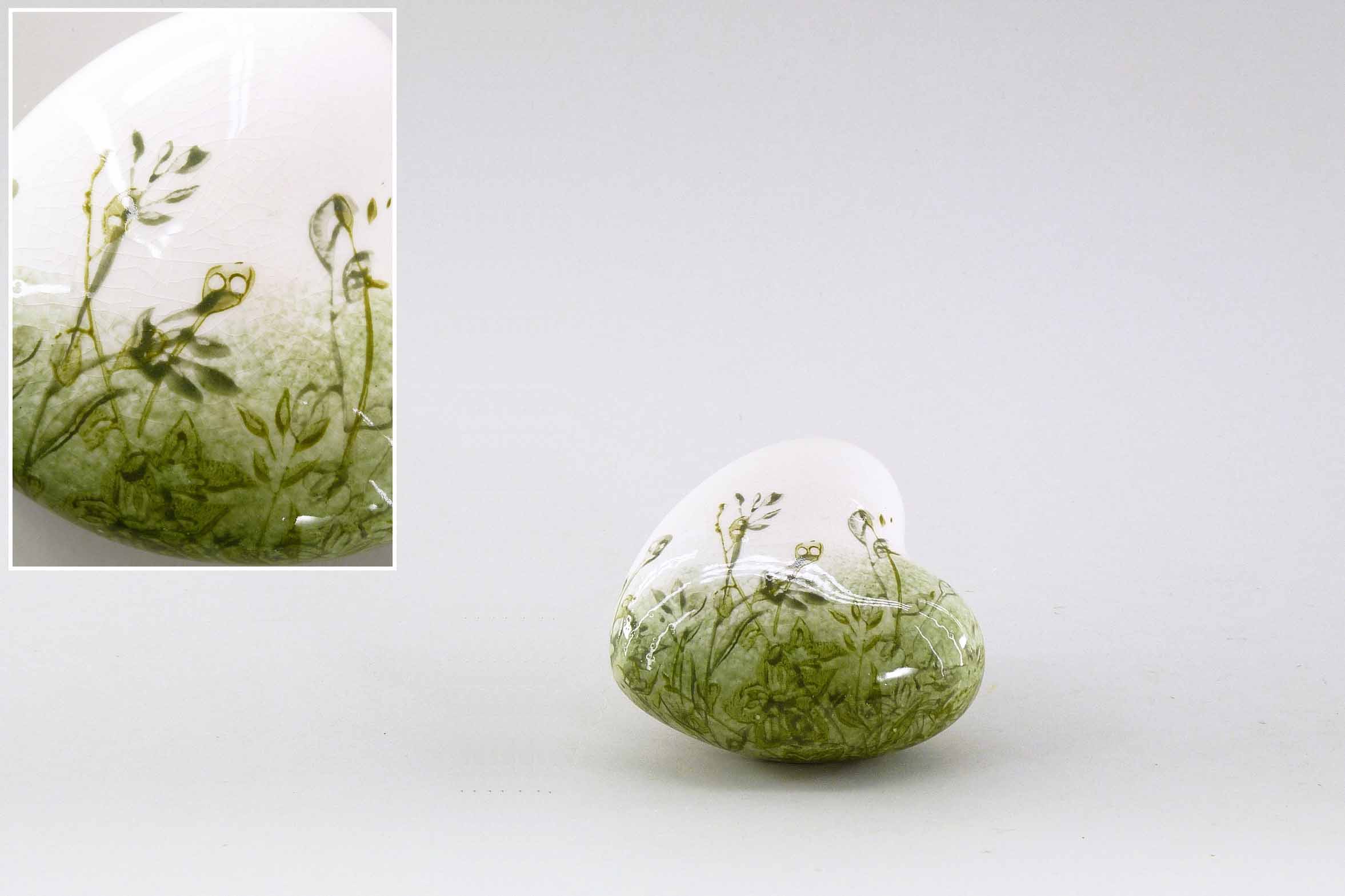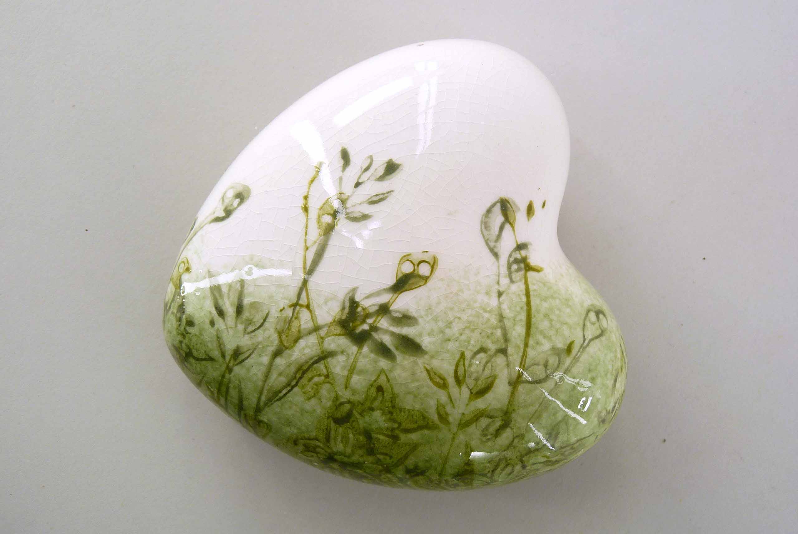 Steingut-Herz ''Wiesen-Dekor'' creme-grün ø8,5 H4cm