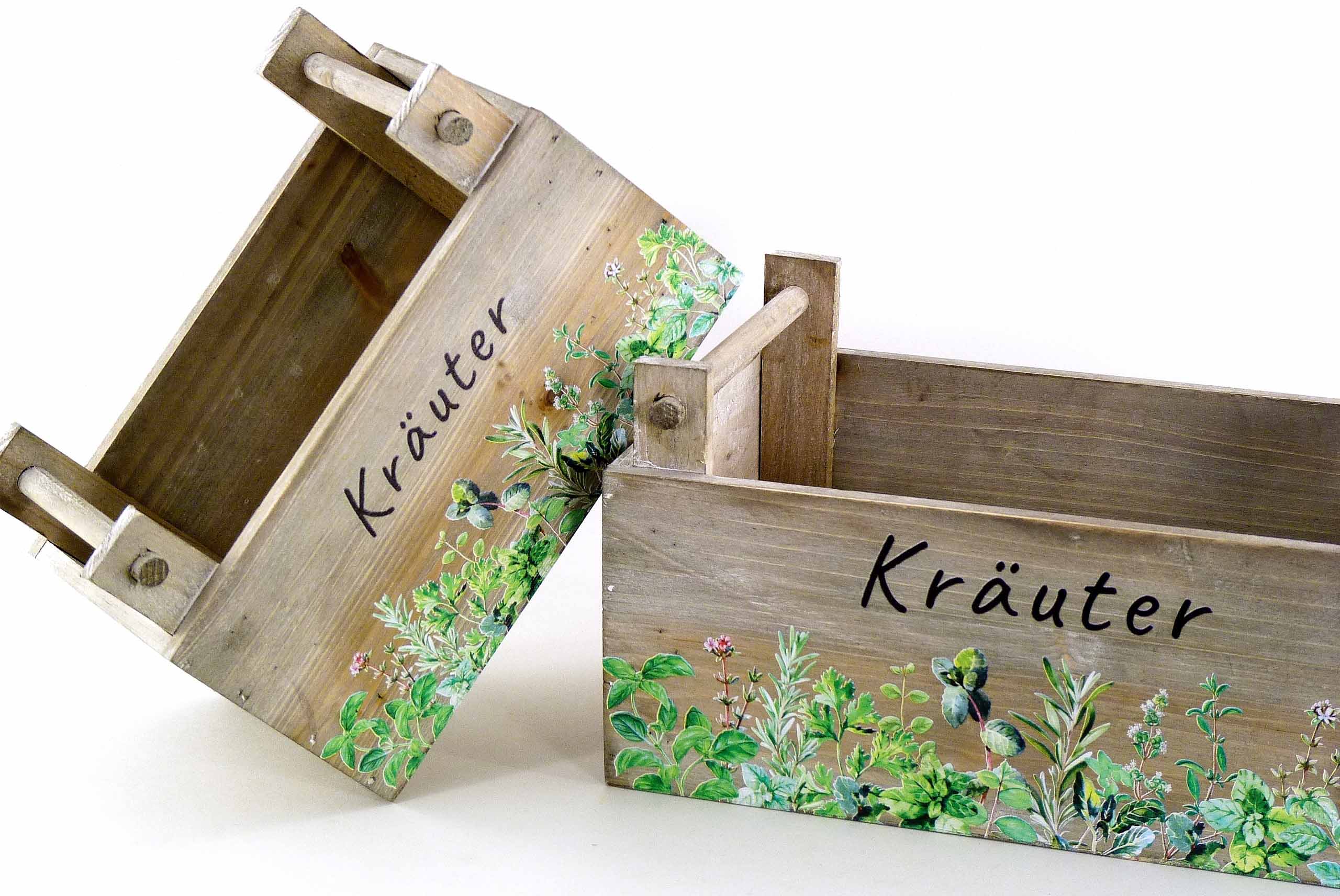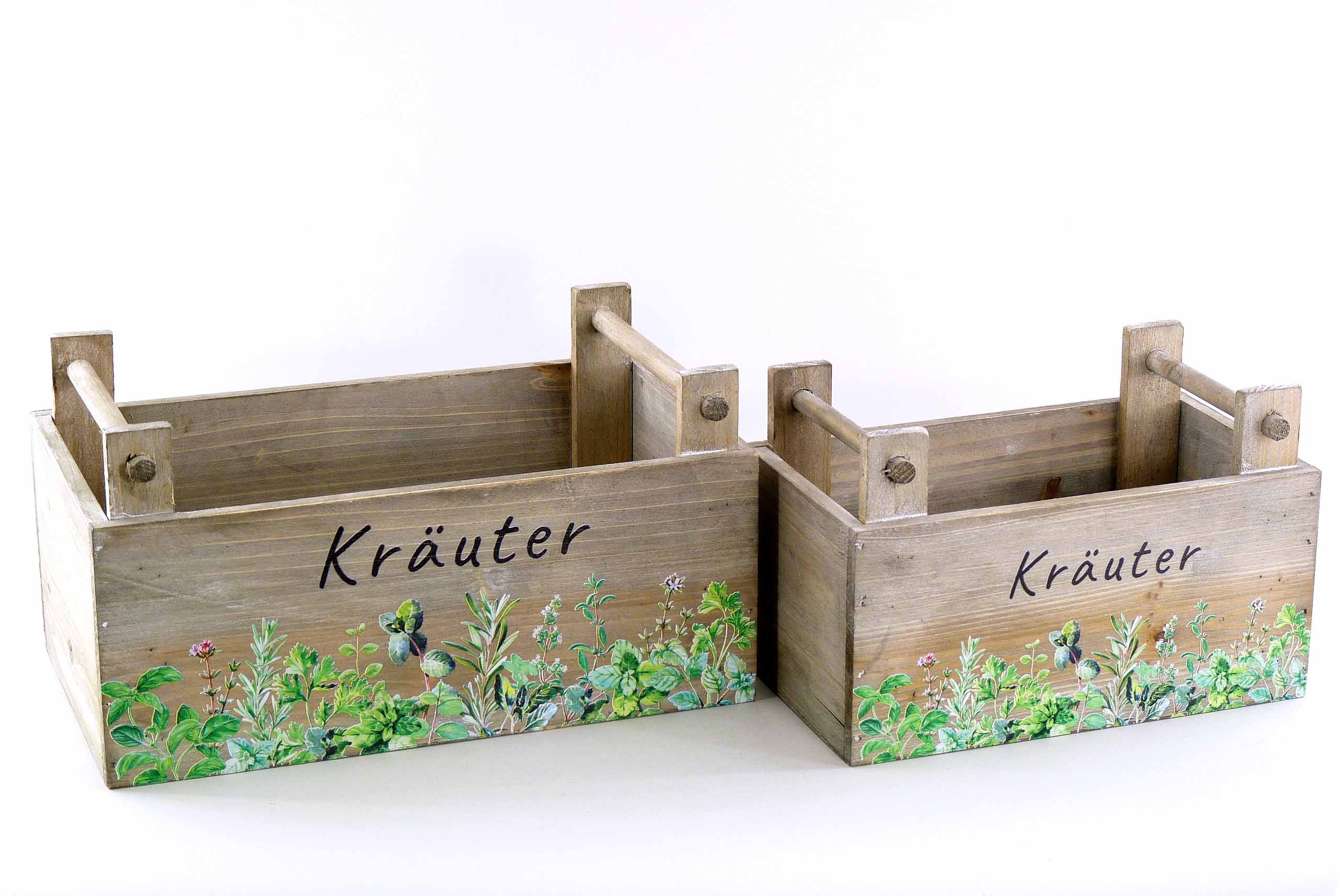 Holz-Kiste ''Kräuter'' S/2 grau-grün 23x13 H15, 30x17 H16cm