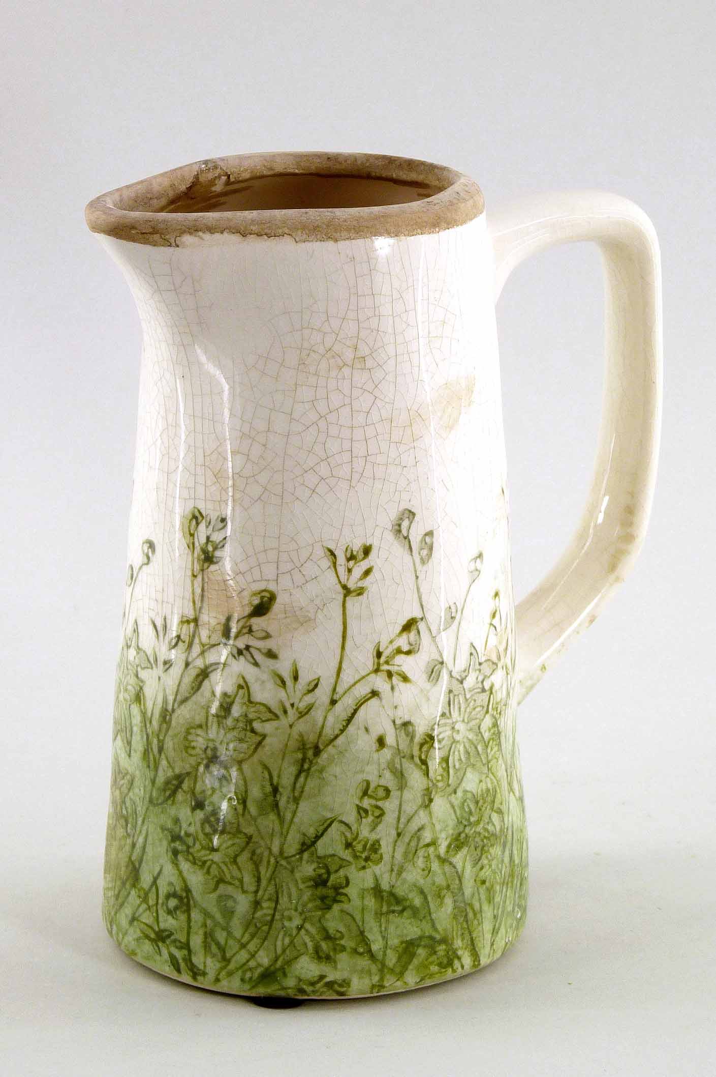 Steingut-Kanne ''Wiesen-Dekor'' creme-grün ø15,5 H19cm