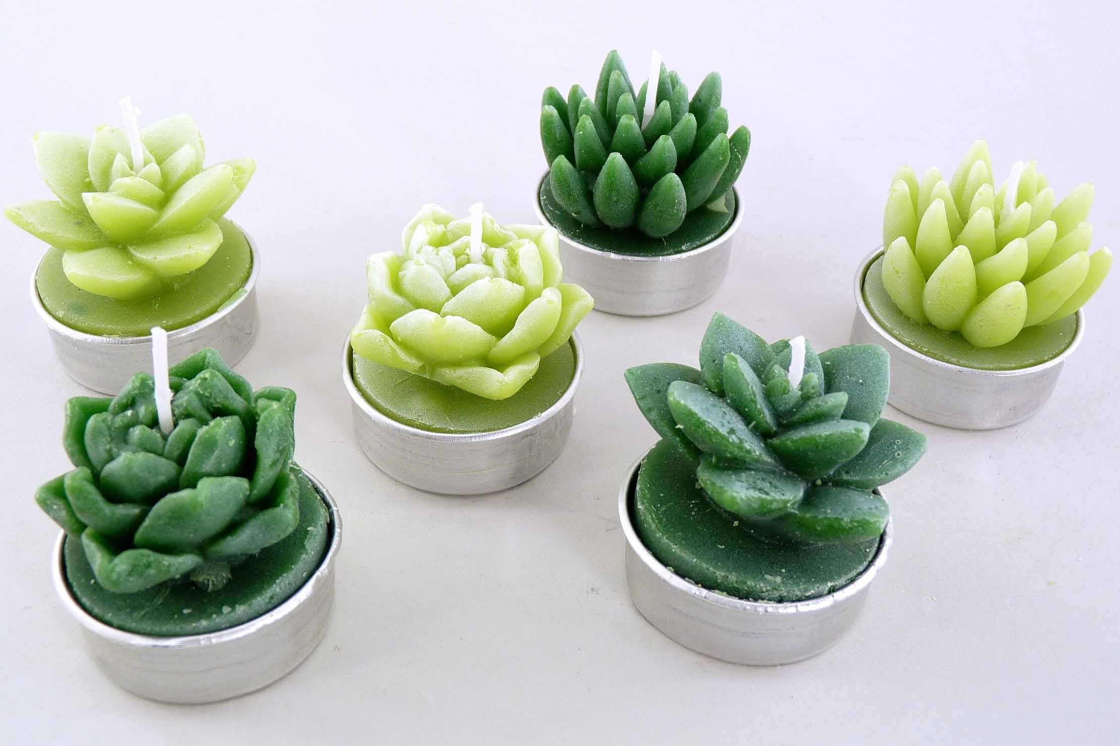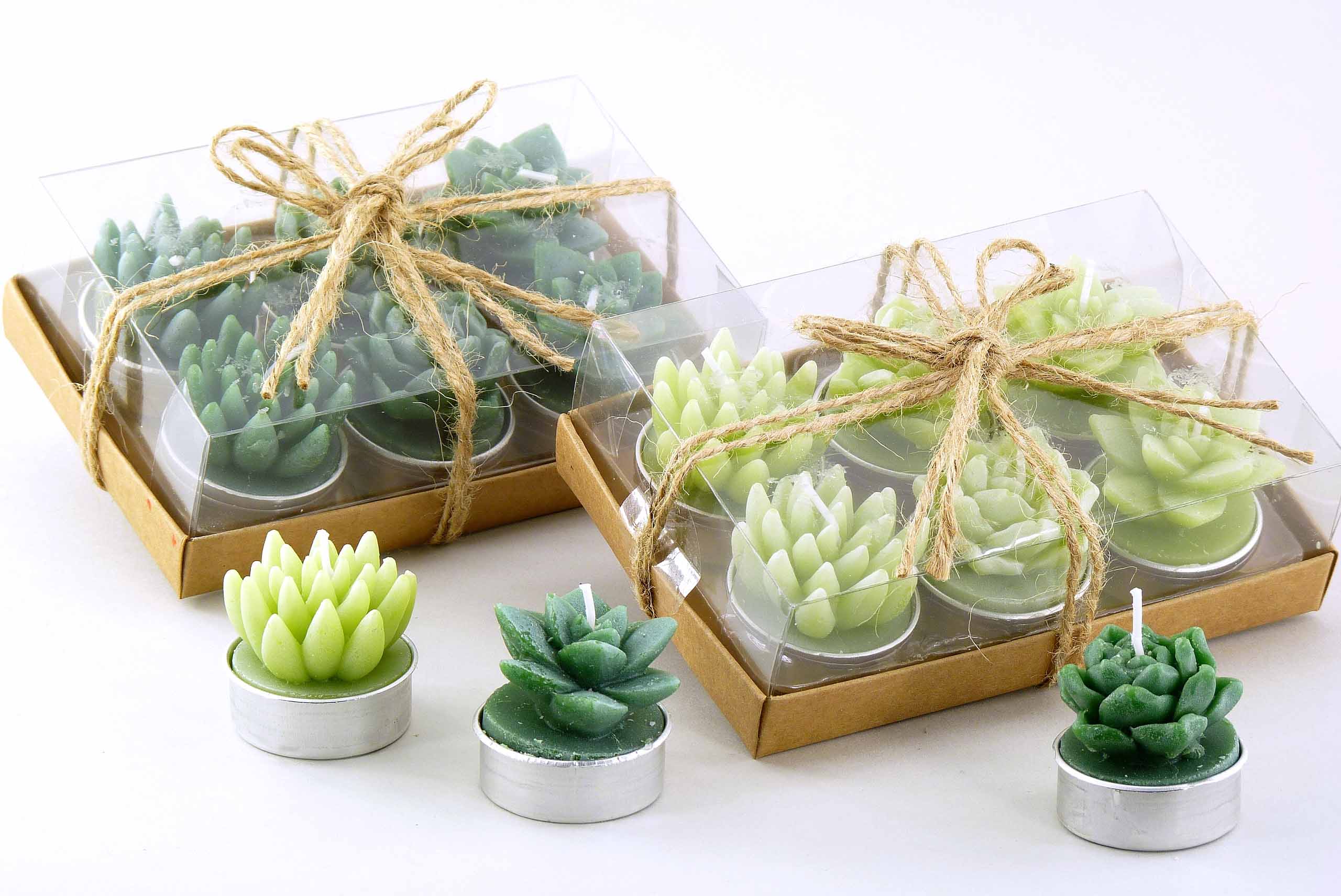 Teelicht ''Sukkulenten'' Box/6 grün sort. ø3,5 H4cm