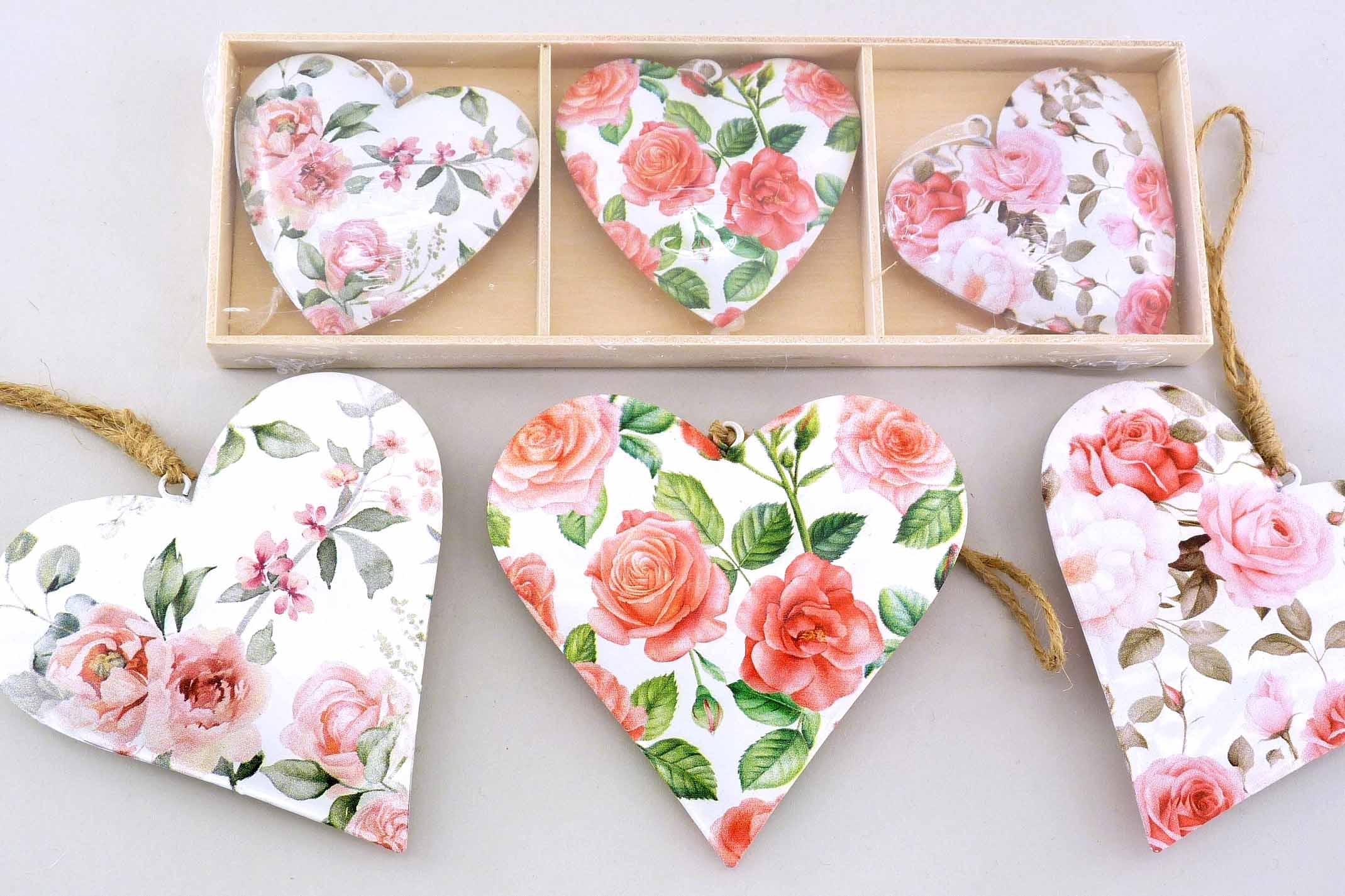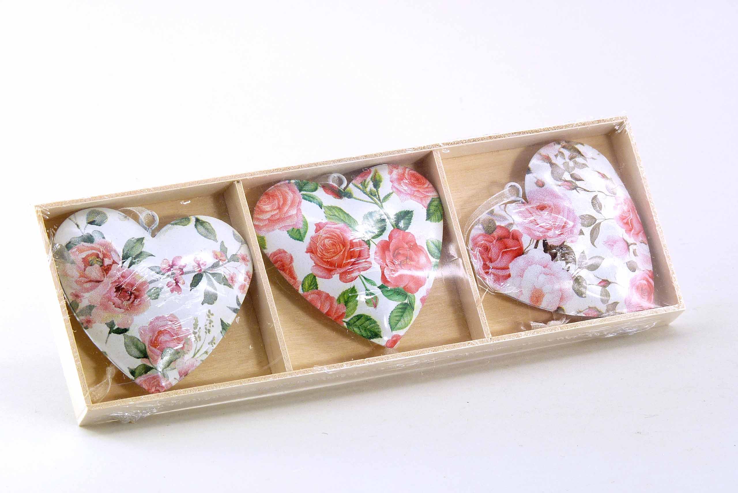 Metall-Herz ''Rosenmotiv'' Box/3 hgd. weiß-rosé 6,5x7cm