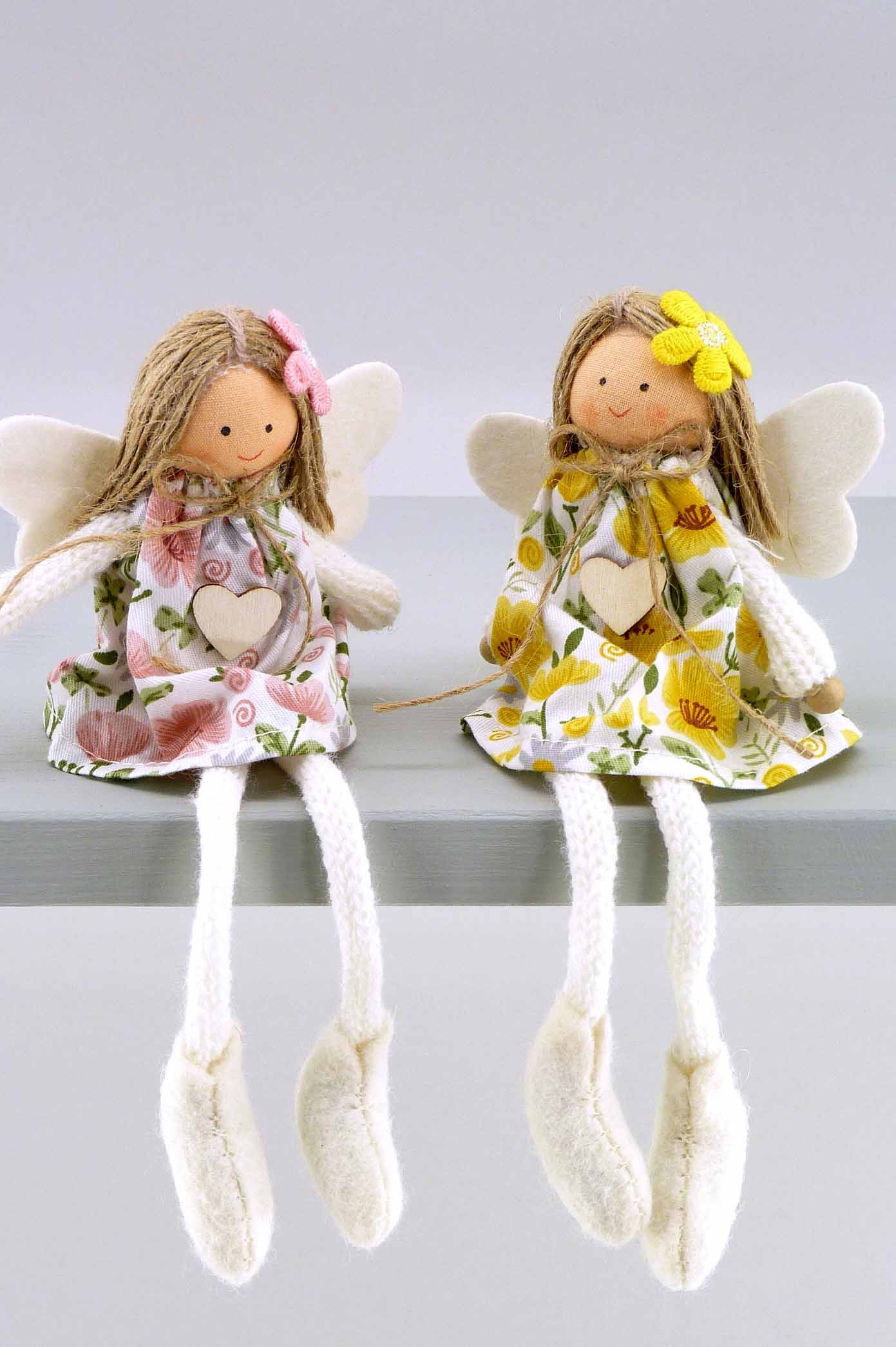 Stoff-Elfe ''Flowerpower'' KH rosa/gelb/grün sort. H7,5 L18cm
