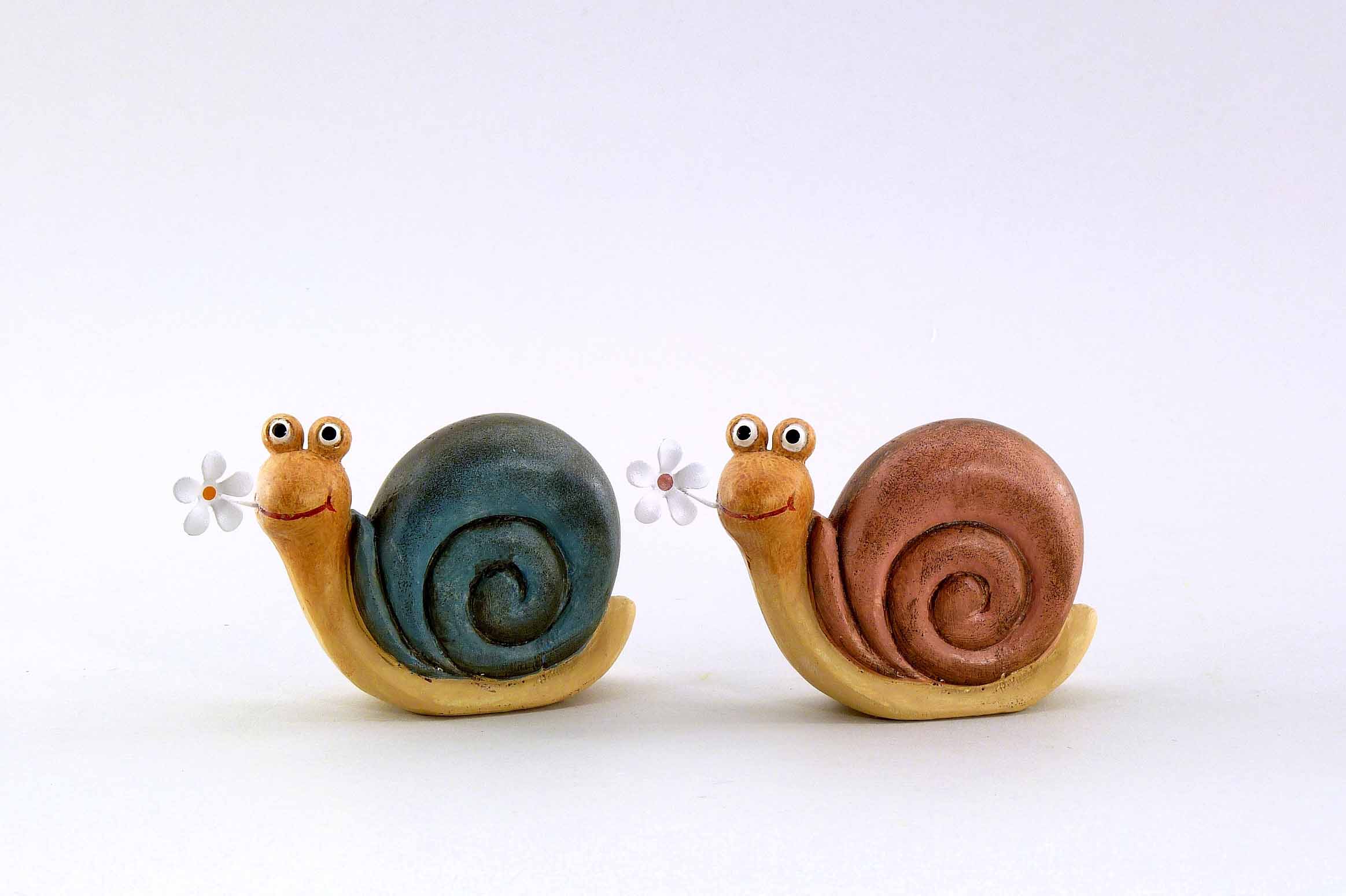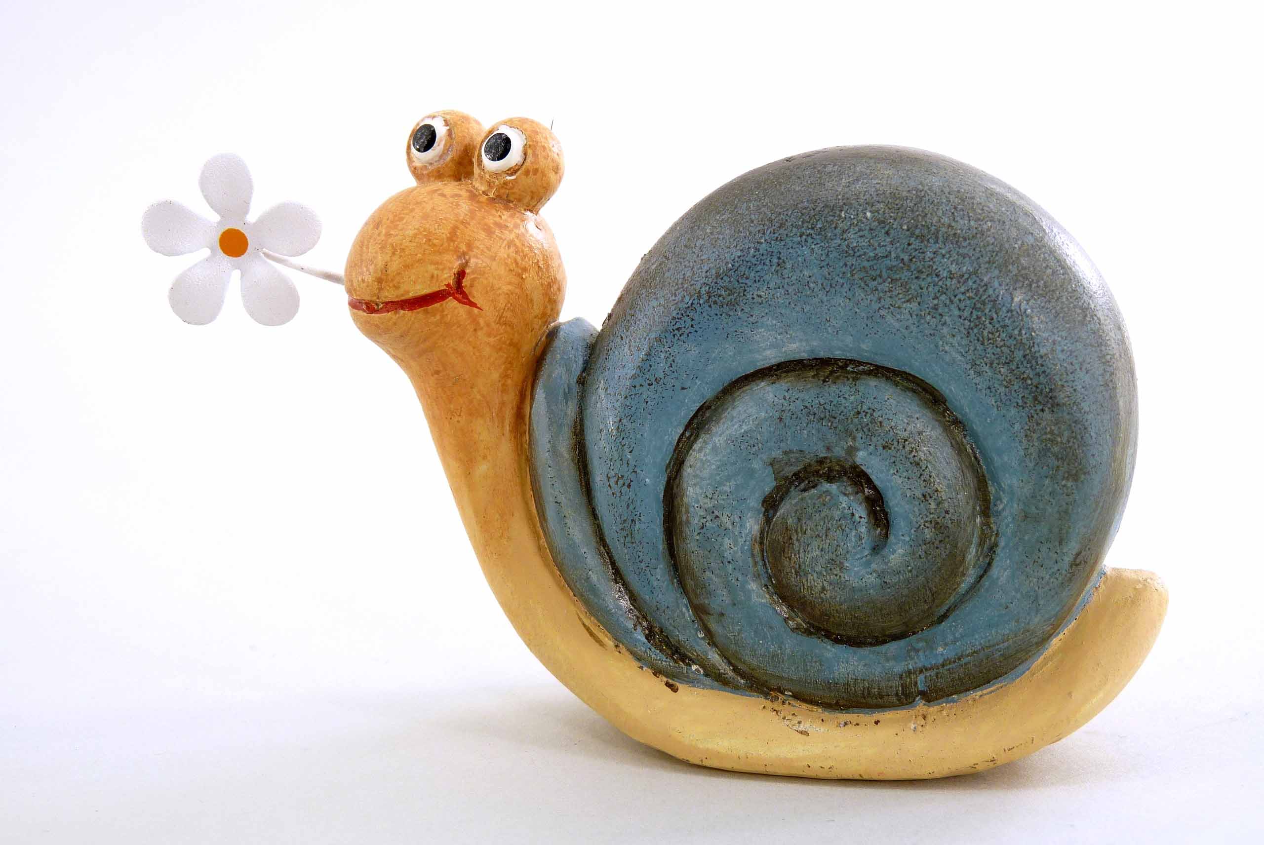 Poly-Schnecke mit Blume creme-rosé/blau sort. H6,5 B11cm