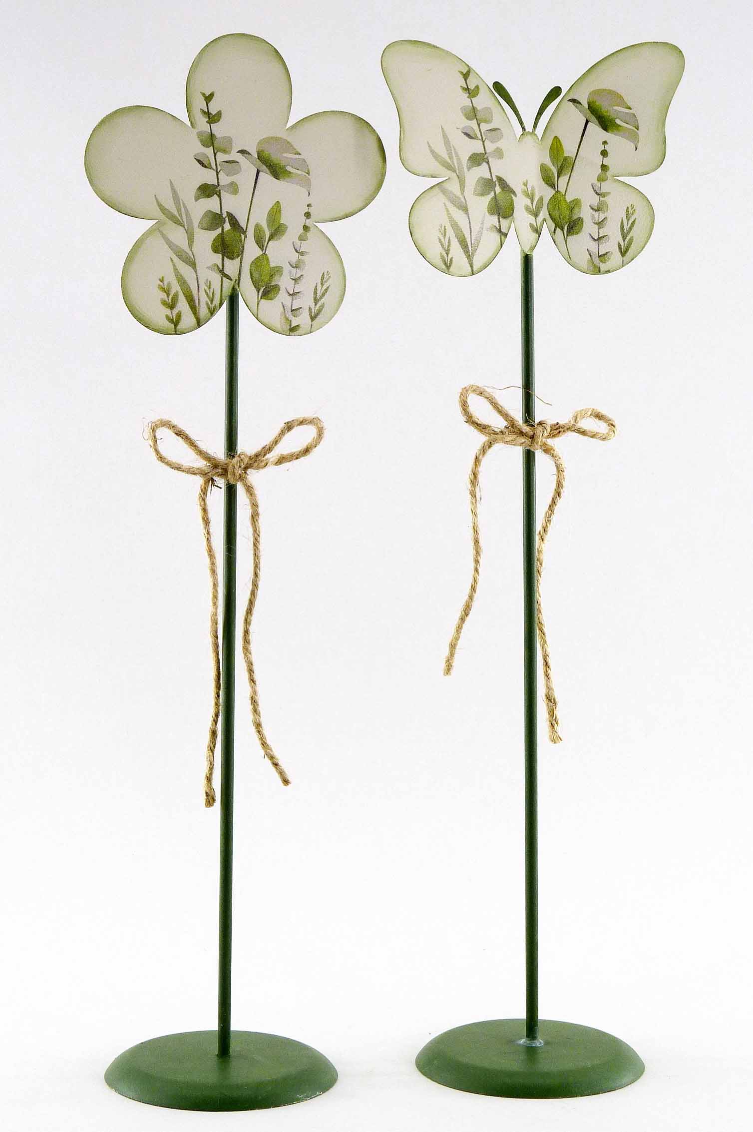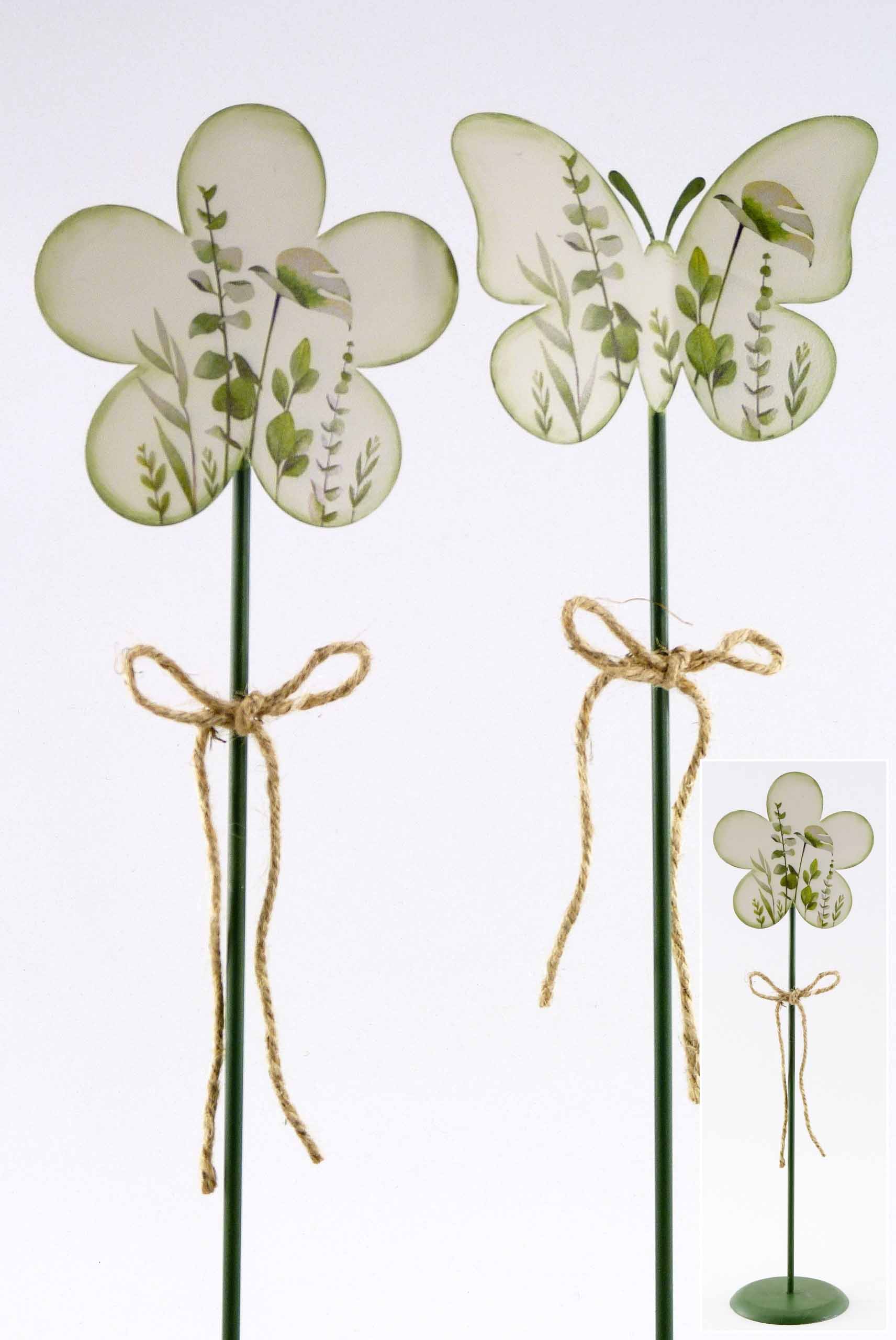 Metall-Schmetterling/Blume sth. weiß-grün sort. ø12/13 H23cm