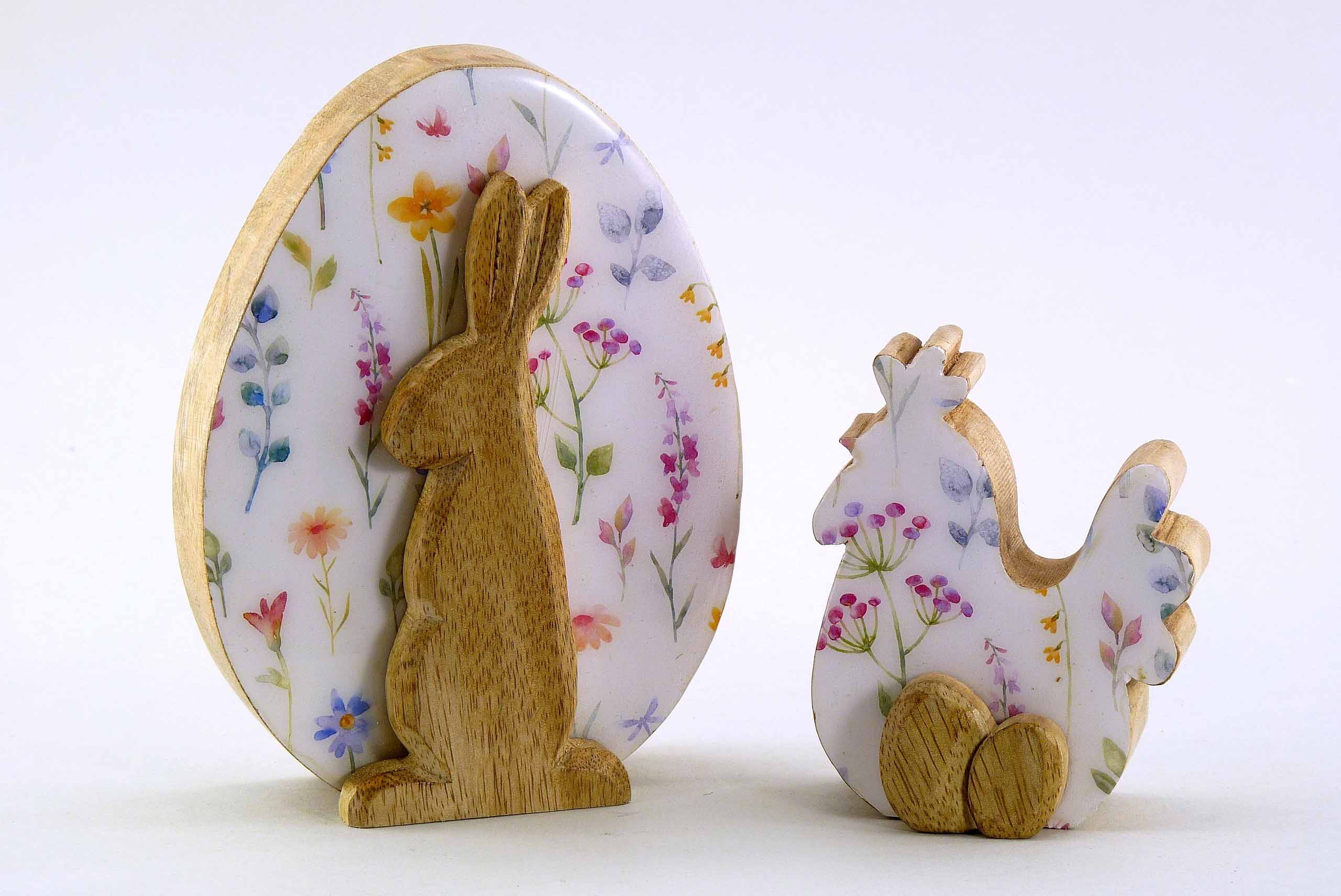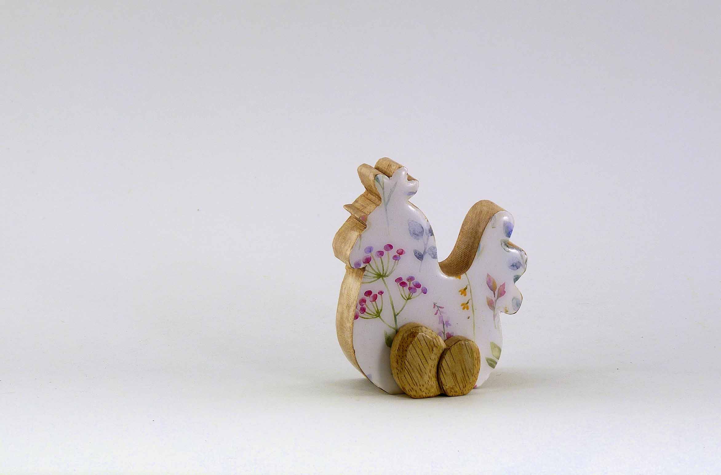 Mangoholz-Henne ''Streublumen-Dekor'' natur-weiß-bunt H9,5cm